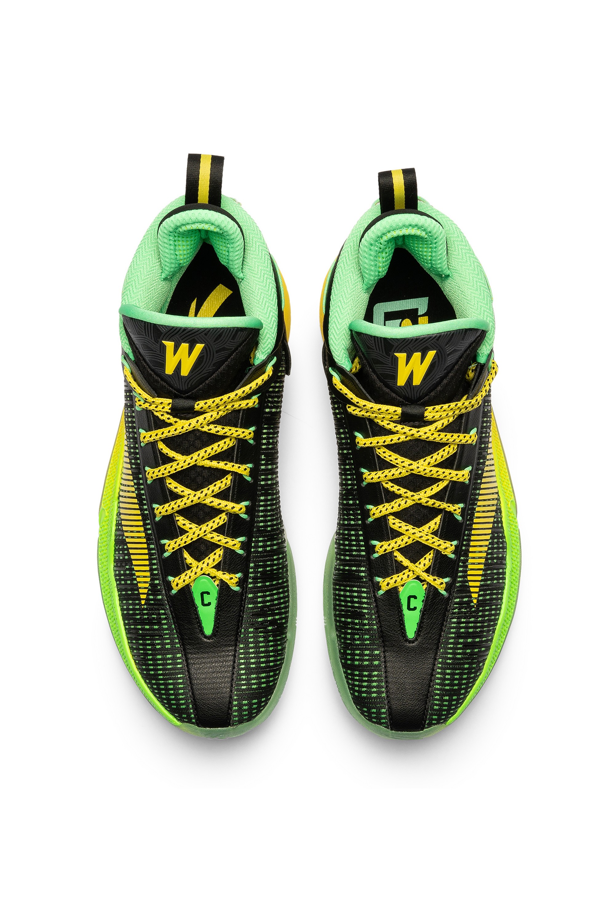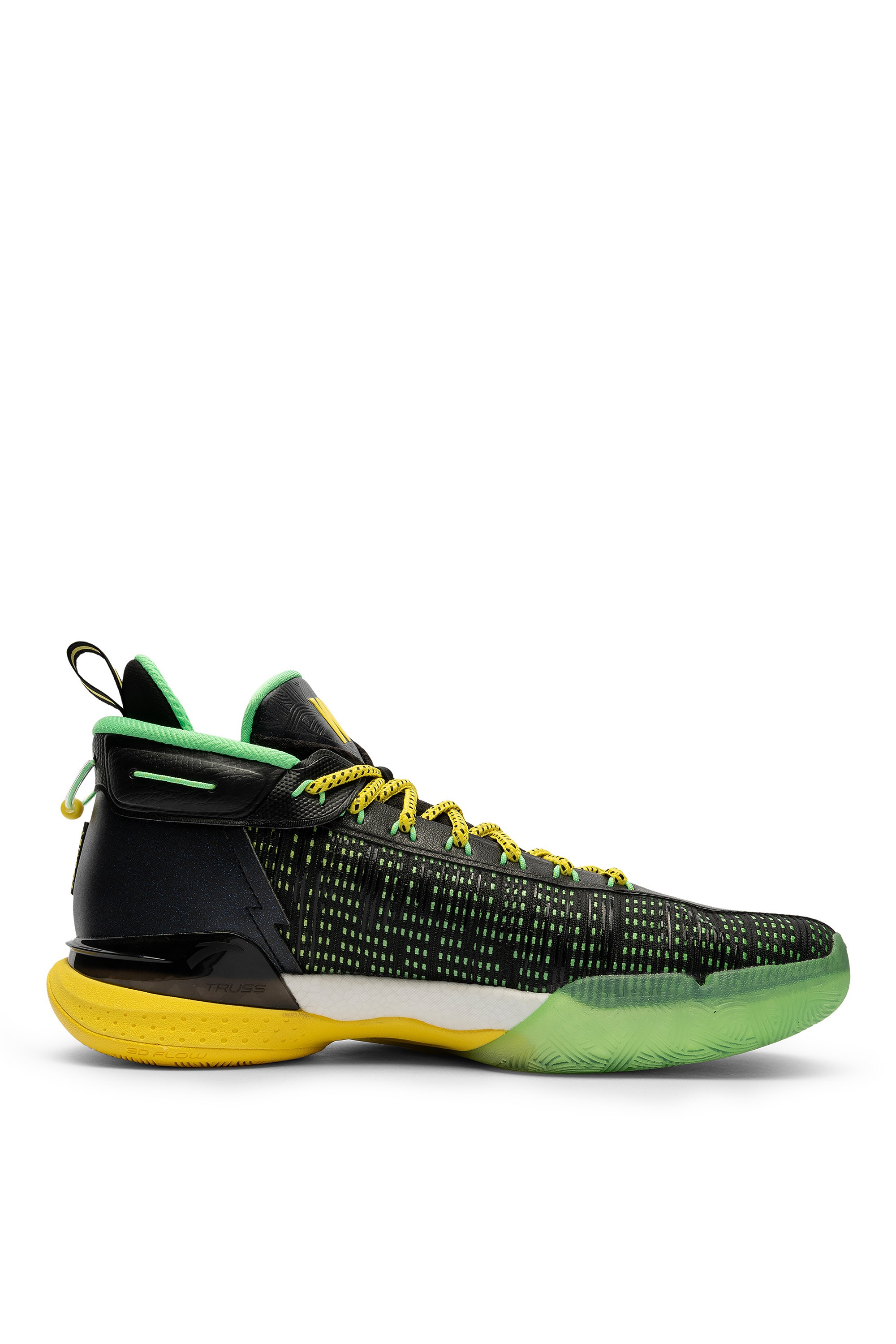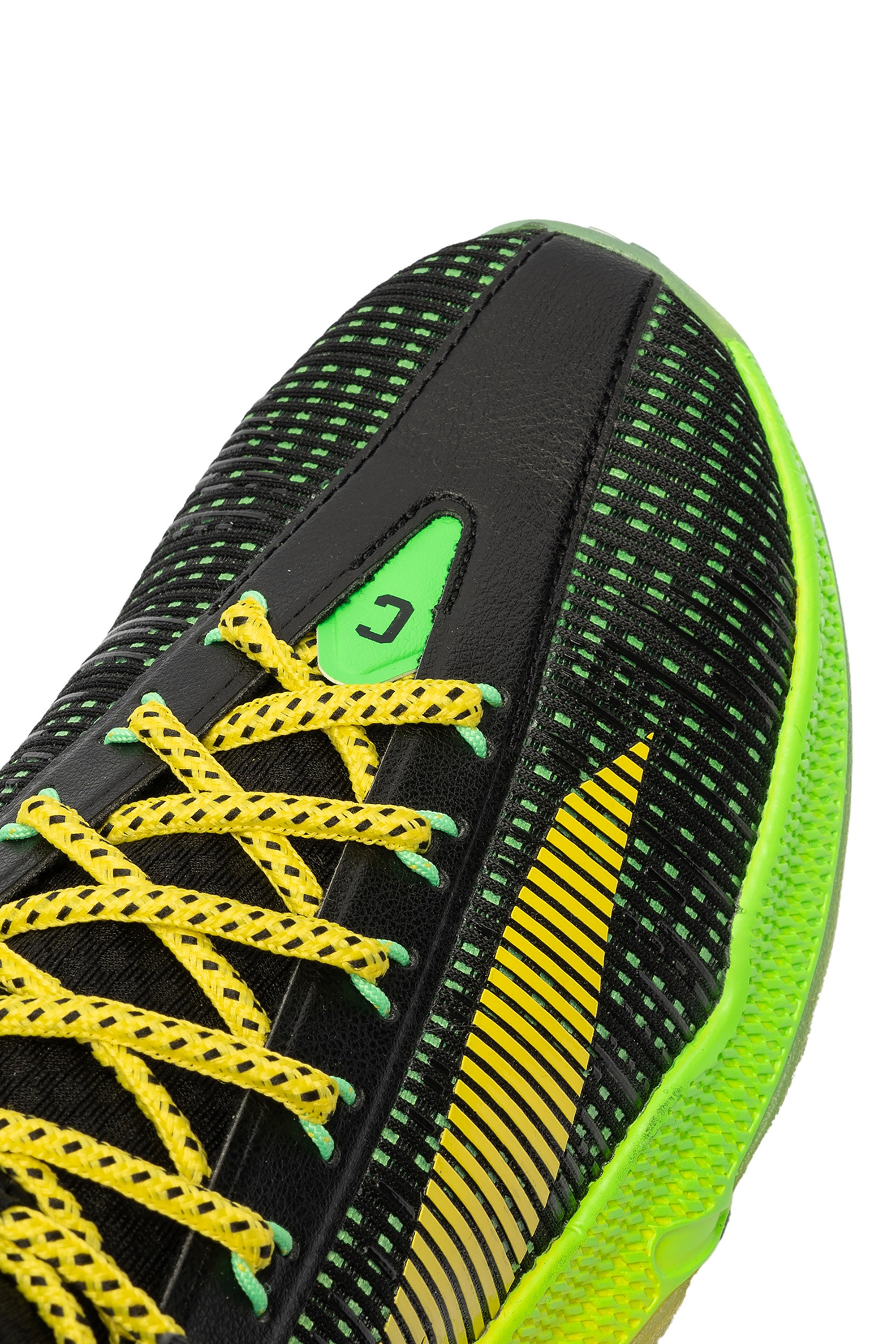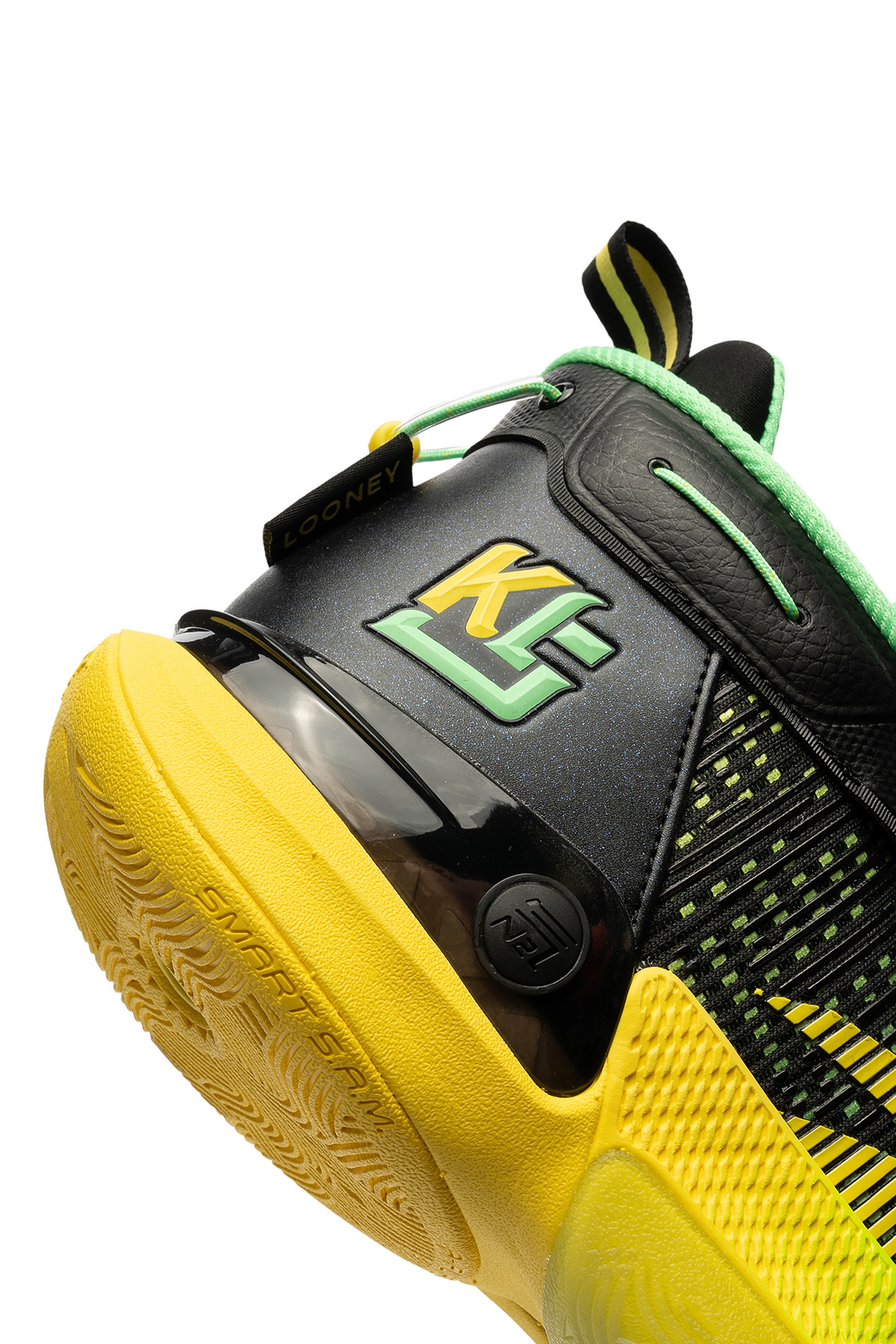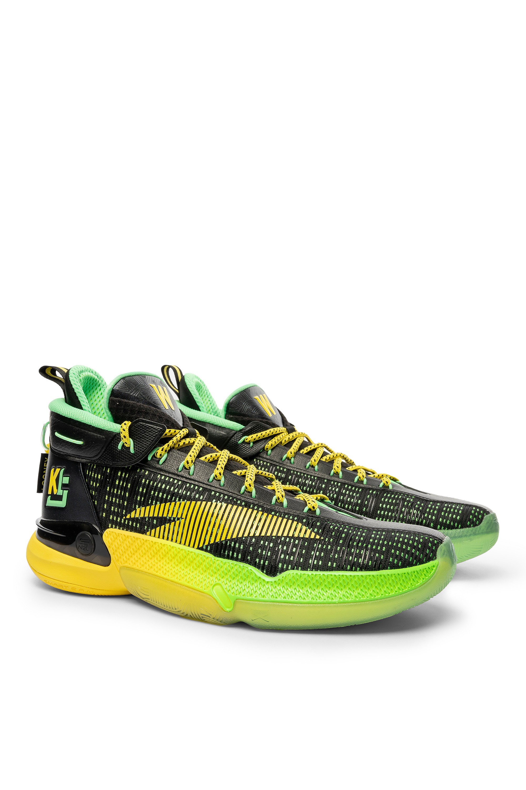 KT9 — новая версия баскетбольных кроссовок игрока NBA Клэя Томпсона, разработанная специально для атакующих защитников. Благодаря системе 3D FLOW стопа остается устойчивой в трех измерениях: горизонтальном, продольном и вертикальном. Интегрированная в промежуточную подошву карбоновая пластина обеспечивает уверенное приземление на пятку с равномерно распределенной силой и непревзойденной поддержкой. Используемый метод крепления более экологичный и не требует клея, что никак не отражается на целостности и прочности изделия. Внешний экзоскелет вдохновлен подвесной конструкцией моста Bay Area Bridge и гарантирует превосходную посадку и фиксацию стопы. Великолепная амортизация достигается за счет технологии NITROEDGE, примененной при создании промежуточной подошвы. Высокий уровень тракции обеспечивает отличное чувство корта. Расцветка модели вдохновлена цветом спортивной формы, которая была у баскетболиста Кевон Луни в старшей школе. Яркий зелено-желтый градиент на подошве привлекает к себе внимание. На пятке расположен личный логотип спортсмена, а также его номер в команде Golden State Warriors. Вес кроссовок — 430 г.