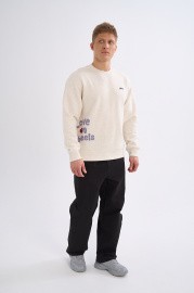 Свободный крой и объемные колени гарантируют неограниченную амплитуду движений. Широкий эластичный пояс с пуговицей-кнопкой и внутренним регулировочным шнурком позволяет добиться точной индивидуальной посадки на талии. Прямой подворот штанин обеспечивает легкость сочетания с любым типом обуви — от чанки-кроссовок до классических кед для скейтбординга. Два прорезных боковых кармана обеспечивают хранение личных вещей, одновременно поддерживая чистоту линий.