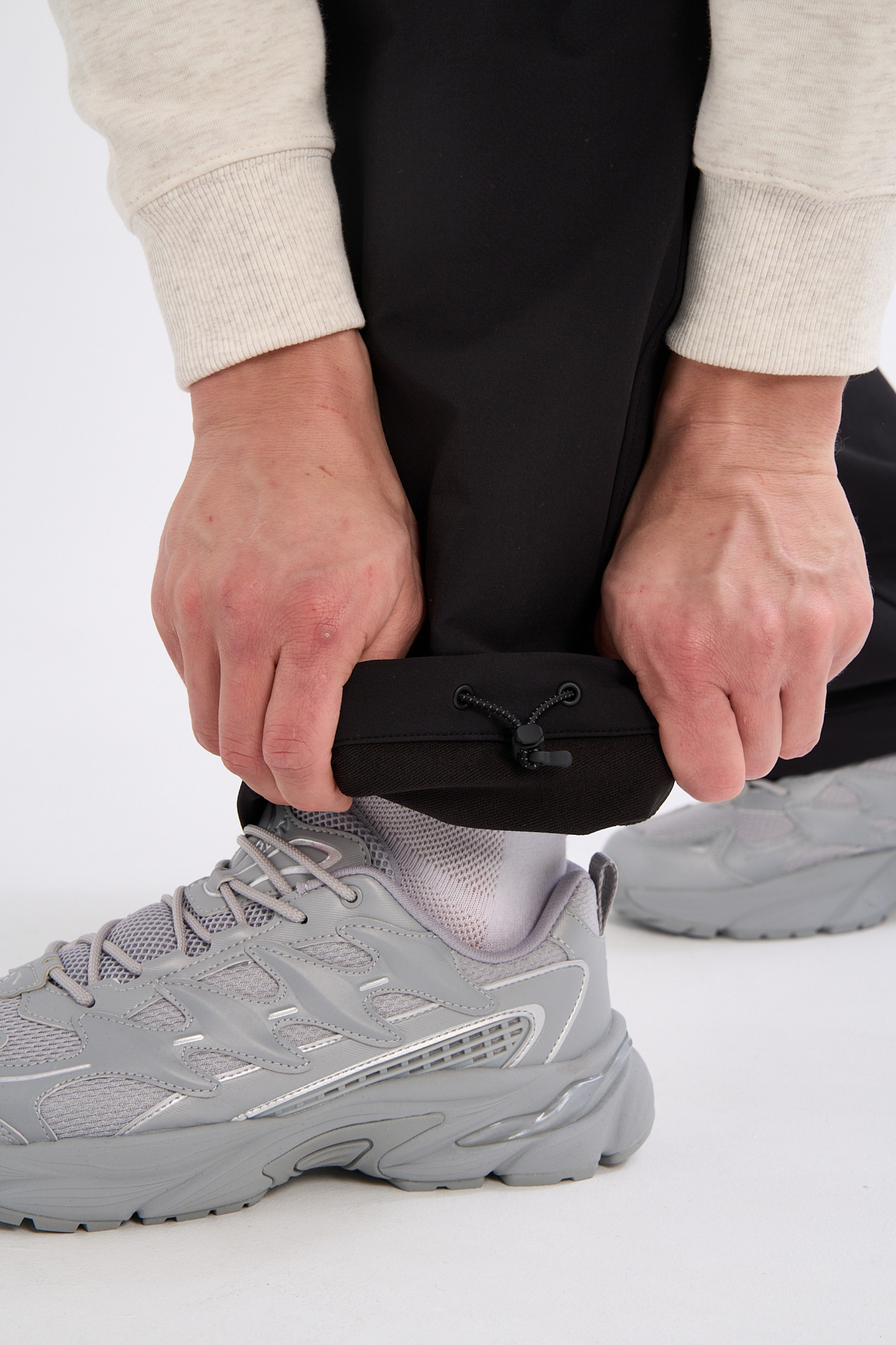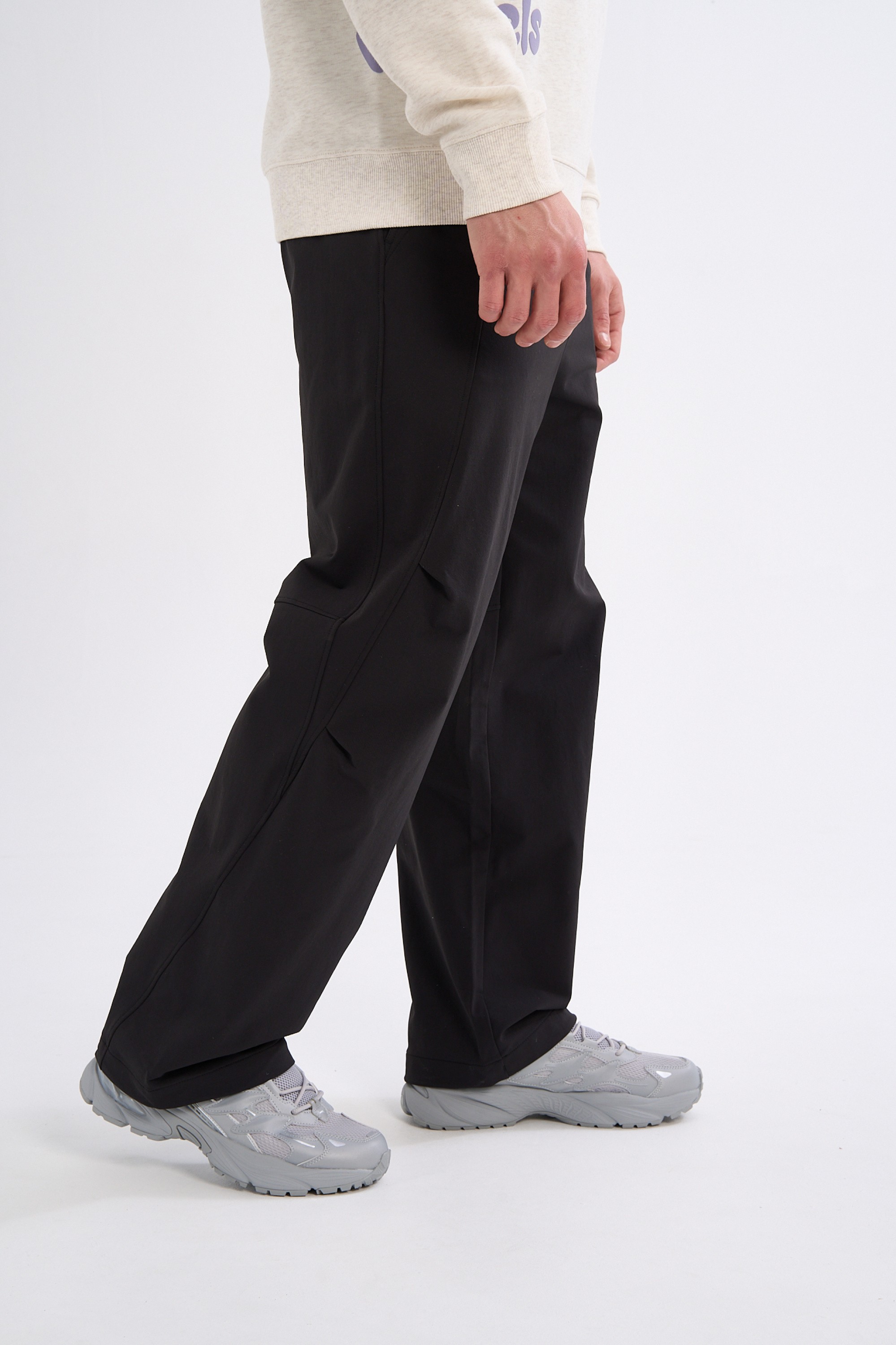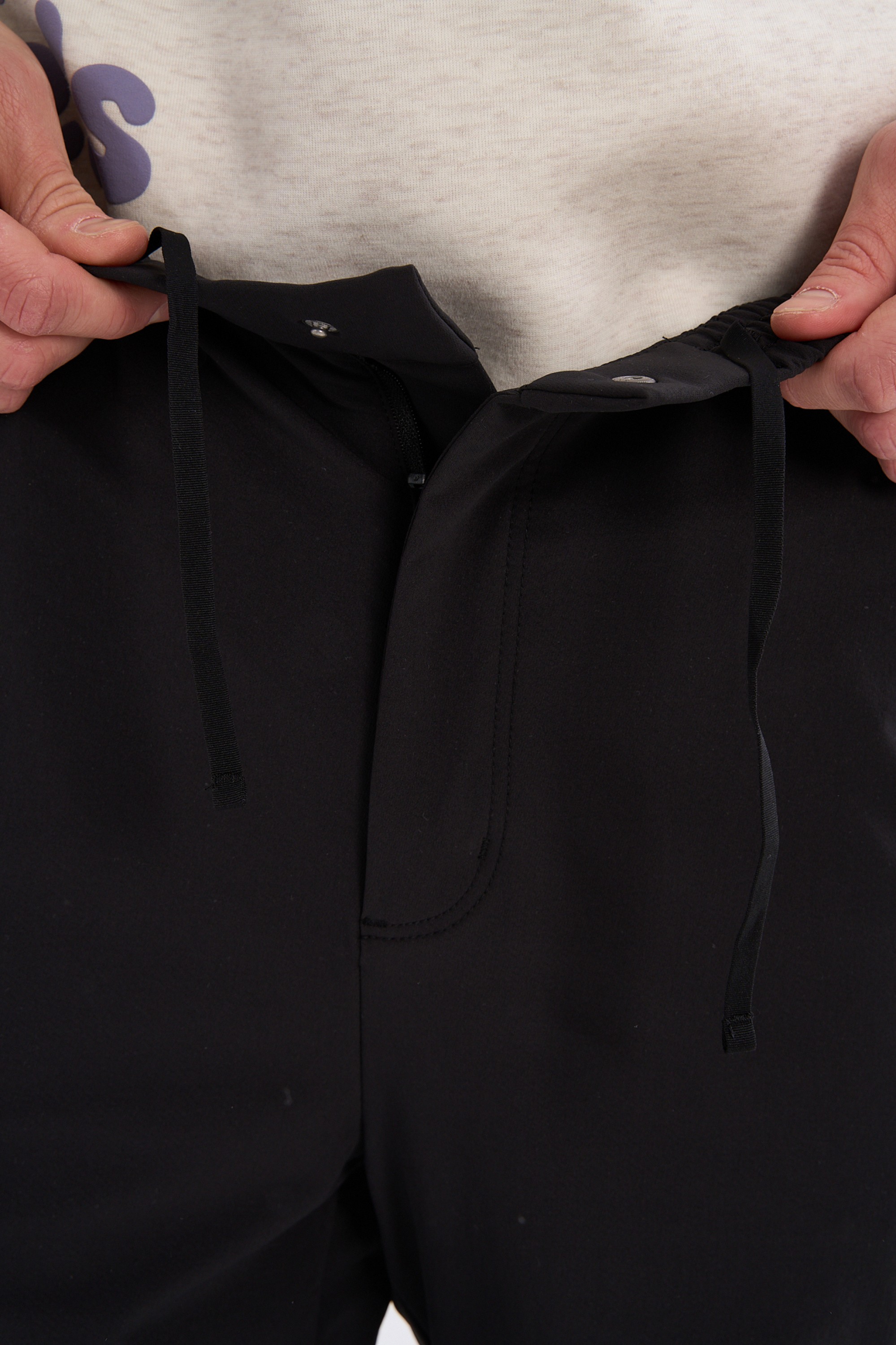 Монохромный лаконичный дизайн сознательно сведен к чистой функциональности. Единственным графическим акцентом является небольшое контрастное название коллекции на левом бедре.
