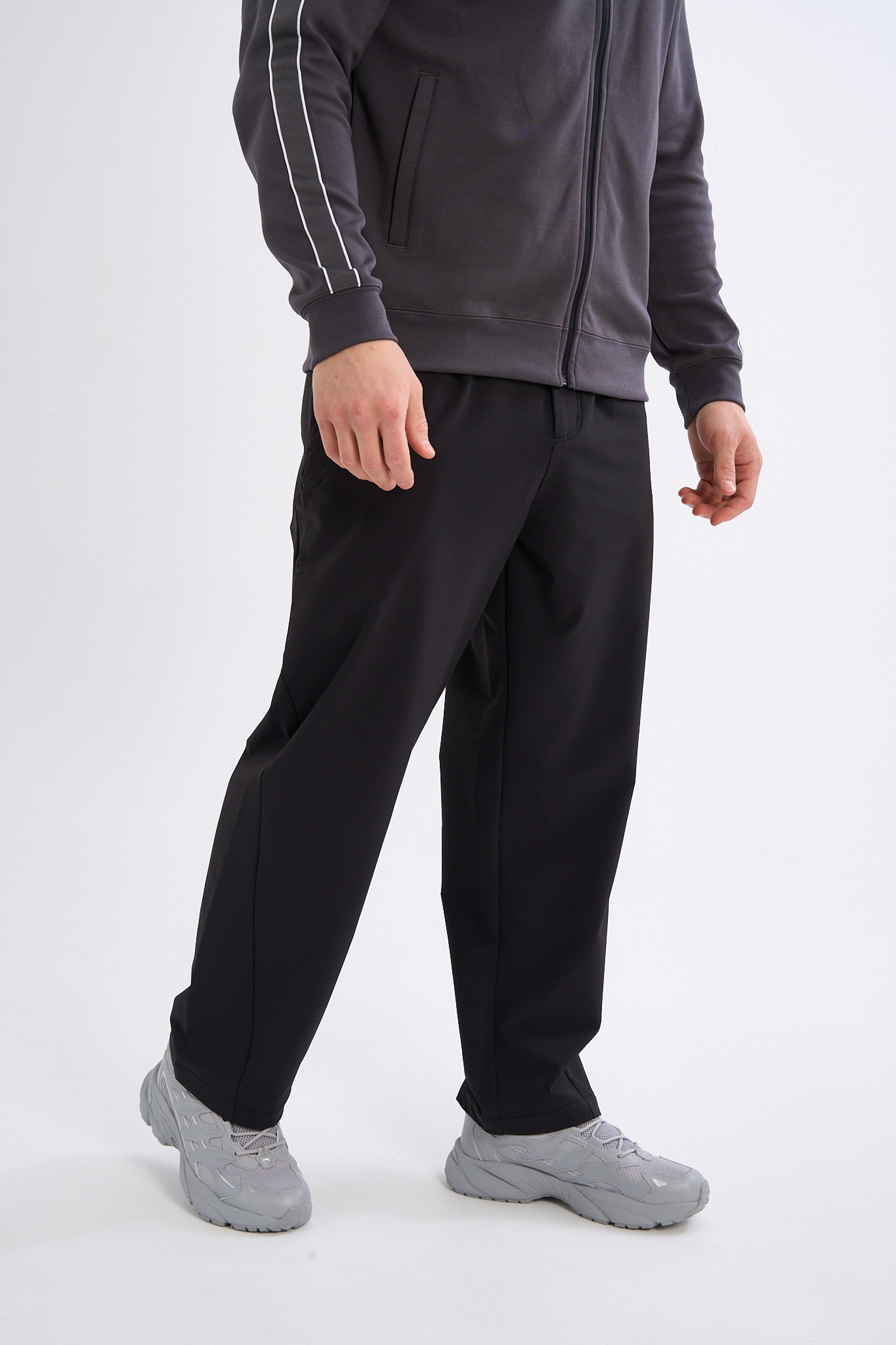 Продуманный свободный крой в сочетании с высокой эластичностью полотна обеспечивает полную свободу движений. Диагональные швы на штанинах не только создают динамичный и современный силуэт, но и подчеркивают технологичность изделия.