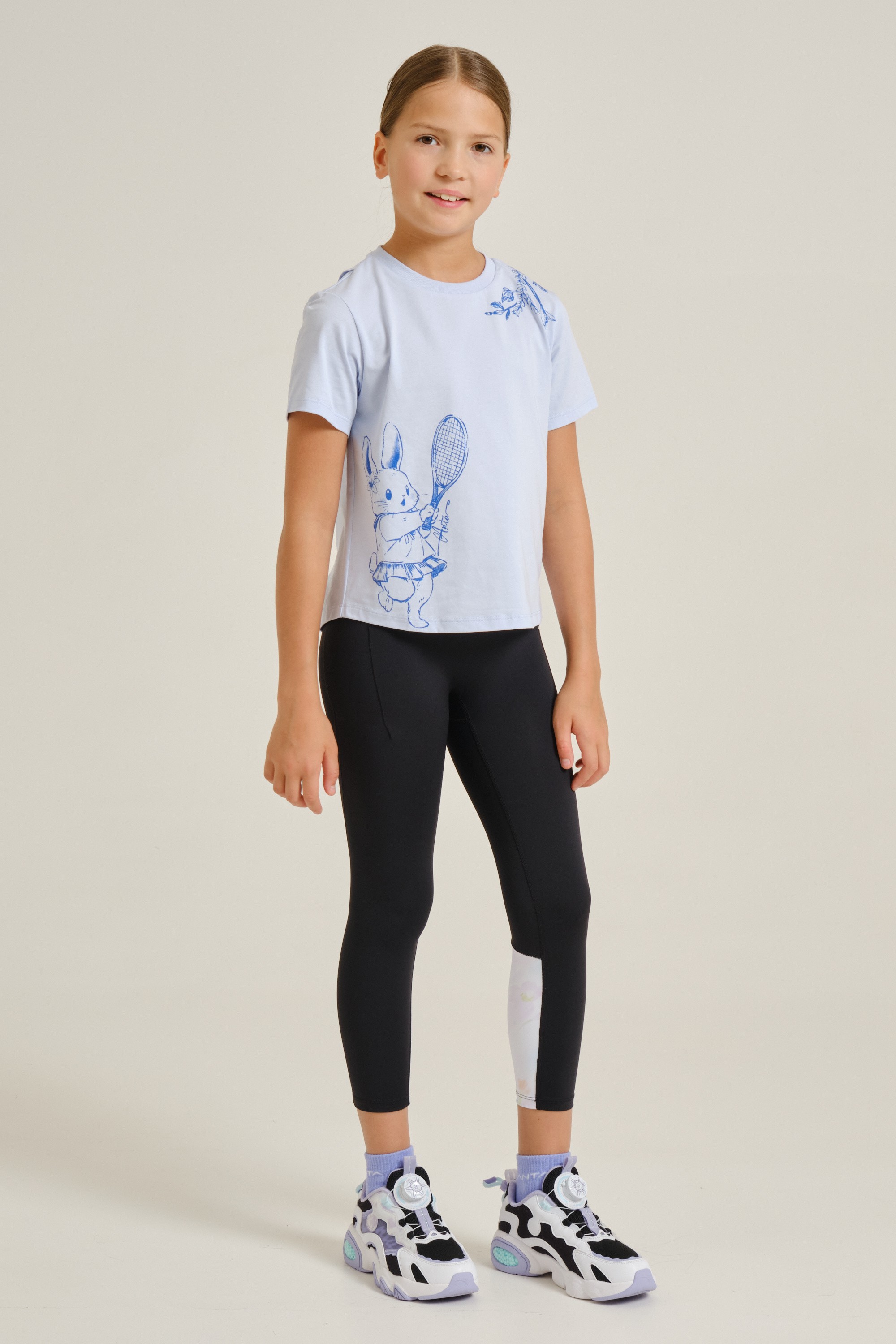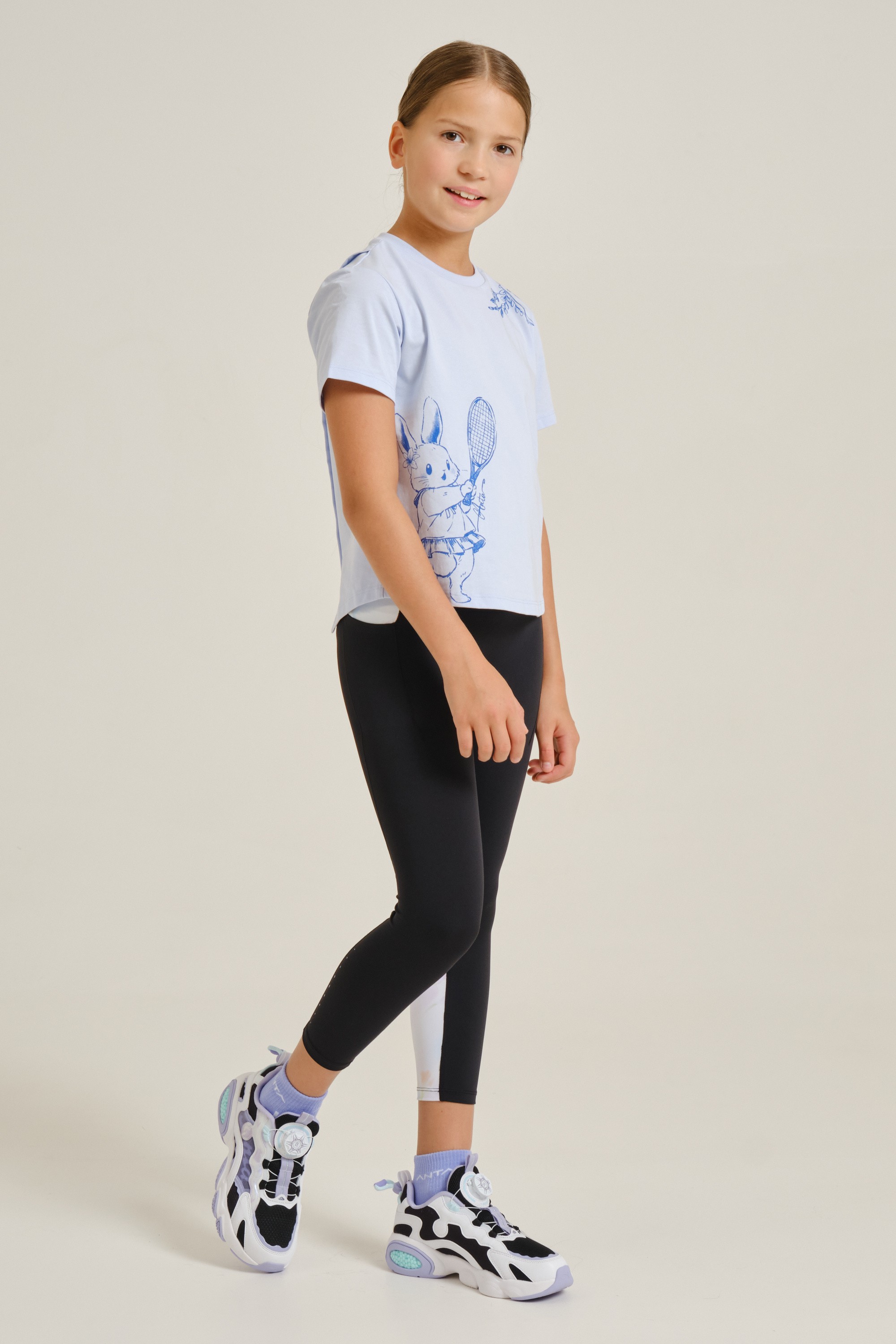 Тайтсы для девочек подойдут для регулярных занятий спортом. Модель имеет облегающий крой и выполнена из смеси полиэстера и спандекса. Эластичный трикотаж не сковывает движения и делает тренировки вашего ребенка комфортнее и эффективнее. Плоские швы предотвращают натирание кожи. Плотность трикотажа — 255 г/кв. м.