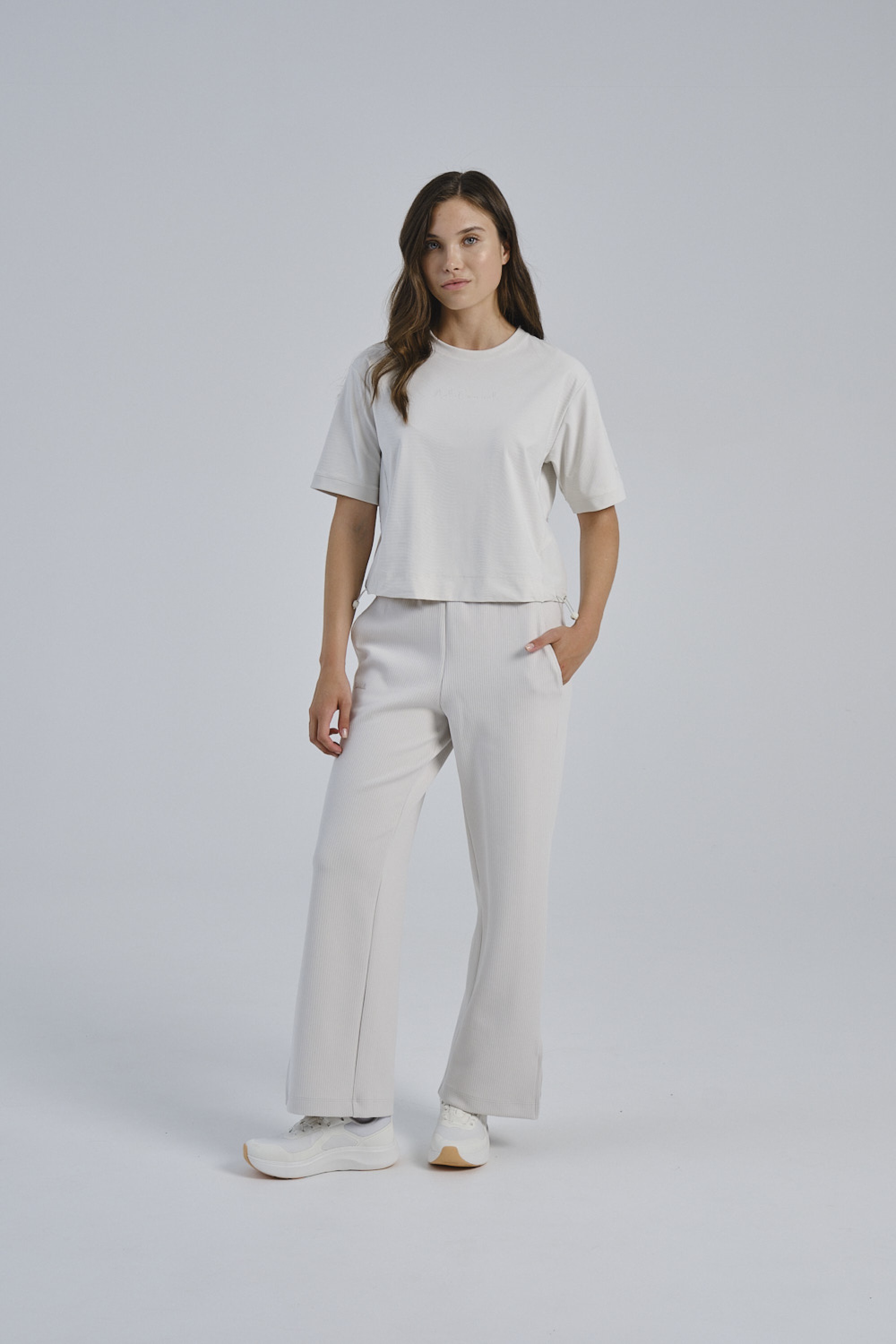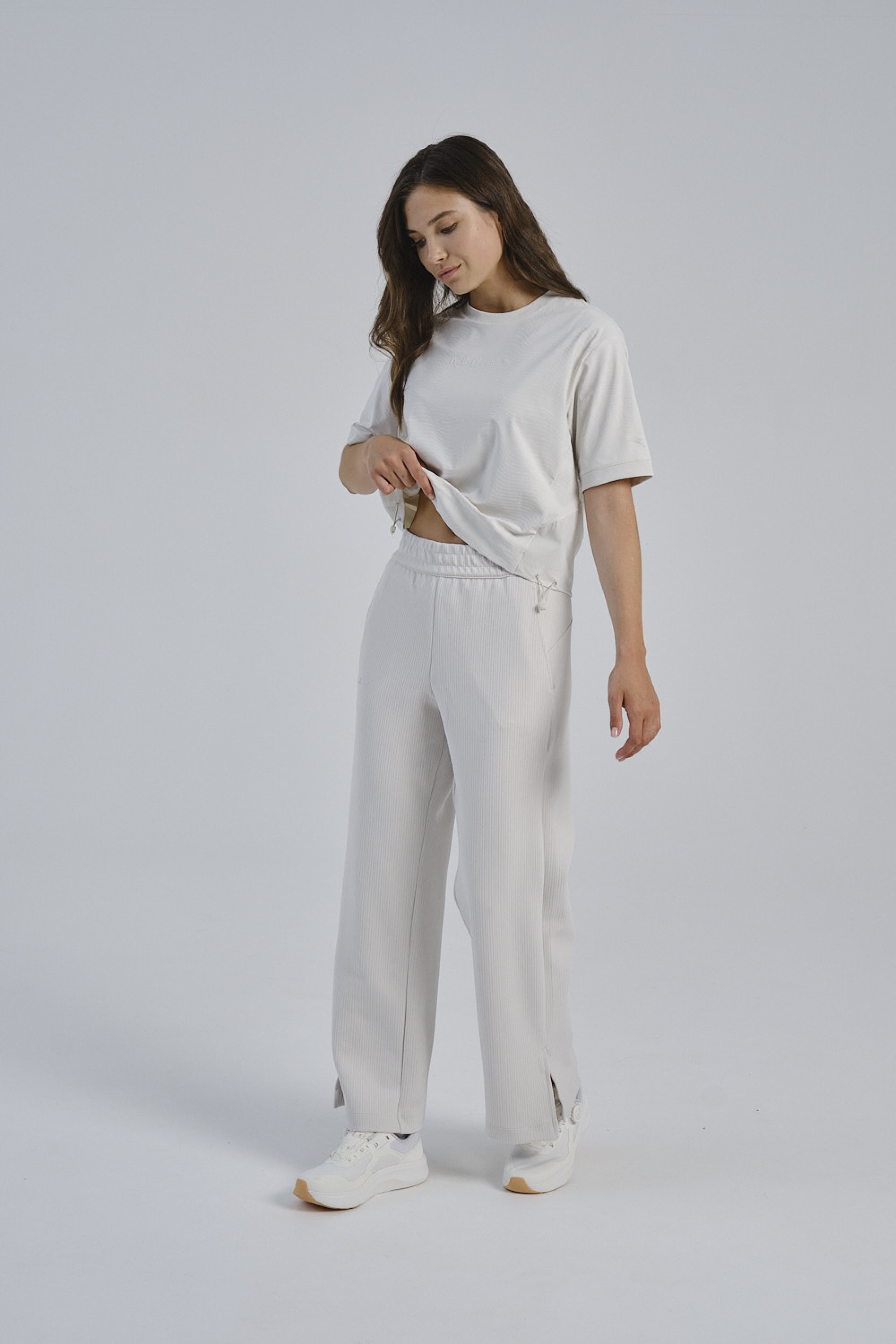 Женские трикотажные брюки COMMUTE в серо-бежевом оттенке — стильная и функциональная модель для активного городского ритма. Крой Relax Fit с прямыми штанинами обеспечивает свободу движений и максимально комфортную посадку.