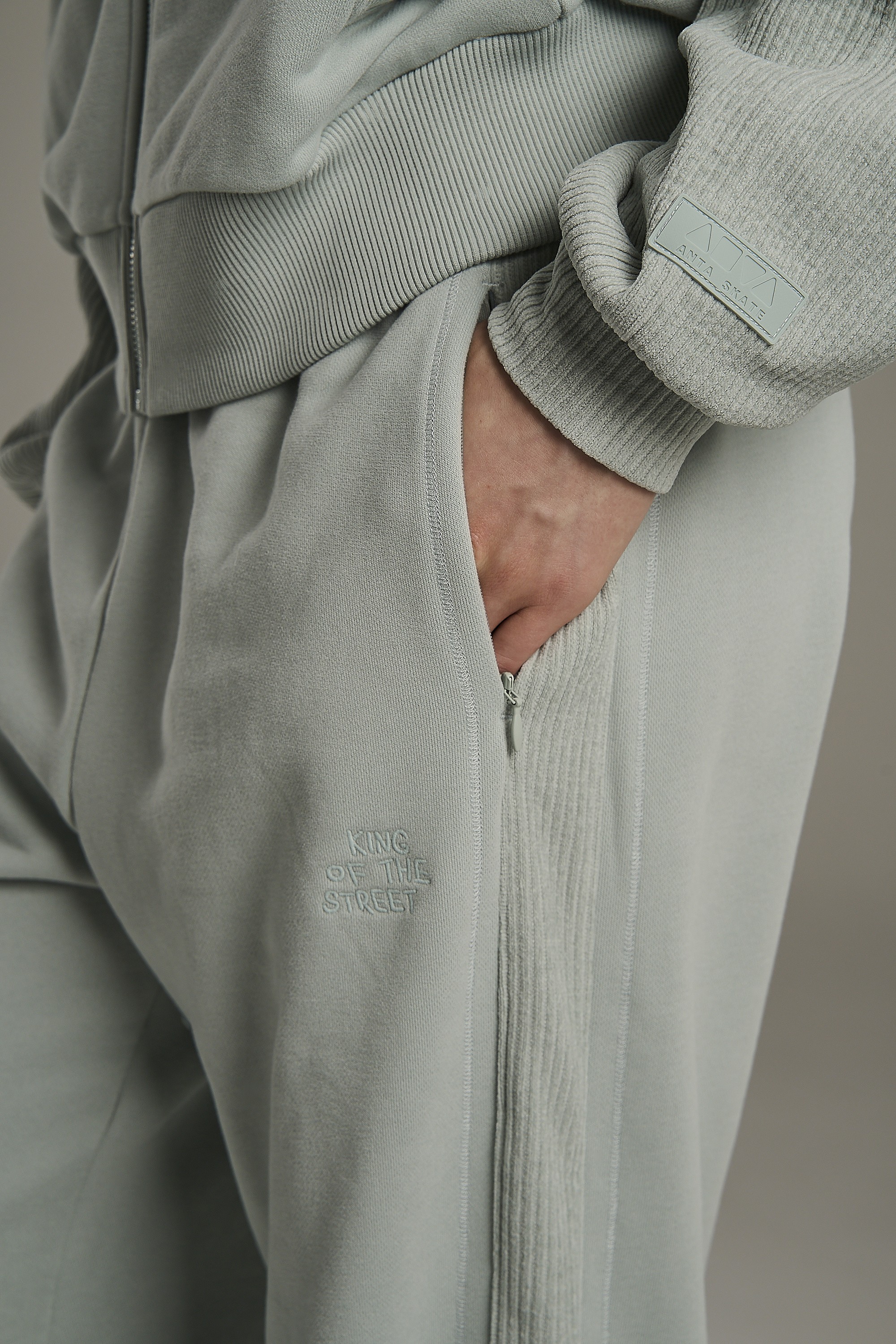Женские трикотажные брюки свободного кроя из коллекции ANTA SKATE в нежном мятном оттенке — стильный выбор для образа в спортивном стиле. Брюки выполнены из смесового материала на основе хлопка, благодаря чему обеспечивается высокий уровень воздухопроницаемости и комфорта. Текстурированные лампасы в тон изделия подчеркивают премиальный вид. Боковые карманы на молнии обеспечат безопасность телефона и других важных вещей.