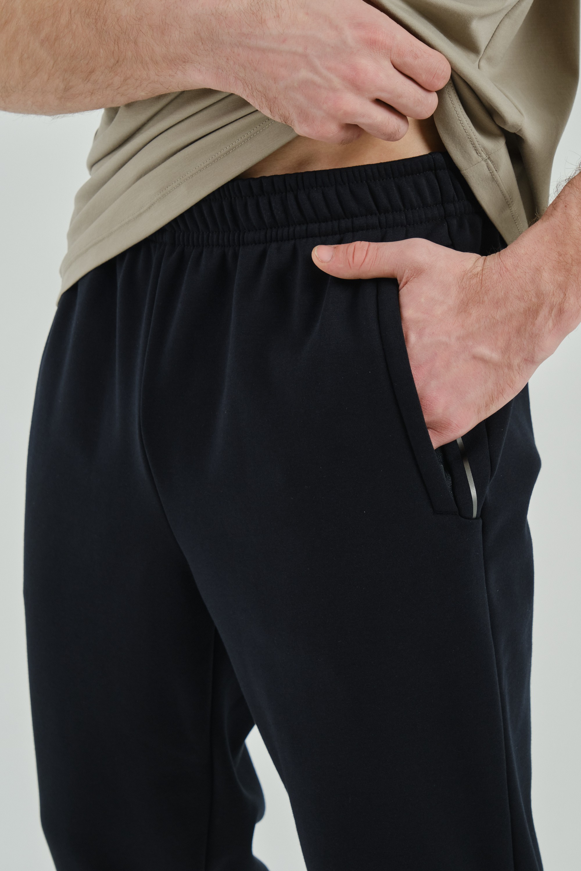Брюки имеют стандартный крой, точную посадку по фигуре, гарантируют свободу движений и стильный вид. Практичные карманы на молнии для хранения мелочей, а эластичный пояс и манжеты по низу брюк обеспечивает идеальную посадку.