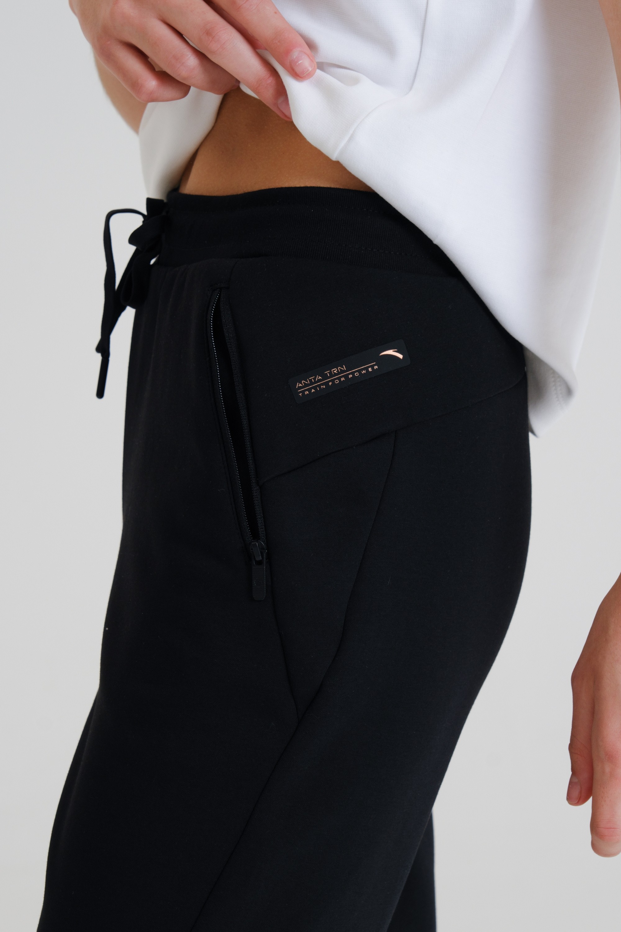 Эластичный пояс со шнурком делает брюки еще удобнее. Два боковых кармана на молнии помогают сохранить мелкие вещи. Всегда актуальный черный цвет поможет сочетать брюки с другими элементами спортивного стиля в одежде.