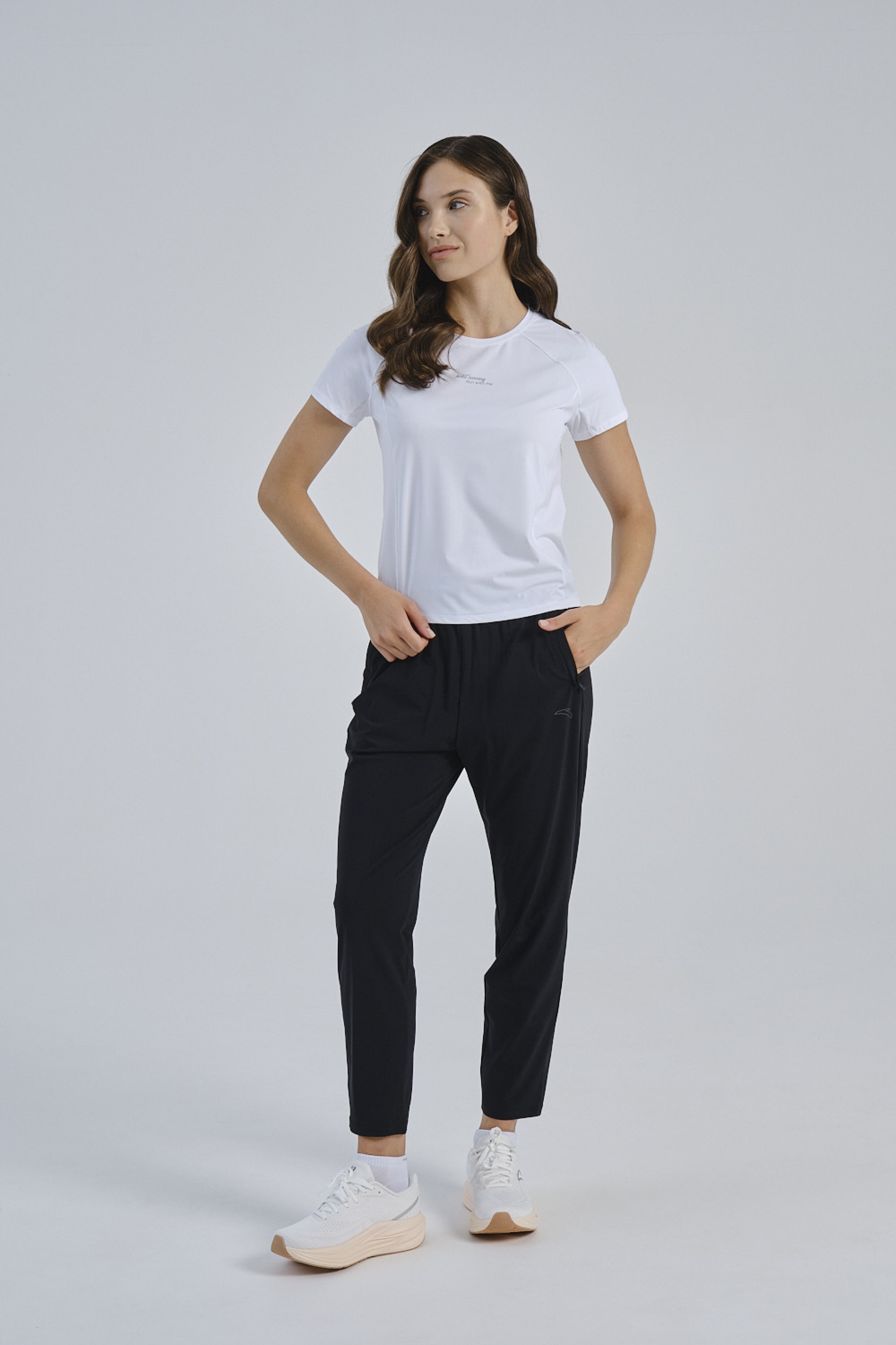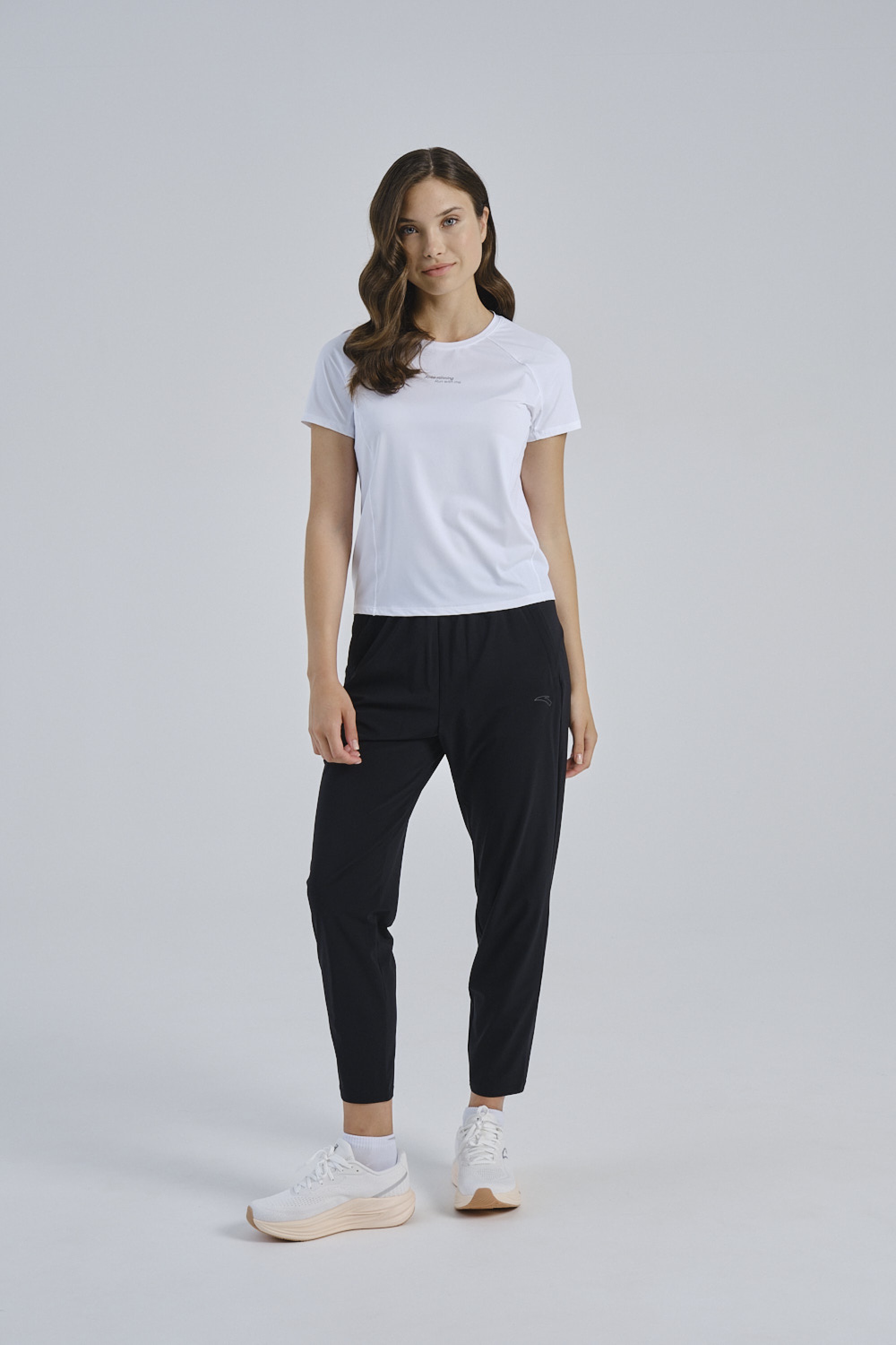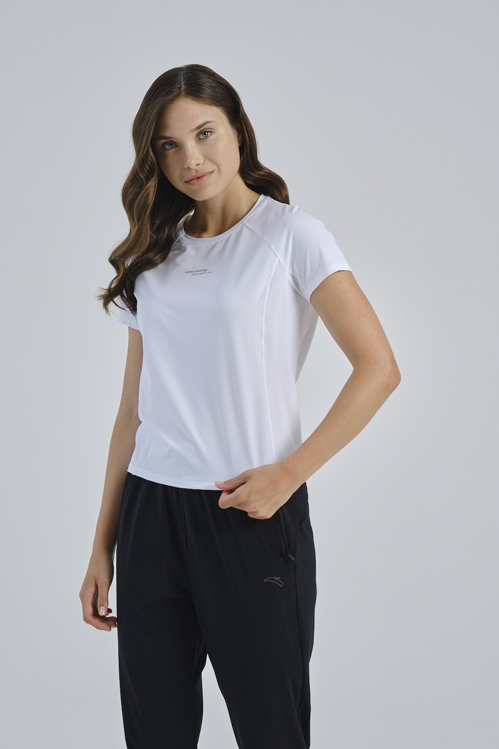 На футболке присутствует минималистичная надпись ANTA RUNNING и слоган «беги со мной», добавляющие модели современный и мотивационный акцент. Светоотражающие элементы повышают безопасность при тренировках в условиях недостаточной освещённости.