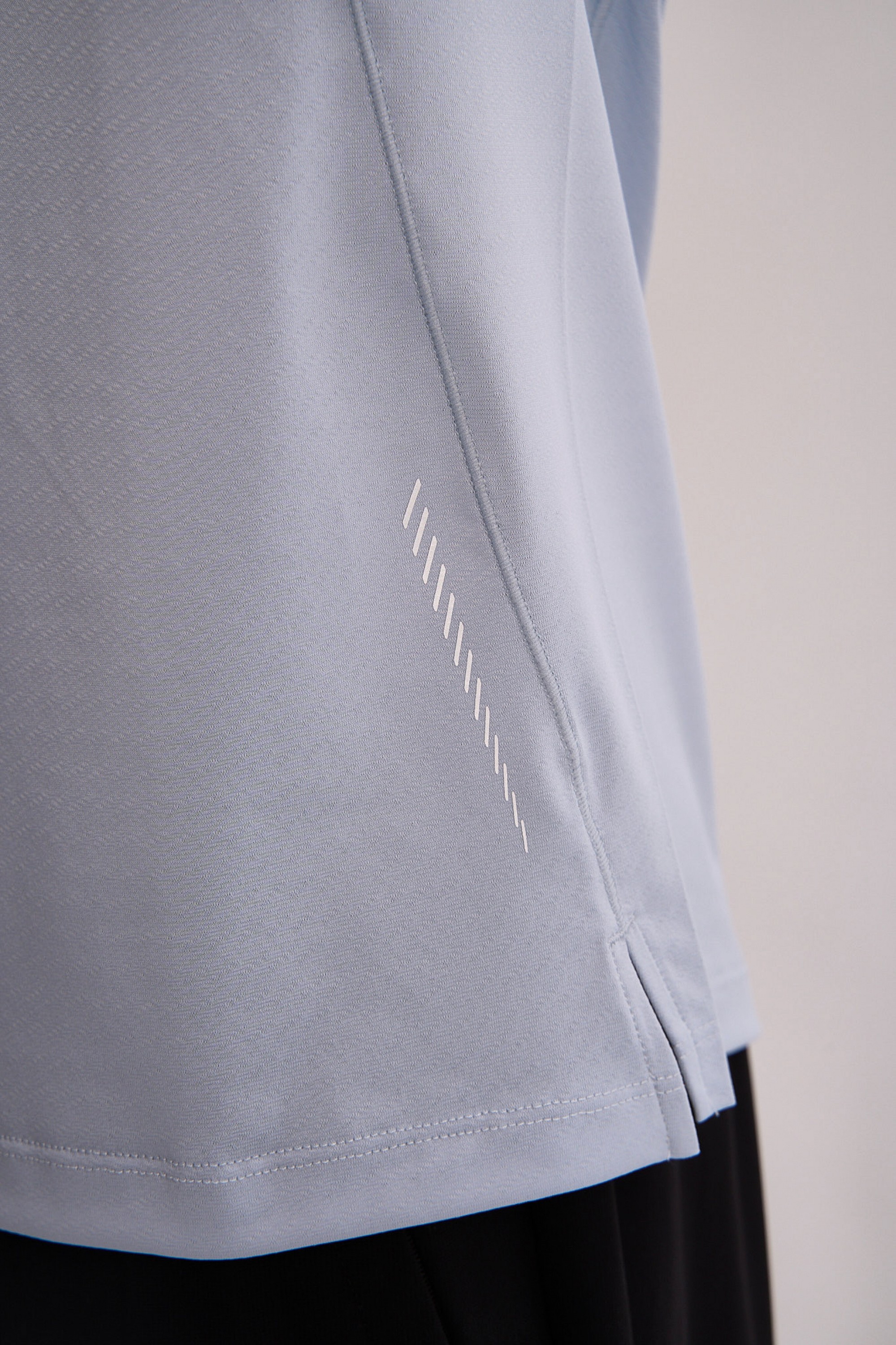 Артикулированный крой минимизирует эффект «паруса», обеспечивая комфортный бег, а удлиненная спина предотвращает задирание футболки и оголение поясницы при наклонах и движениях, дополнительно сохраняя тепло в этой зоне. Плоские швы снижают риск натирания и дискомфорта, а световозвращающие вставки на рукавах повышают безопасность при беге в условиях низкой освещенности.