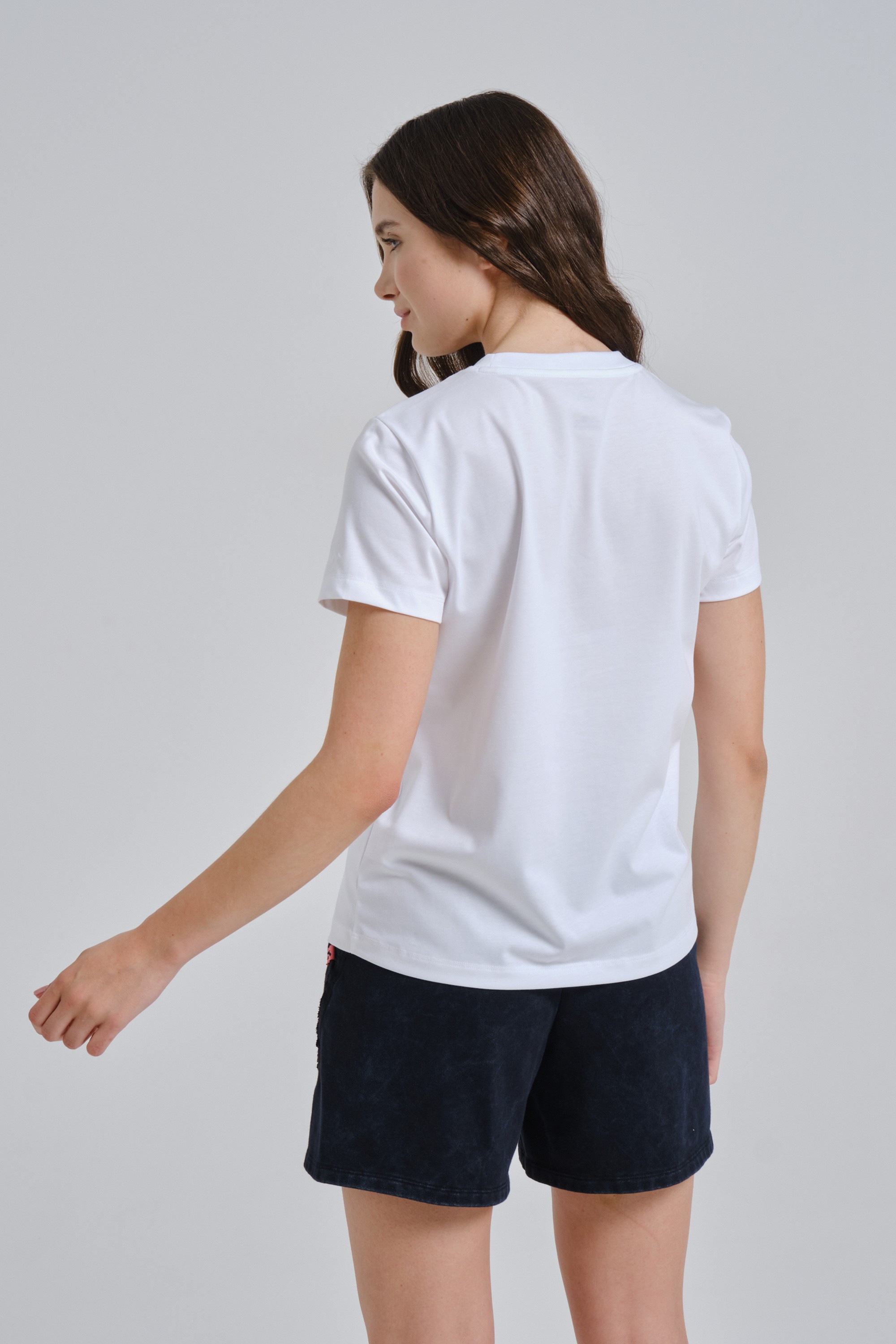 Прямой крой со стандартной посадкой подчёркивает естественную привлекательность. Круглый вырез горловины создает дополнительное удобство.