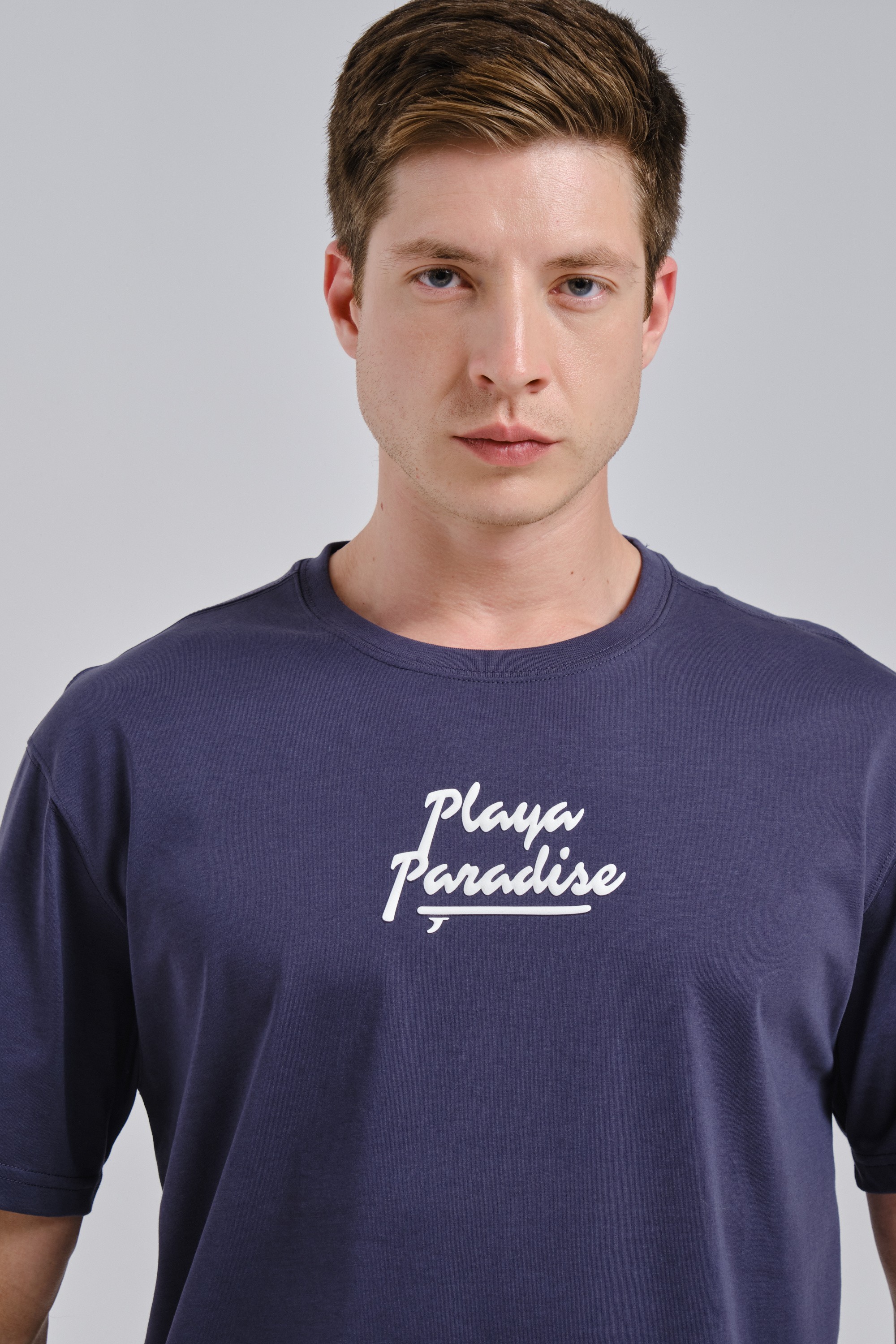 Свободный крой со спущенной линией плеч обеспечивает непринужденную посадку и не стесняет движения. Круглый вырез горловины обеспечивает дополнительный комфорт. На груди расположен небольшой стильный принт с изображением доски для серфинга, отсылающий к эстетике пляжного отдыха. Вышитый логотип ANTA на левом рукаве и небольшой тканевый патч с названием коллекции на подоле справа придают футболке премиальный вид. Необычный сливовый цвет Plum Purple делает образ ярким и запоминающимся.