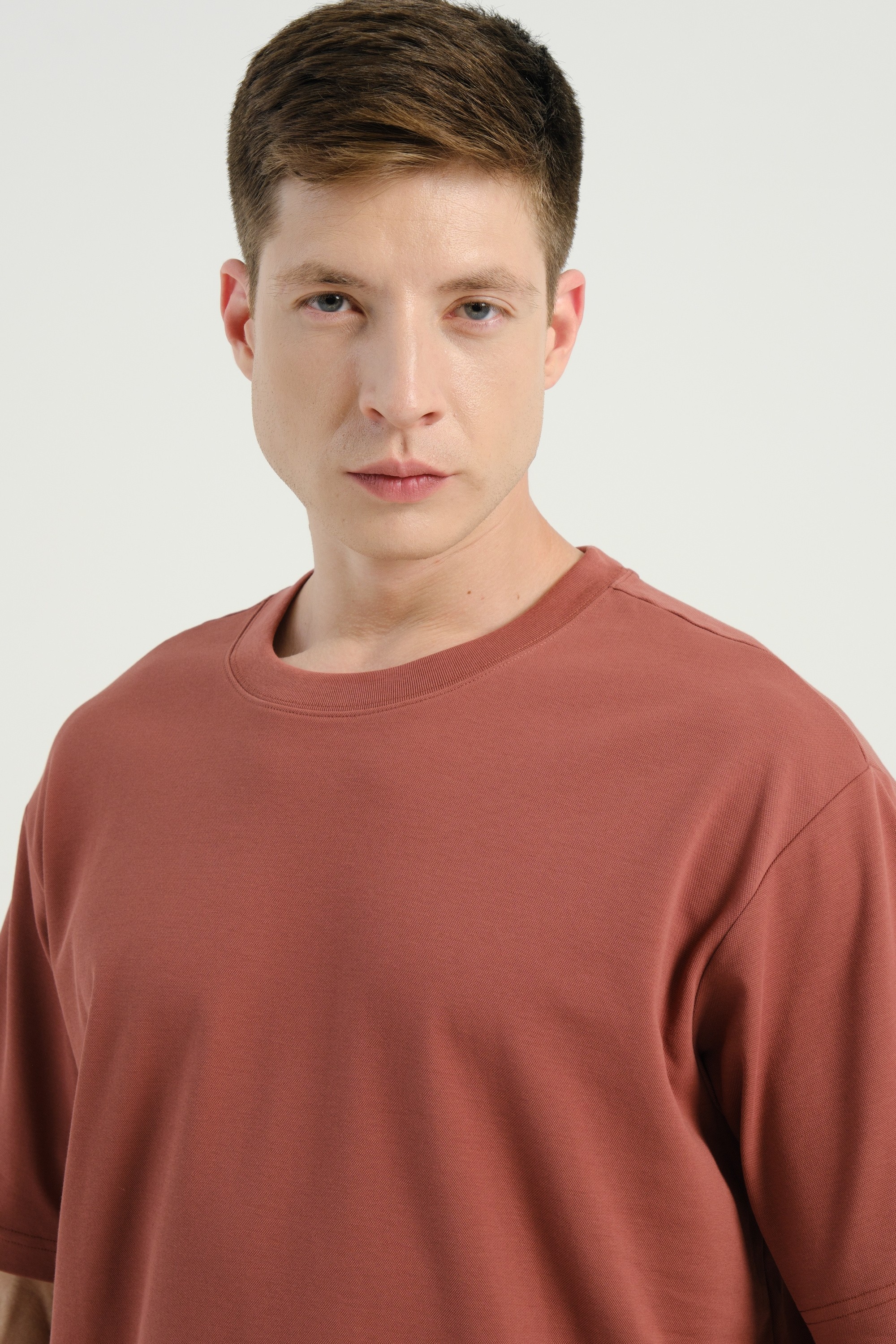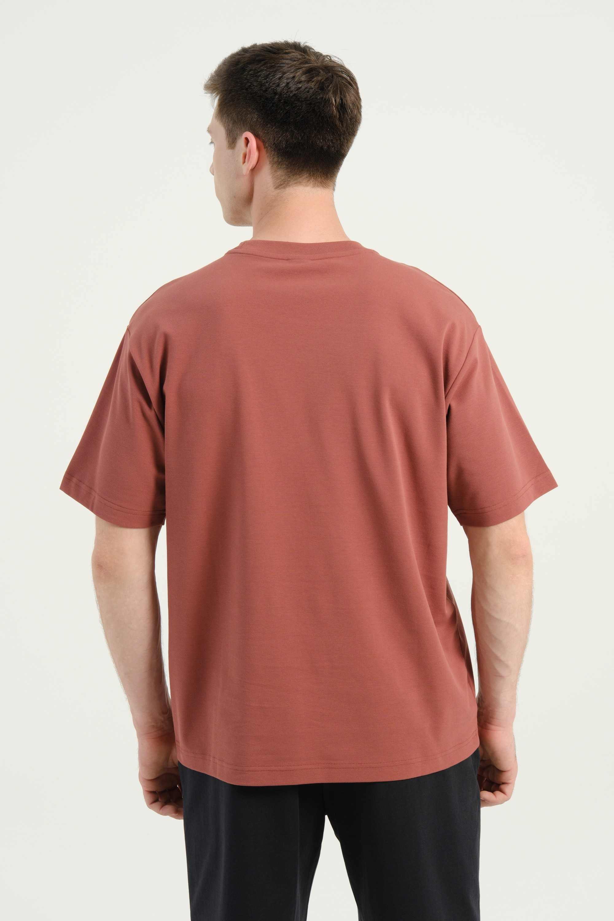 Отличительной чертой этой модели является ультра-лаконичный дизайн с полным отсутствием каких-либо принтов. Единственный декоративный элемент - небольшая нашивка с названием коллекции, придает футболке премиальный вид. Терракотовый цвет добавит образу глубины и элегантности. Эти особенности помогают легко сочетать футболку с шортами, джинсами и более формальными элементами, создавая разнообразные образы в стиле casual.
