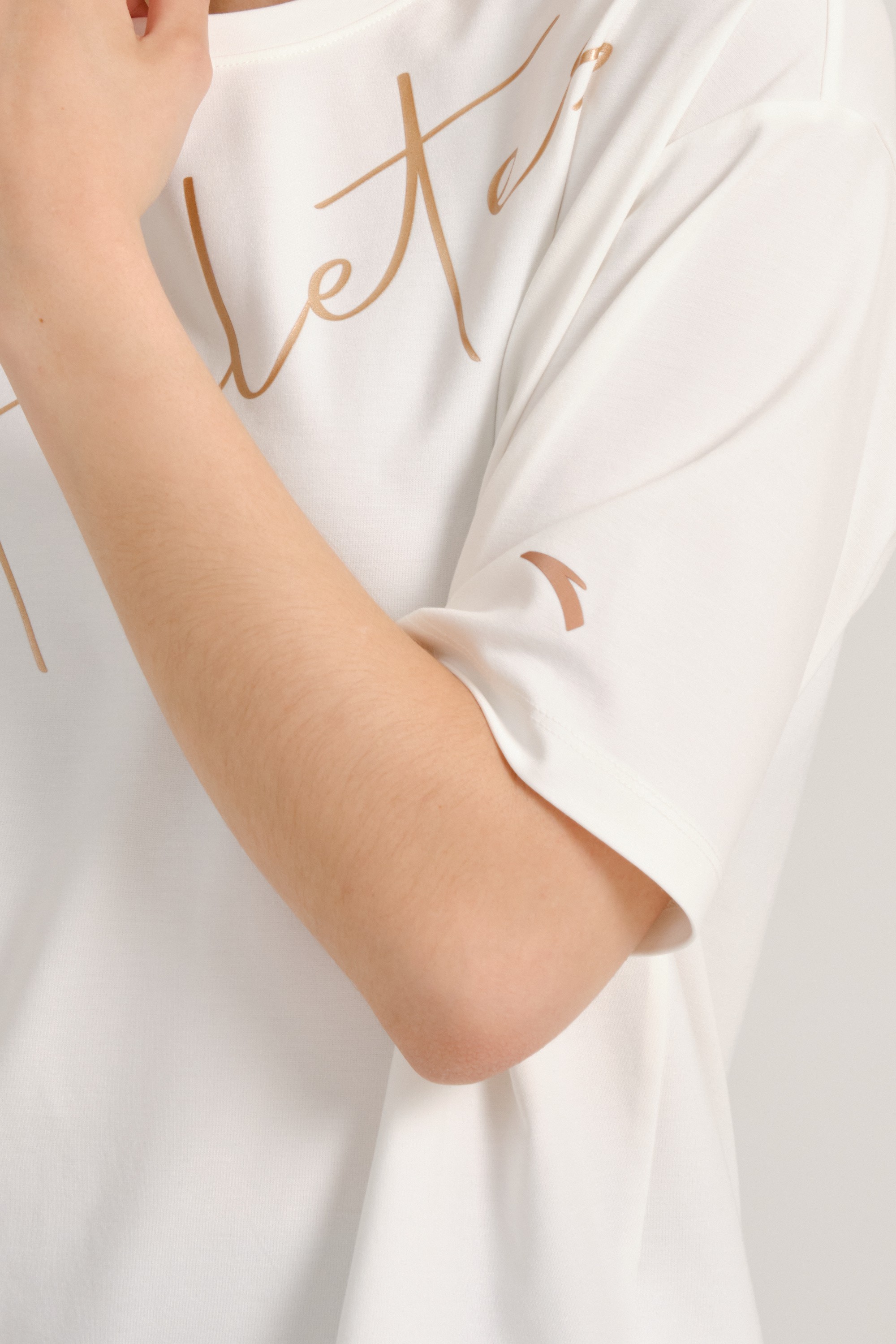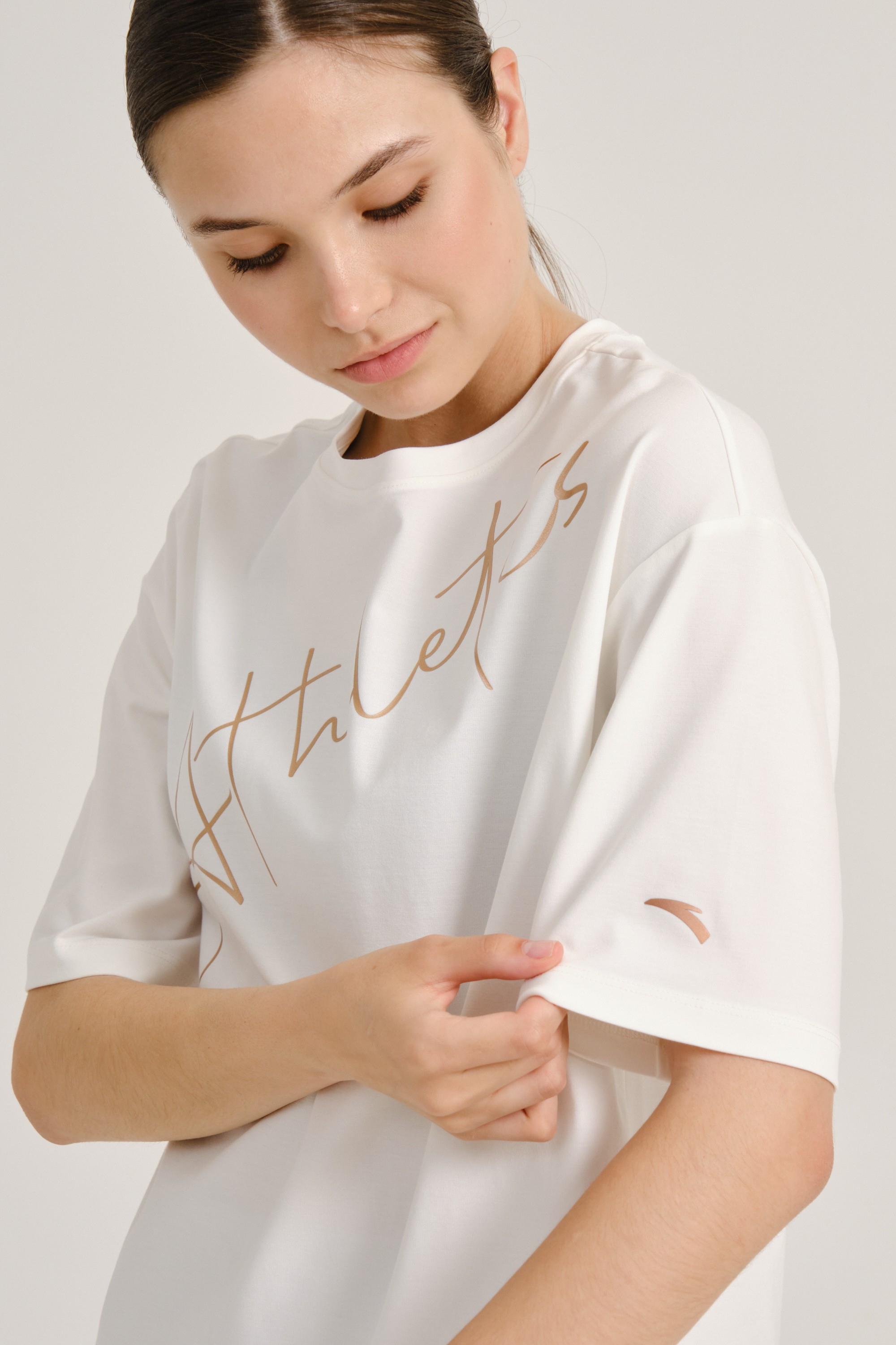 Отличная футболка, в размер, крой свободный, цвет не чисто белый, а молочный. Фотографии соответствует полностью.