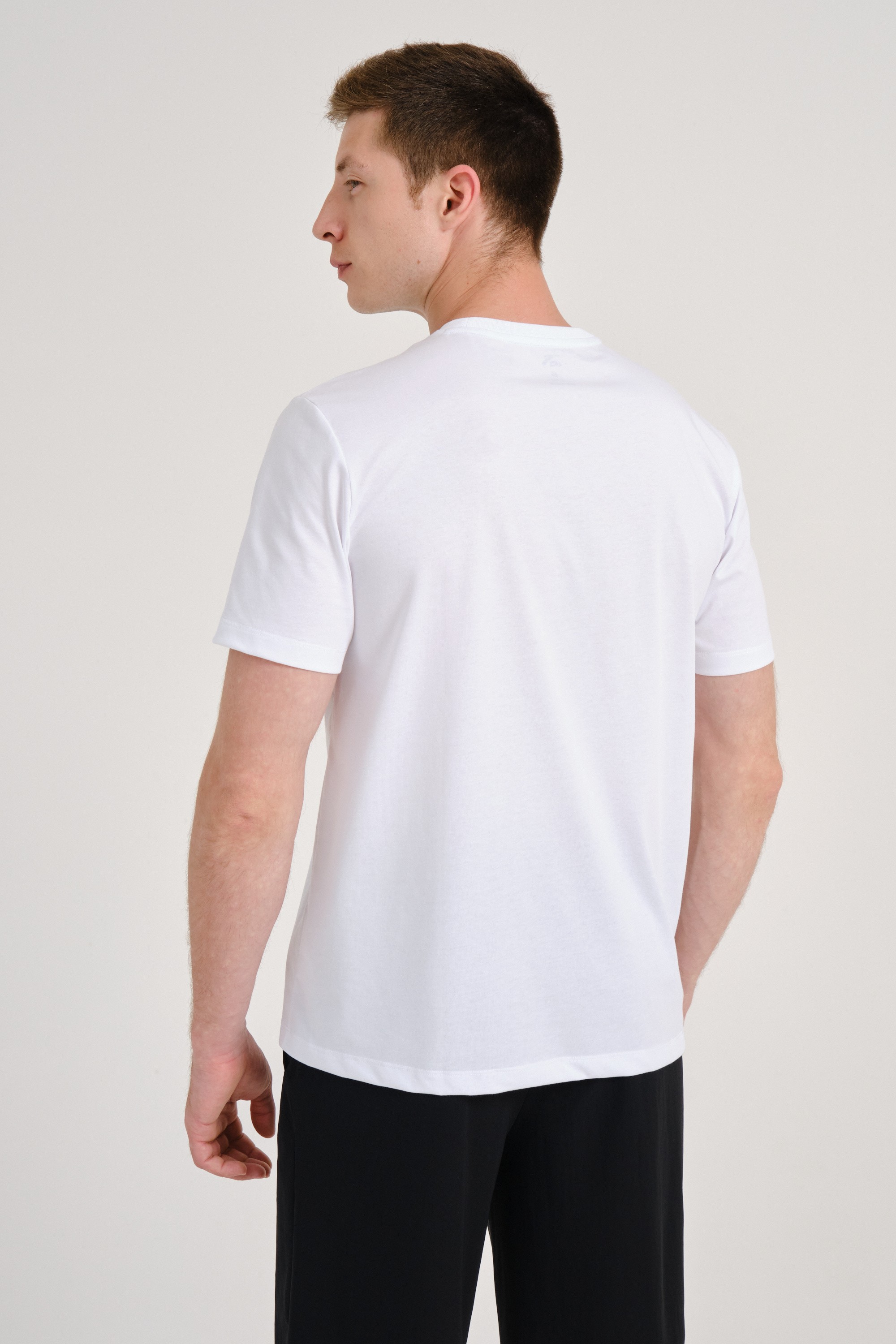 Футболка на каждый день. Классический крой и лаконичный дизайн делают эту футболку универсальной и подходящей для любого повседневного образа. Она легко сочетается с джинсами, шортами или спортивной одеждой. В составе материала 65% хлопка и 35% полиэстера. Хлопок обеспечивает отличную воздухопроницаемость, в то время как полиэстер способствует быстрому высыханию и долговечности изделия.