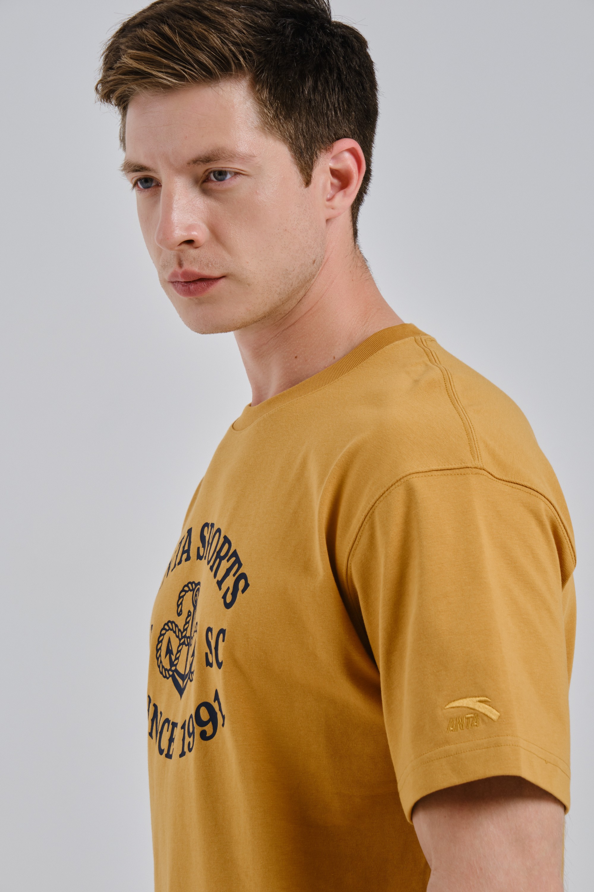 Мужская футболка свободного кроя из ретро-спорт коллекции ANTA SPORTS CLUB, сочетающая в себе удобство, комфорт и романтические мотивы в дизайне.