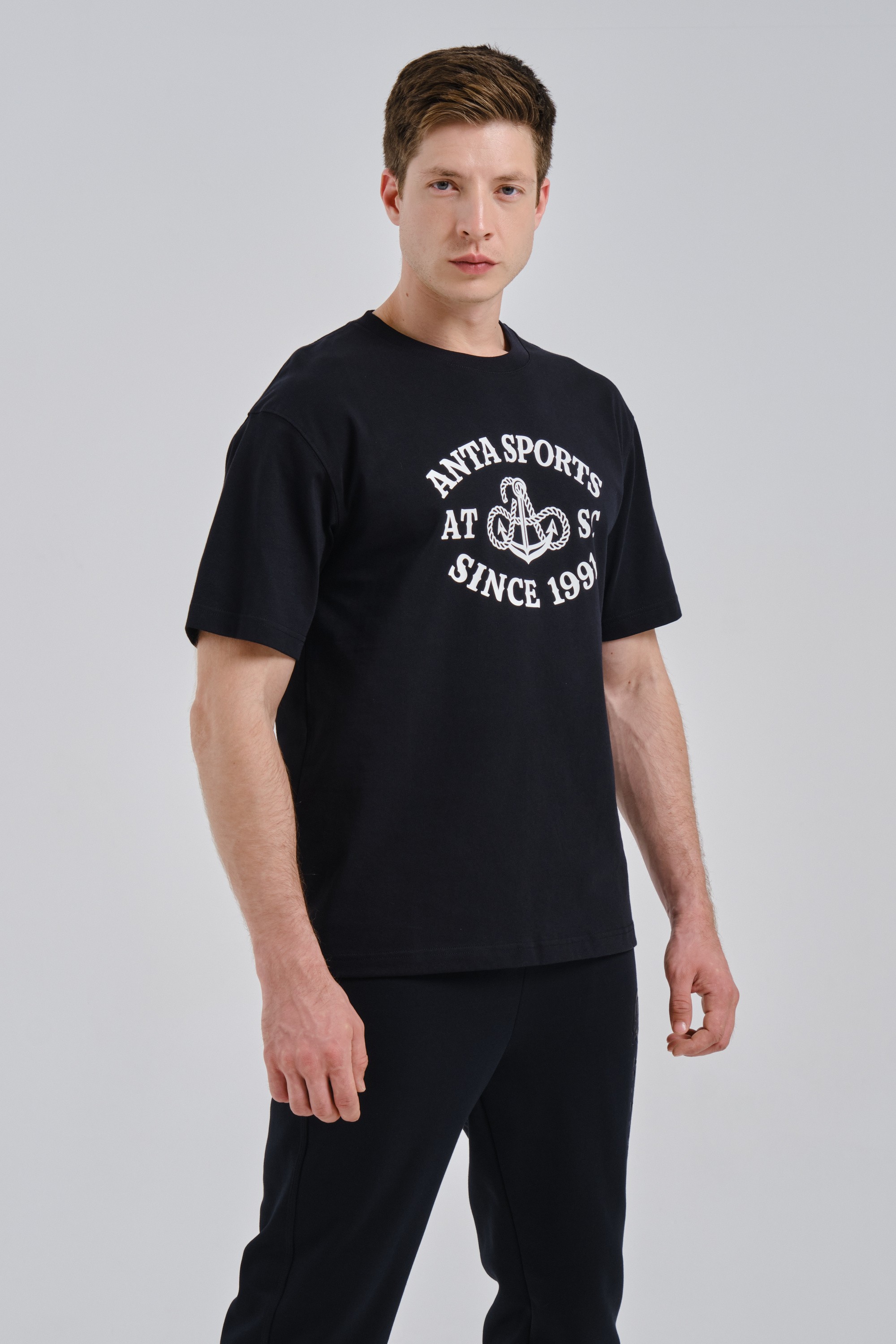 Мужская футболка свободного кроя из ретро-спорт коллекции ANTA SPORTS CLUB, сочетающая в себе удобство, комфорт и романтические мотивы в дизайне.