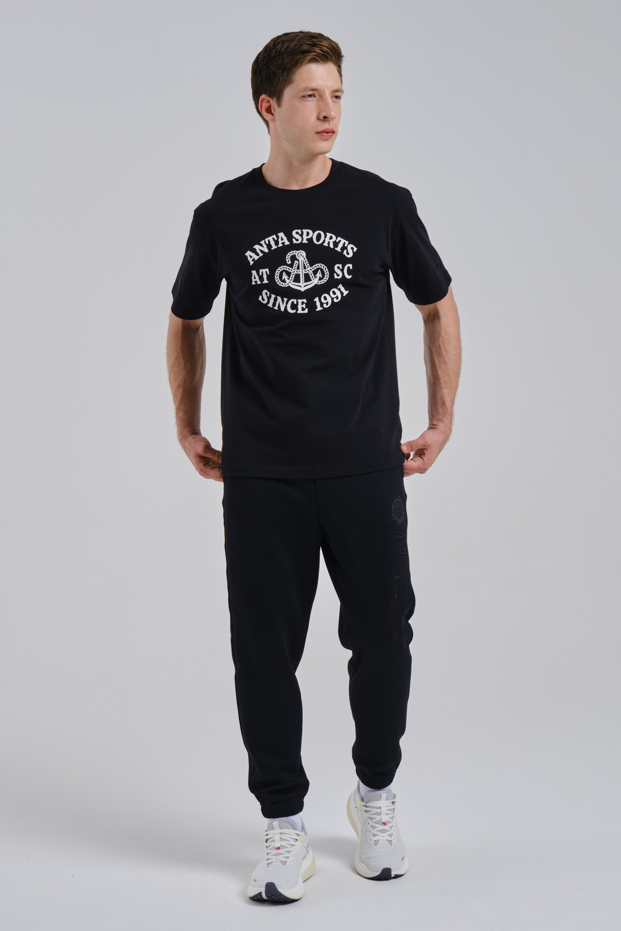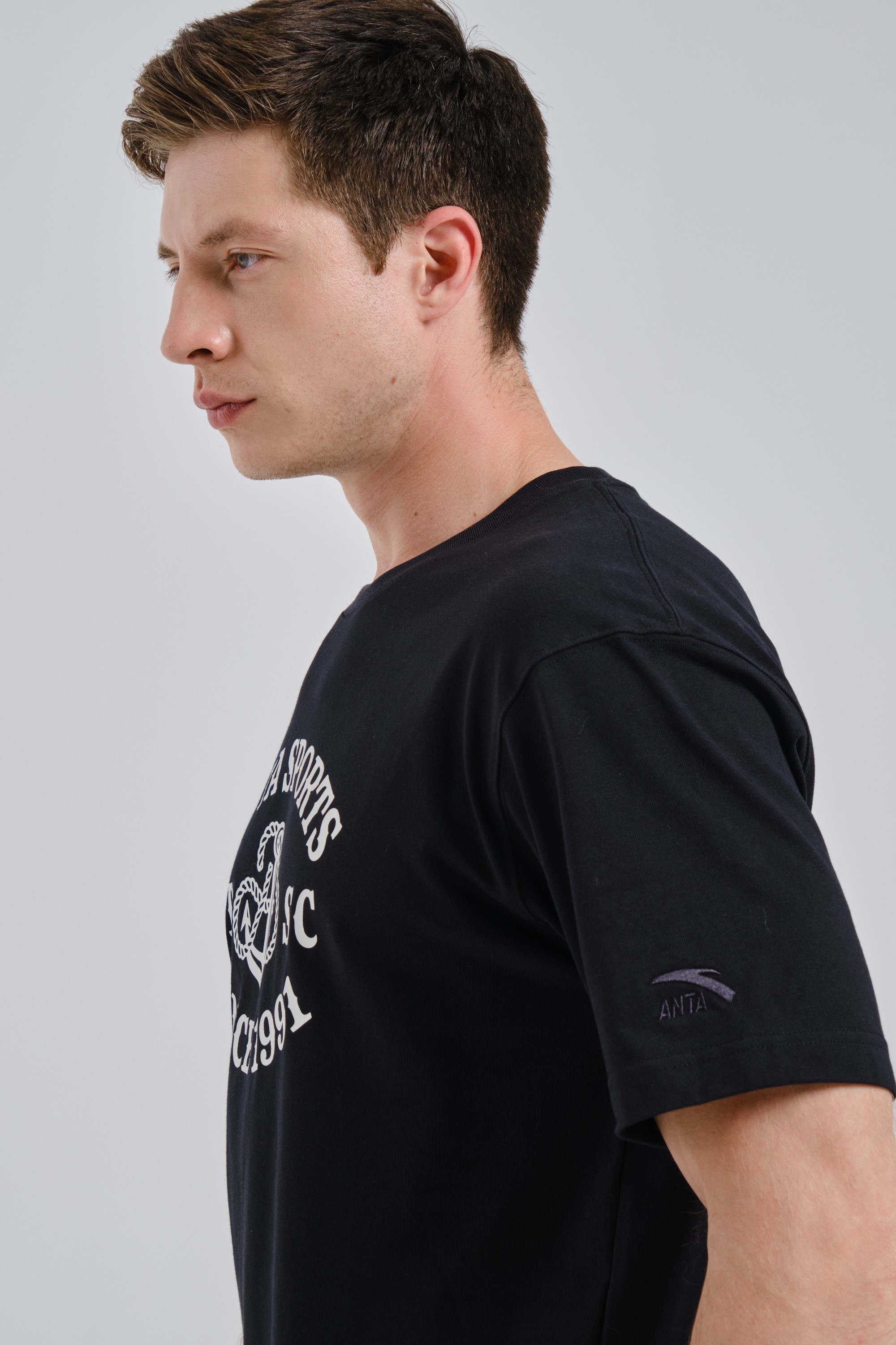 Крупный высококачественный принт на груди содержит название коллекции, дату основания бренда ANTA, а также стилизованное изображение каната и якоря.