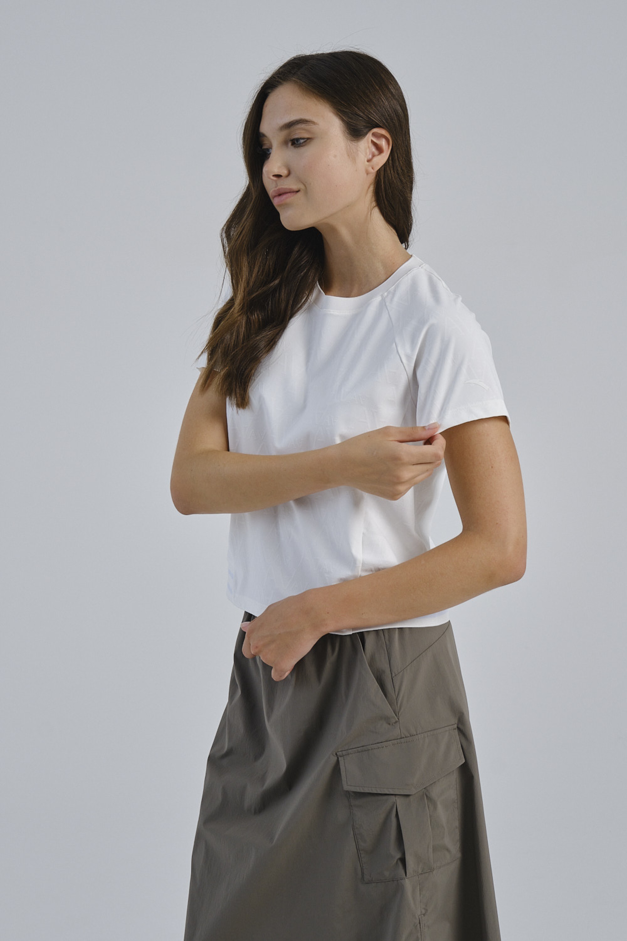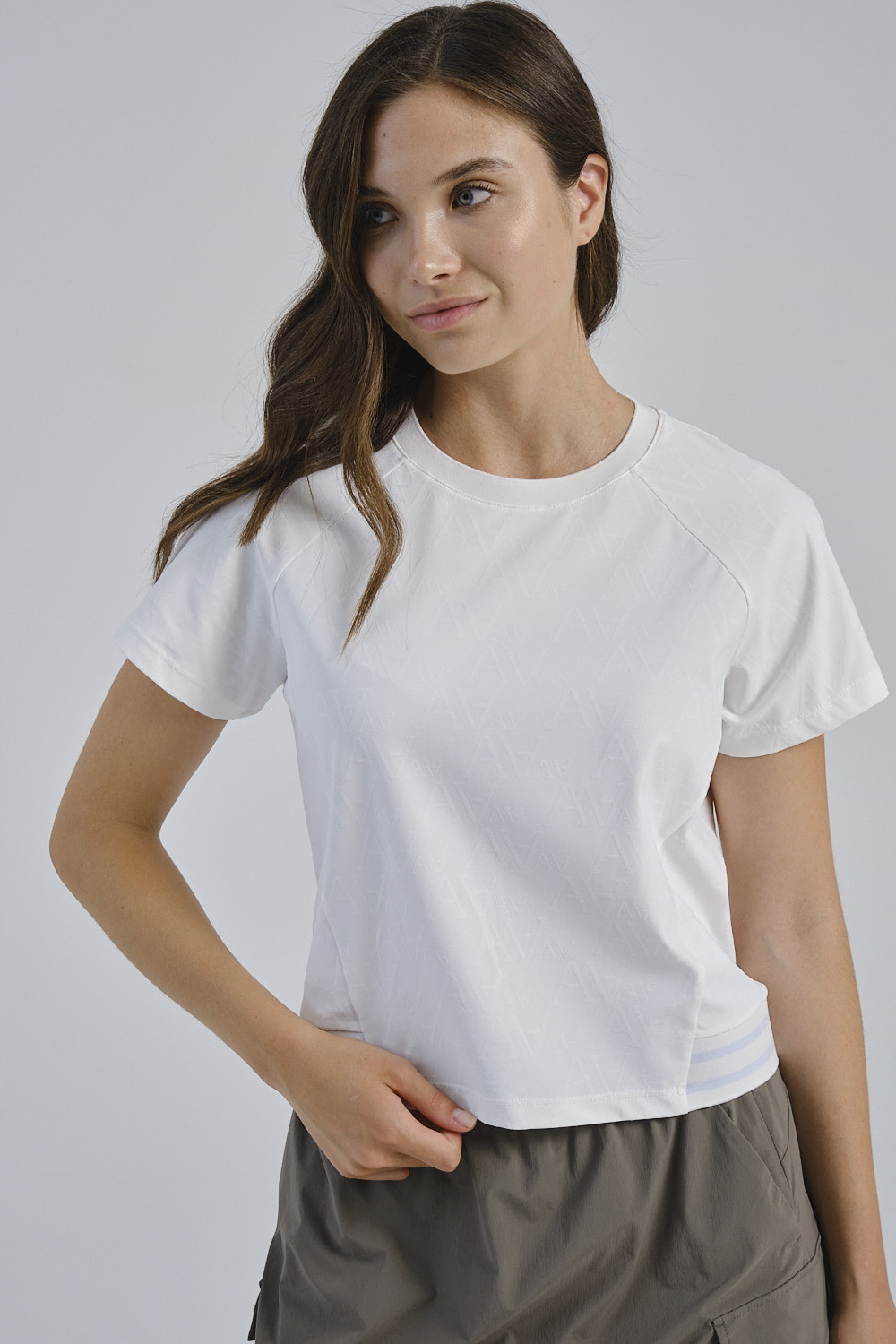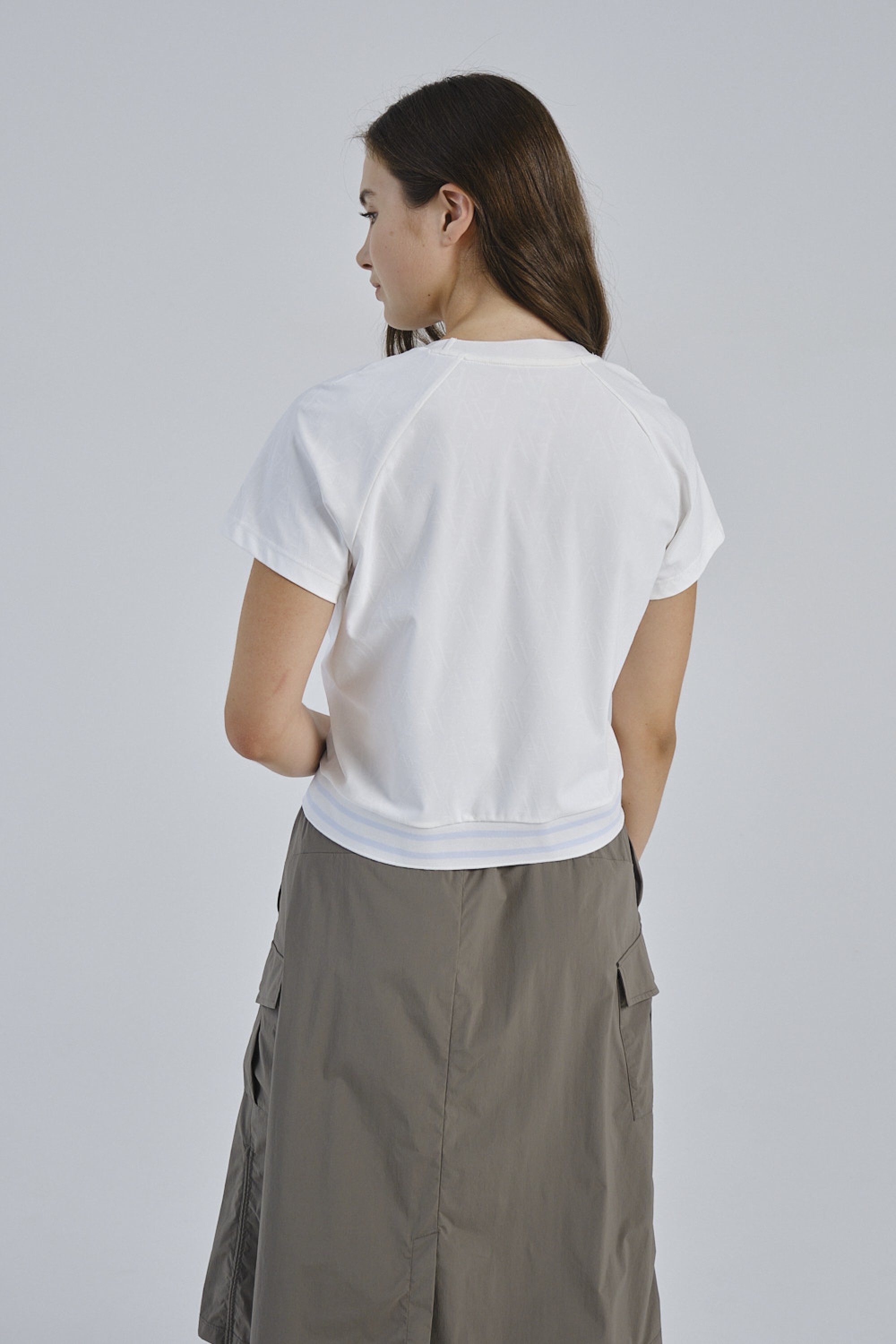 Дополнительные швы искусно подчеркивают линию талии, создавая более женственный силуэт. Сочетание текстурированного белого полотна и отсутствия принтов придает этой футболке лаконичный и премиальный вид. Классический белый цвет делает эту футболку универсальным элементом вашего спортивного гардероба, который легко сочетается с различными легинсами и шортами.