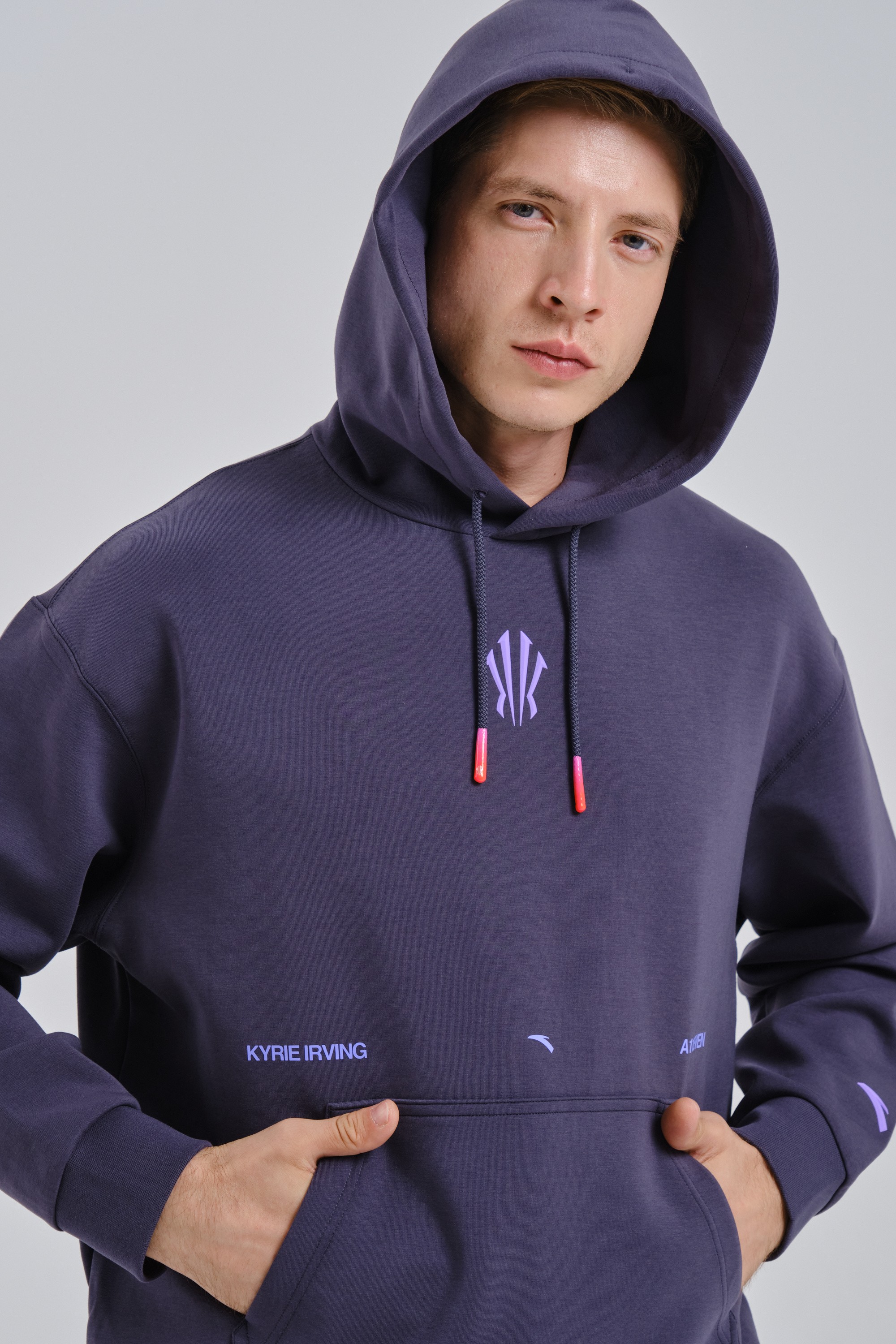 Высокотехнологичный комбинированный принт на спине груди и капюшоне, контрастная киперная лента и декоративные элементы на шнурке придают худи премиальный вид.