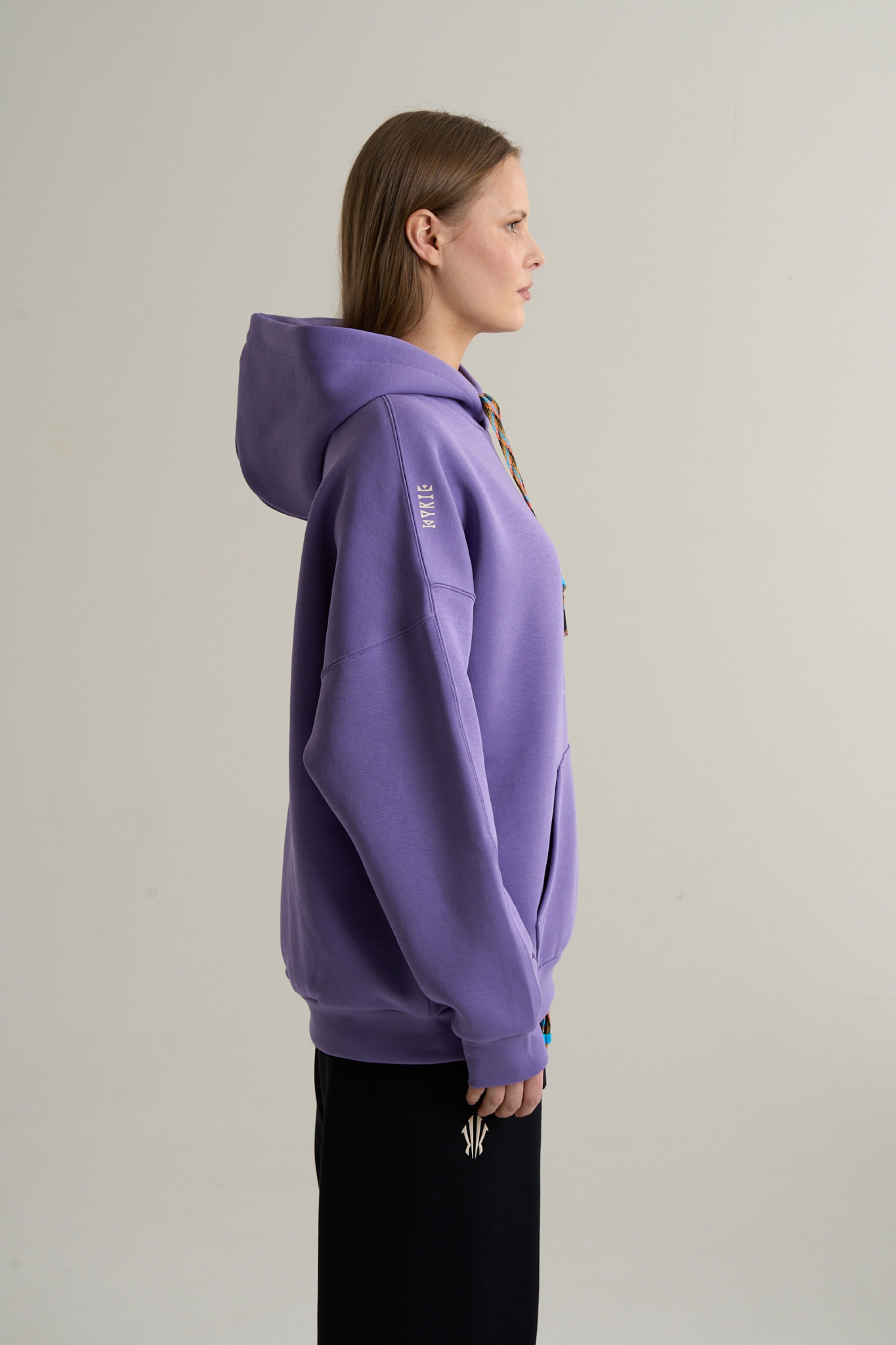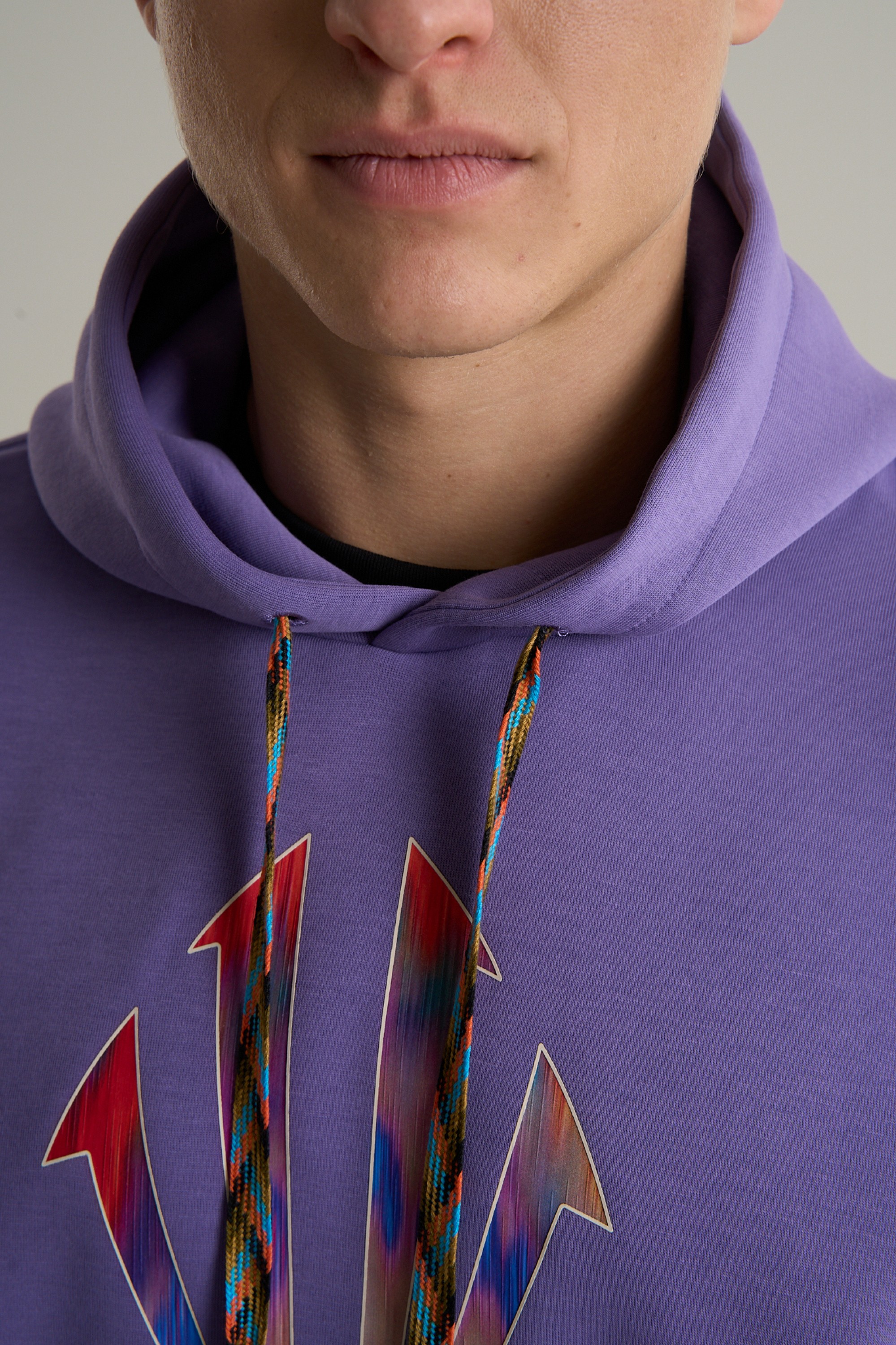 Оверсайз посадка Relaxed Fit не стесняет движений и подойдет для любого типа телосложения. Капюшон-воротник, оснащенный разноцветным регулировочным шнуром с шармами, можно адаптировать под разные погодные условия. Широкие трикотажные манжеты и низ эффективно сохраняют тепло. Вместительный карман-кенгуру предоставляет удобное место для рук и хранения мелких вещей, дополняя ощущение уюта и защищенности.