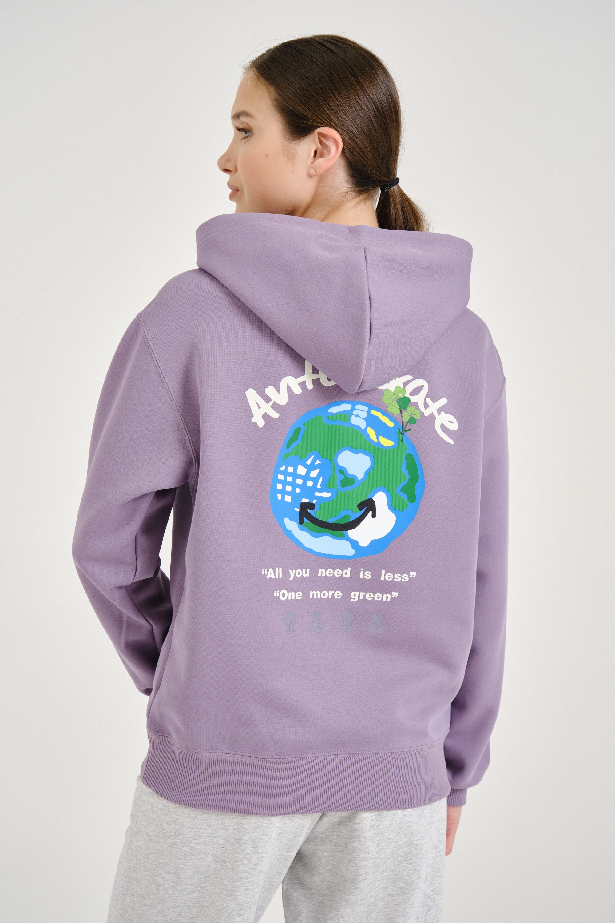 Крупный принт на спине подчеркивает важность заботы об окружающей среде.