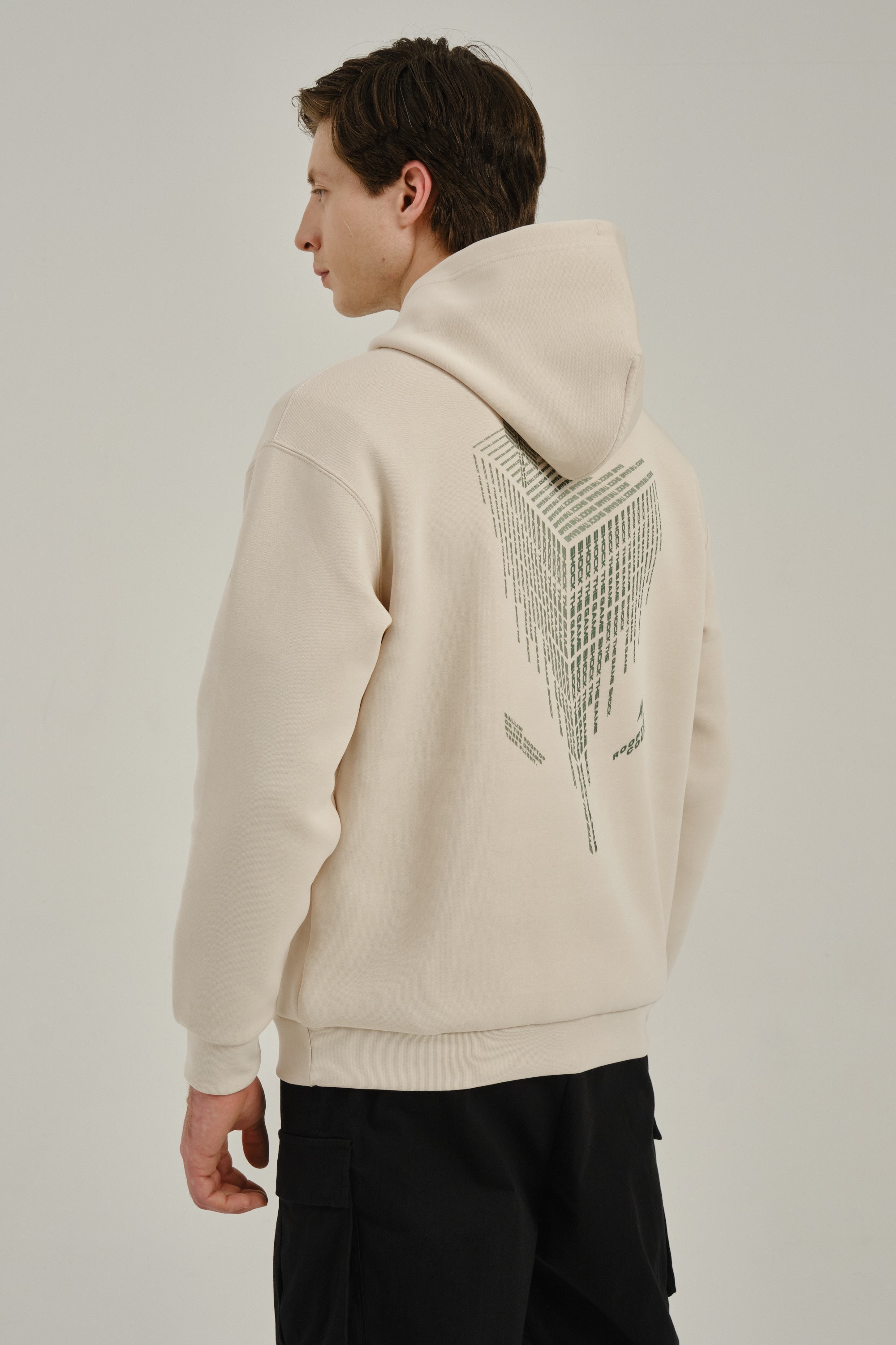 Крупный высокотехнологичный принт на спине создает яркий образ.