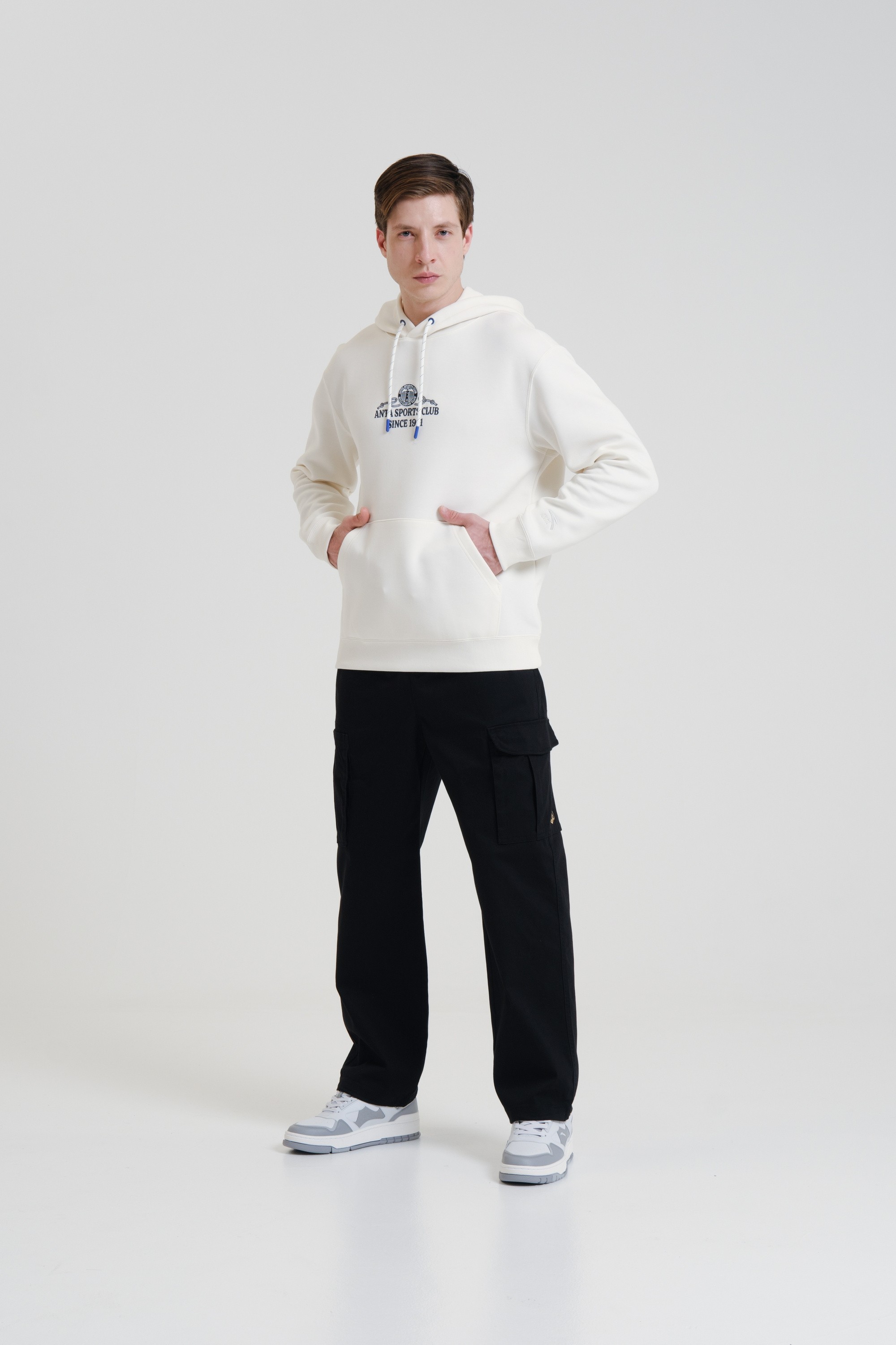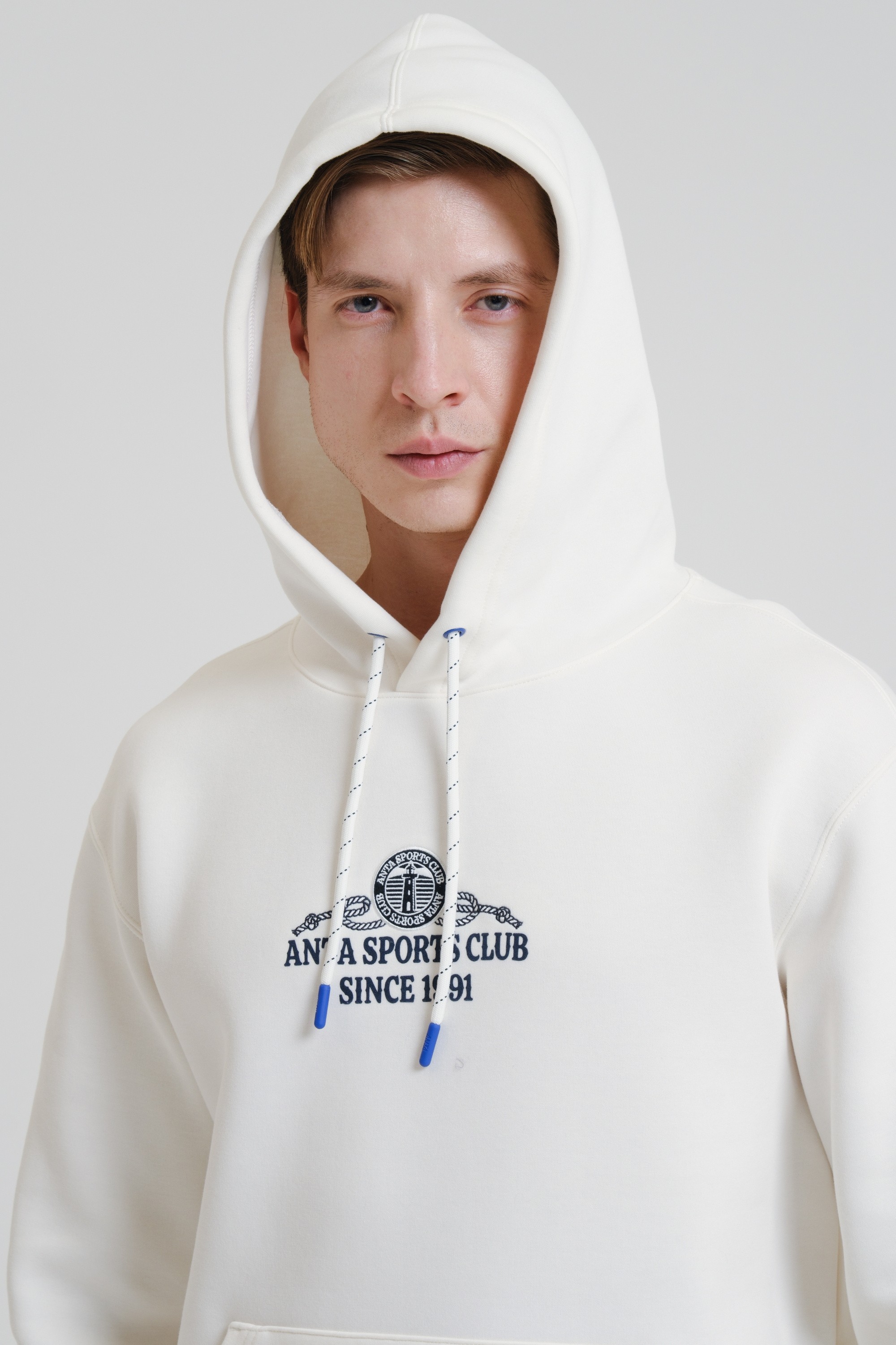 Мужское худи свободного кроя из ретро-спортивной коллекции ANTA SPORTS CLUB, сочетающее в себе практичность, комфорт и романтические мотивы в дизайне.