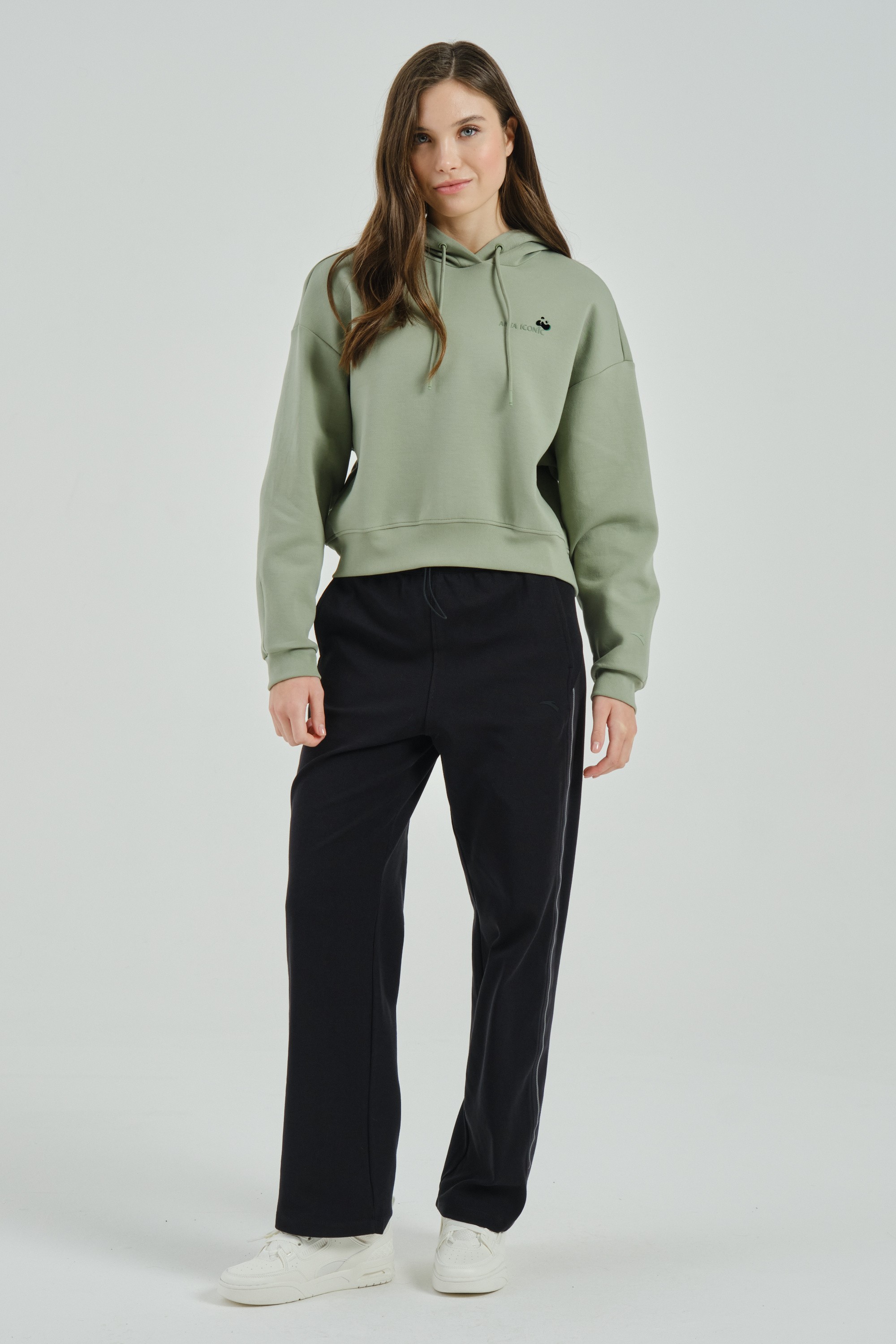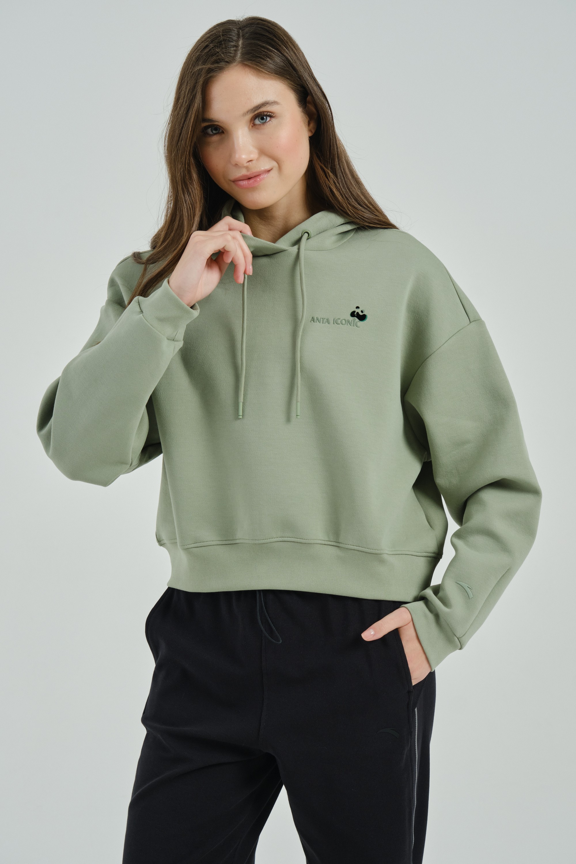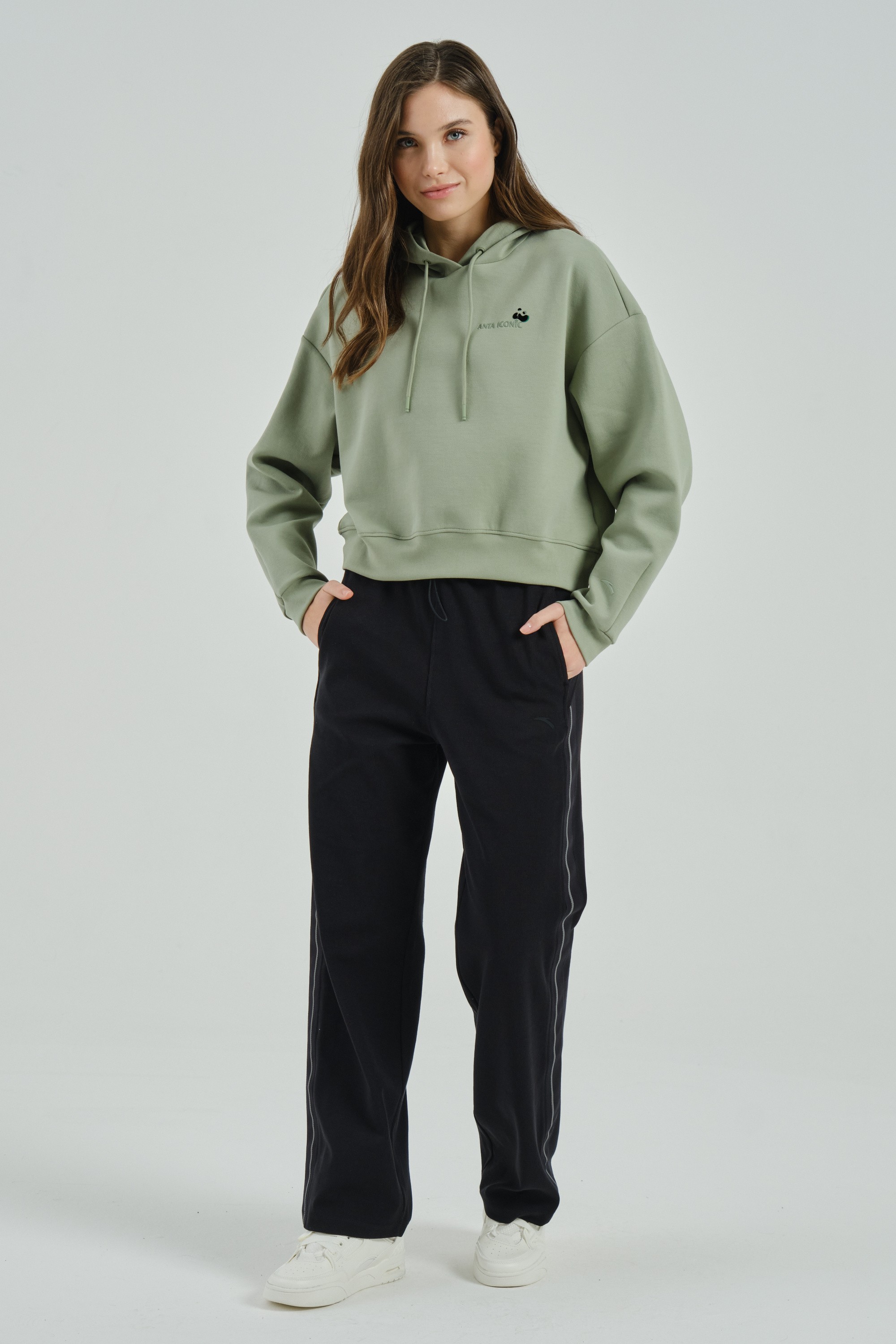 Женское худи свободного кроя из премиальной коллекции ANTA ICONIC, сочетающее в себе удобство и стиль.