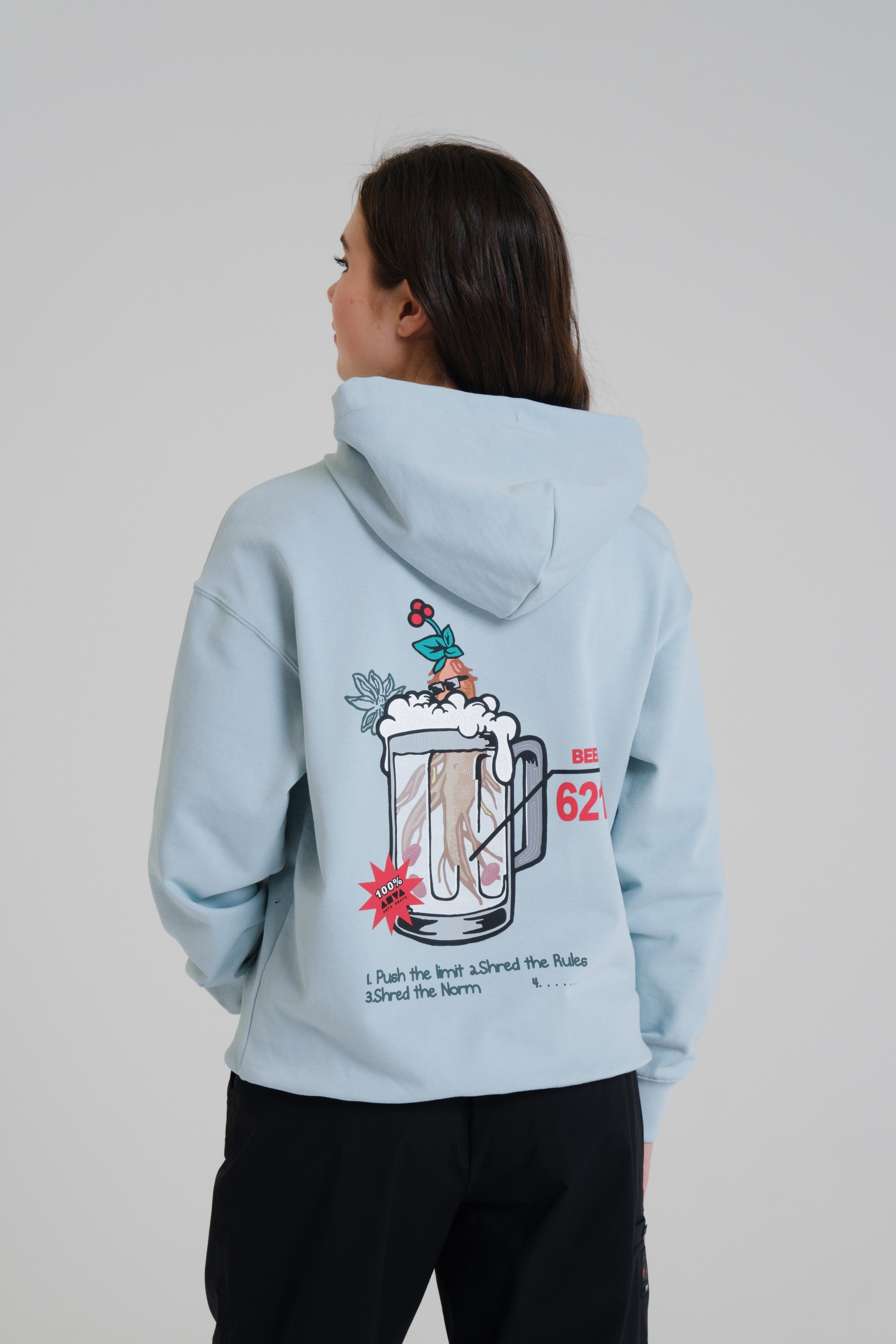 Дизайн крупного высокотехнологичного принта на спине вдохновлен традиционной китайской медициной и одним из самых любимых напитков в Китае и во всем мире - пивом.