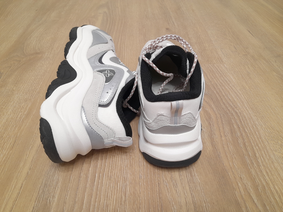 Промежуточная подошва из EVA и резины обеспечивает мягкость, амортизацию и сцепление с поверхностью. Резиново-пластиковый композит добавляет дополнительную износостойкость, что делает кроссовки долговечными и устойчивыми на различных поверхностях.