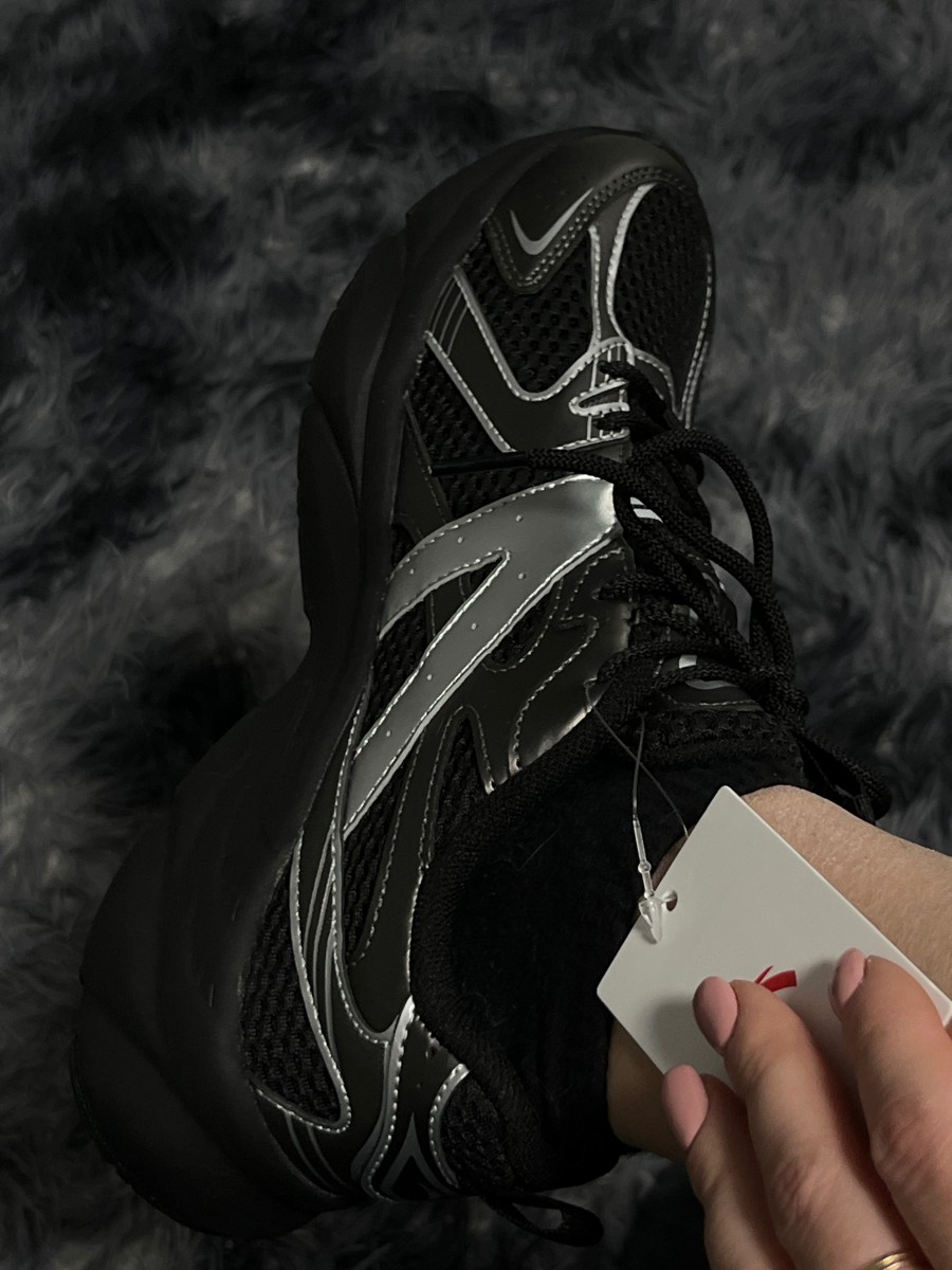 - Ретро-футуризм: силуэт в духе 90-х с контрастными панелями и объемным язычком.