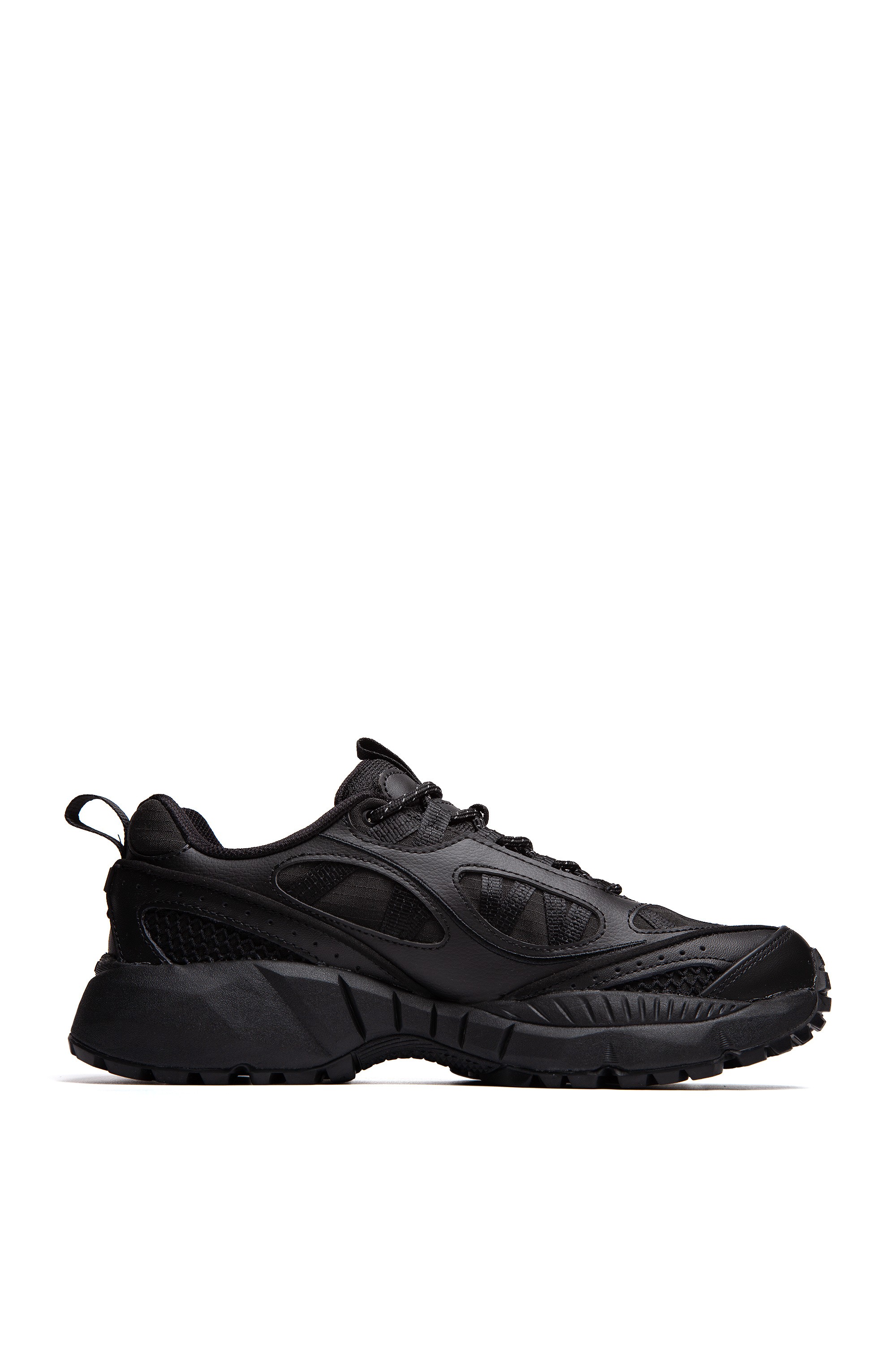 Дизайн верхней части - наследие культового силуэта, дополненное многослойностью кожи и сетки, что придаёт визуальную глубину.