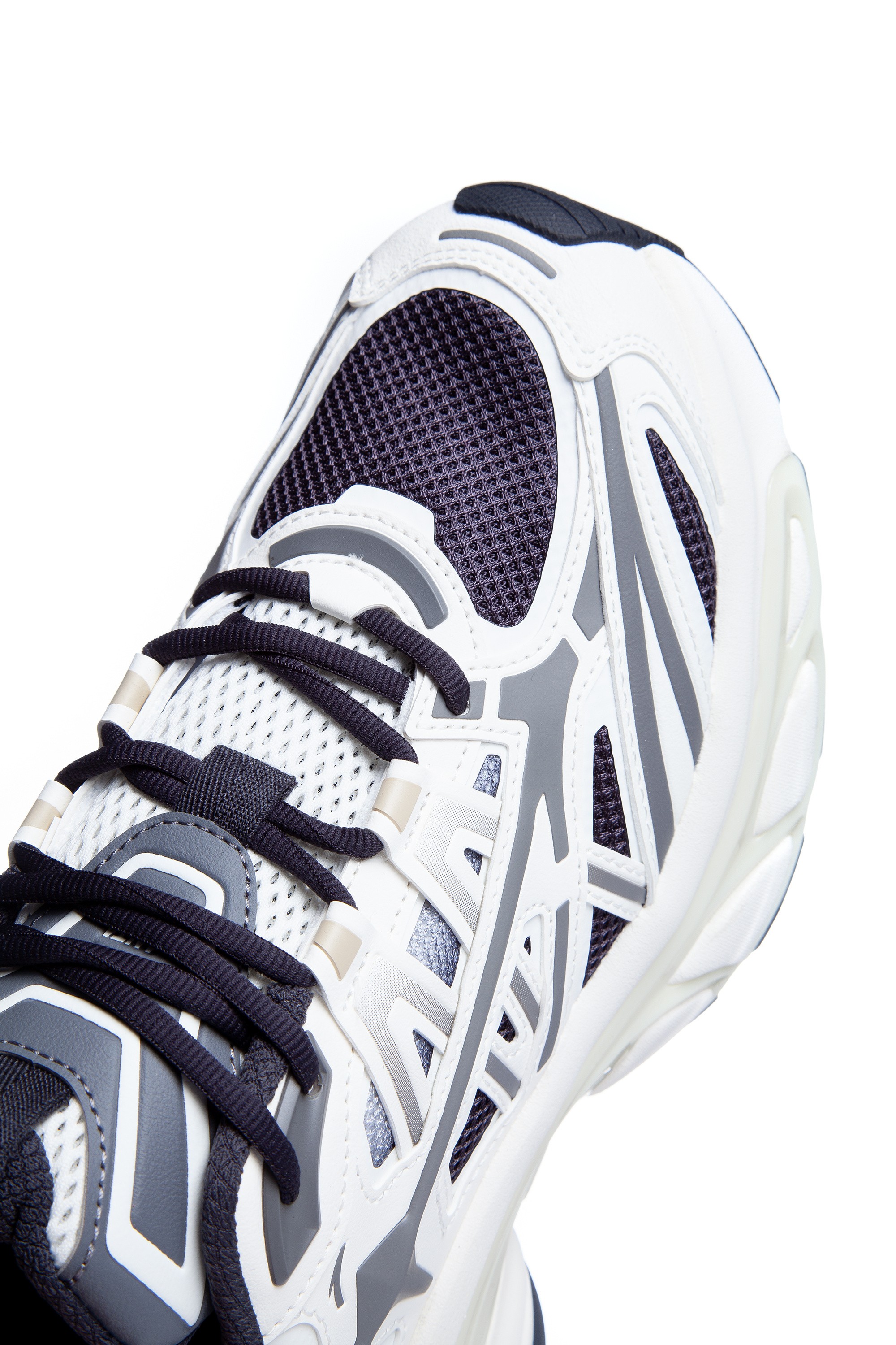 Верх выполнен из комбинации экокожи, сетки из нейлона и вставками из прочного материала, создает баланс между винтажным шармом и современной прочностью. Сетчатые вставки обеспечивают вентиляцию, а кожаные элементы добавляют прочности. Промежуточная подошва из легкого и упругого пеноматериала с TPU-стабилизаторами смягчает удары при ходьбе, сохраняя энергию для динамичного движения. Технология амортизации A-FLASHEDGE гарантирует комфорт даже при длительной носке.