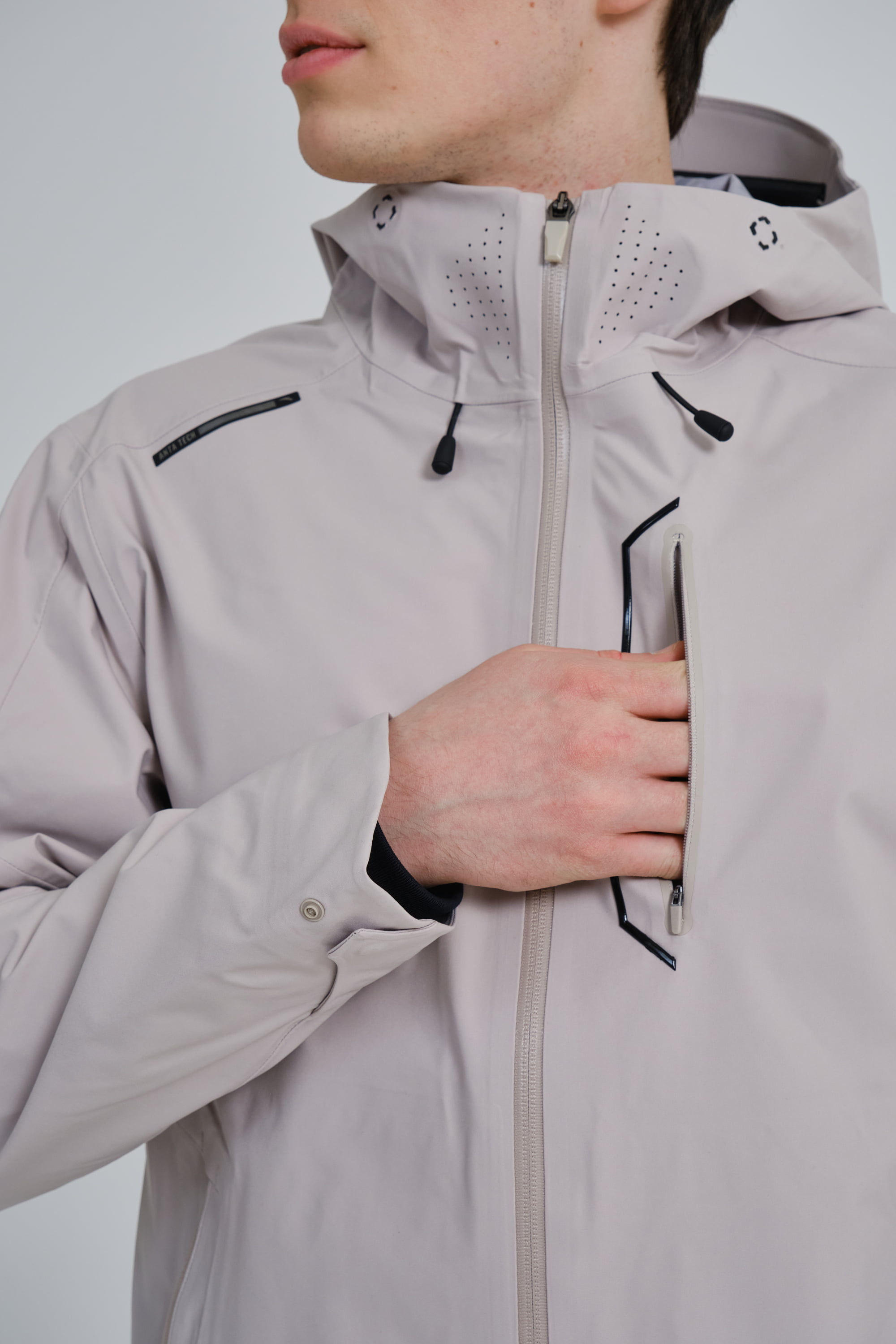 Практичная мужская куртка стандартного кроя станет незаменим элементом осеннего гардероба. Модель подойдет для функциональных тренировок на улице. Куртка выполнена полностью из материала Dermizax с технологией A-RAIN PROOF. Dermizax — водонепроницаемая и дышащая мембрана японской компании Toray, которая обеспечивает комфорт и сохраняет одежду сухой на протяжении всего дня. Для защиты от ветра предусмотрен регулируемый капюшон. Два боковых кармана на молнии и один нагрудный карман.