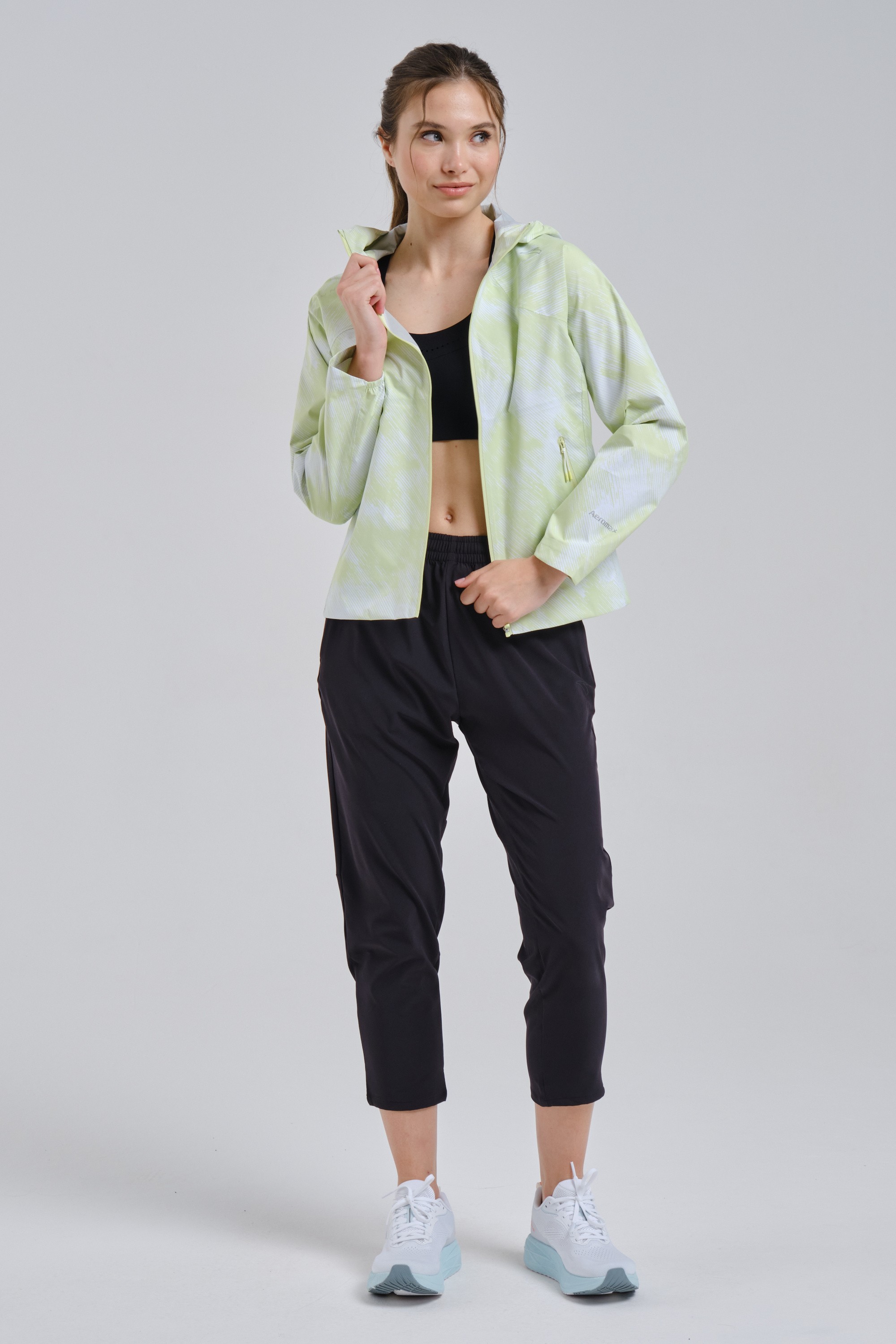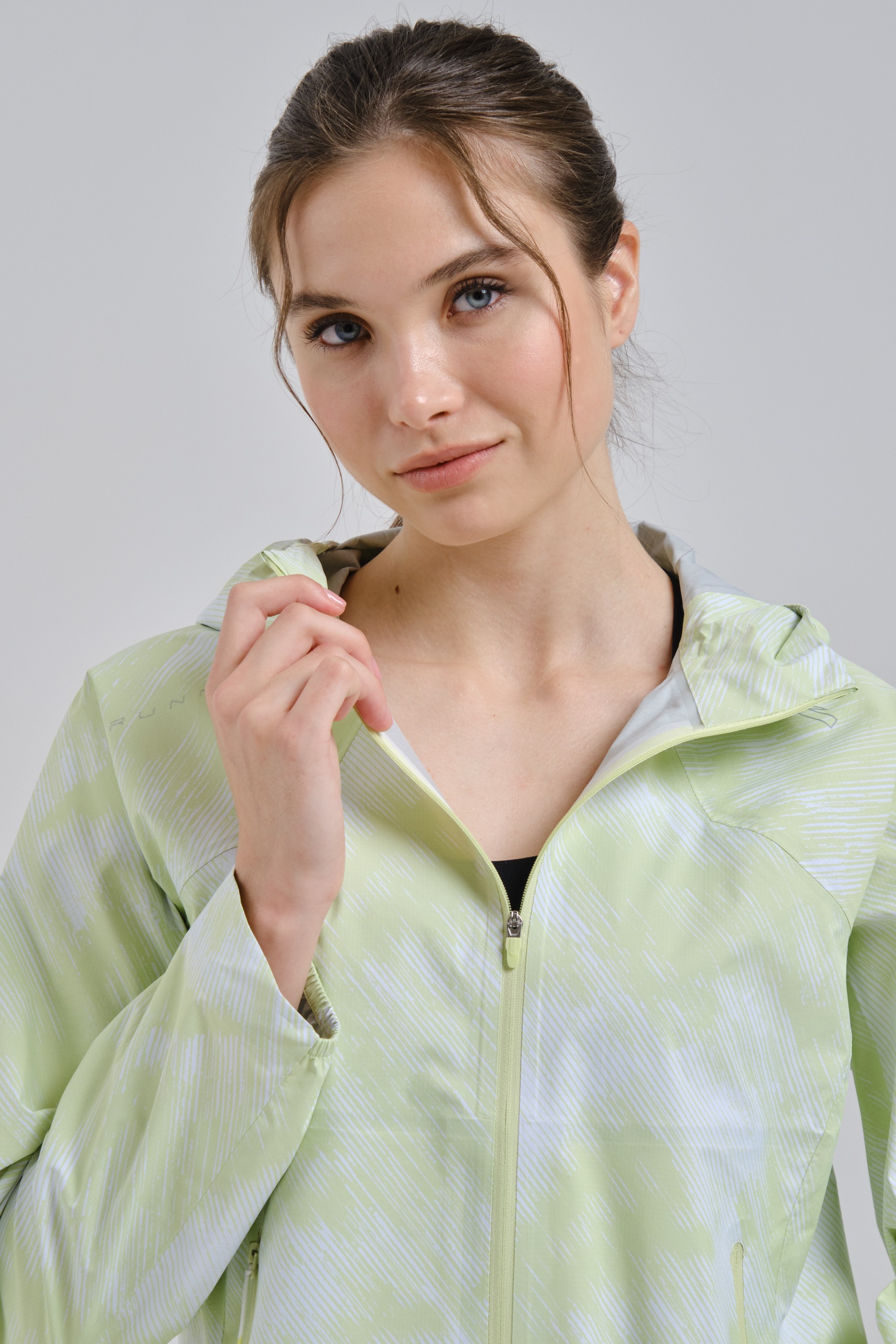 Специальный крой предотвращает эффект паруса при беге в высоком темпе или при сильном ветре и не стесняет движения рук.