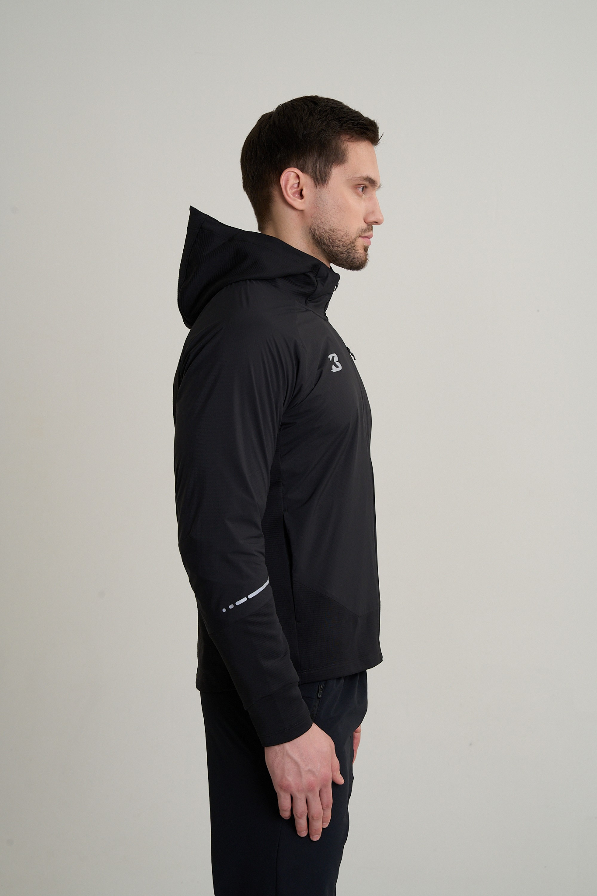 Основная информация: Ветрозащитная куртка; Утепленная куртка; Куртка софтшелл; Подкладка микрофлис; Приталенный крой; Артикулированный крой; Крой с учетом минимизации парусности; Эластичные вставки по бокам изделия; Высокий воротник; Несъемный капюшон; Козырек на капюшоне; Один нагрудный карман на молнии; Боковые карманы на молнии; Манжеты с прорезью под палец; Светоотражающие элементы.