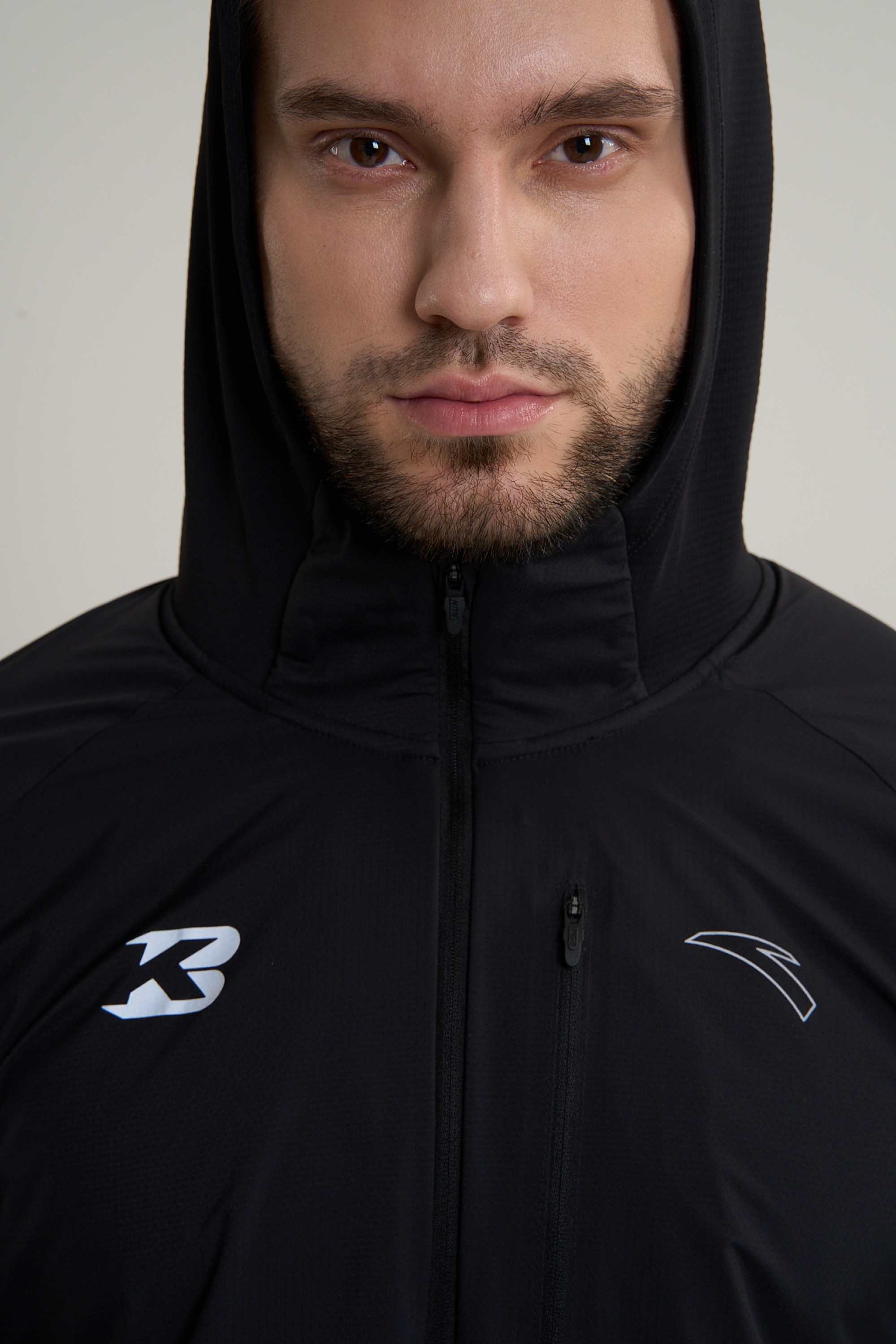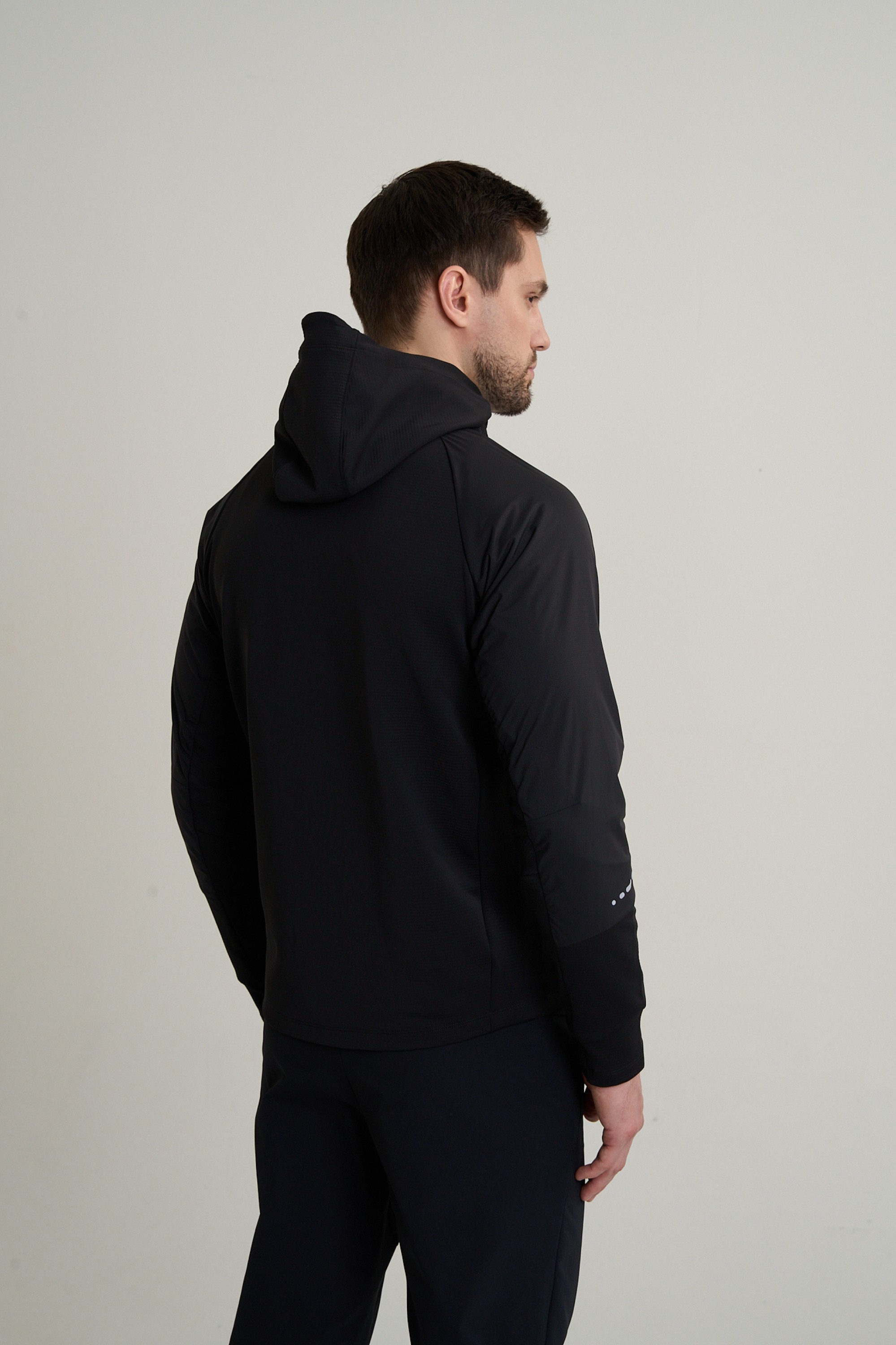 Анатомический крой полностью адаптирован к биомеханике бега и не стесняет движения плеч и корпуса. Глубокий капюшон с козырьком защищает от ветра и осадков, а высокоплотные ветрозащитные панели на груди и рукавах блокируют холодный воздух на наиболее уязвимых участках. Удлиненная спина, ветрозащитная молния с мягкой защитой подбородка и трикотажные манжеты с отверстиями для больших пальцев помогают сохранять тепло. Практичность обеспечивают два боковых и один нагрудный карман на молнии.