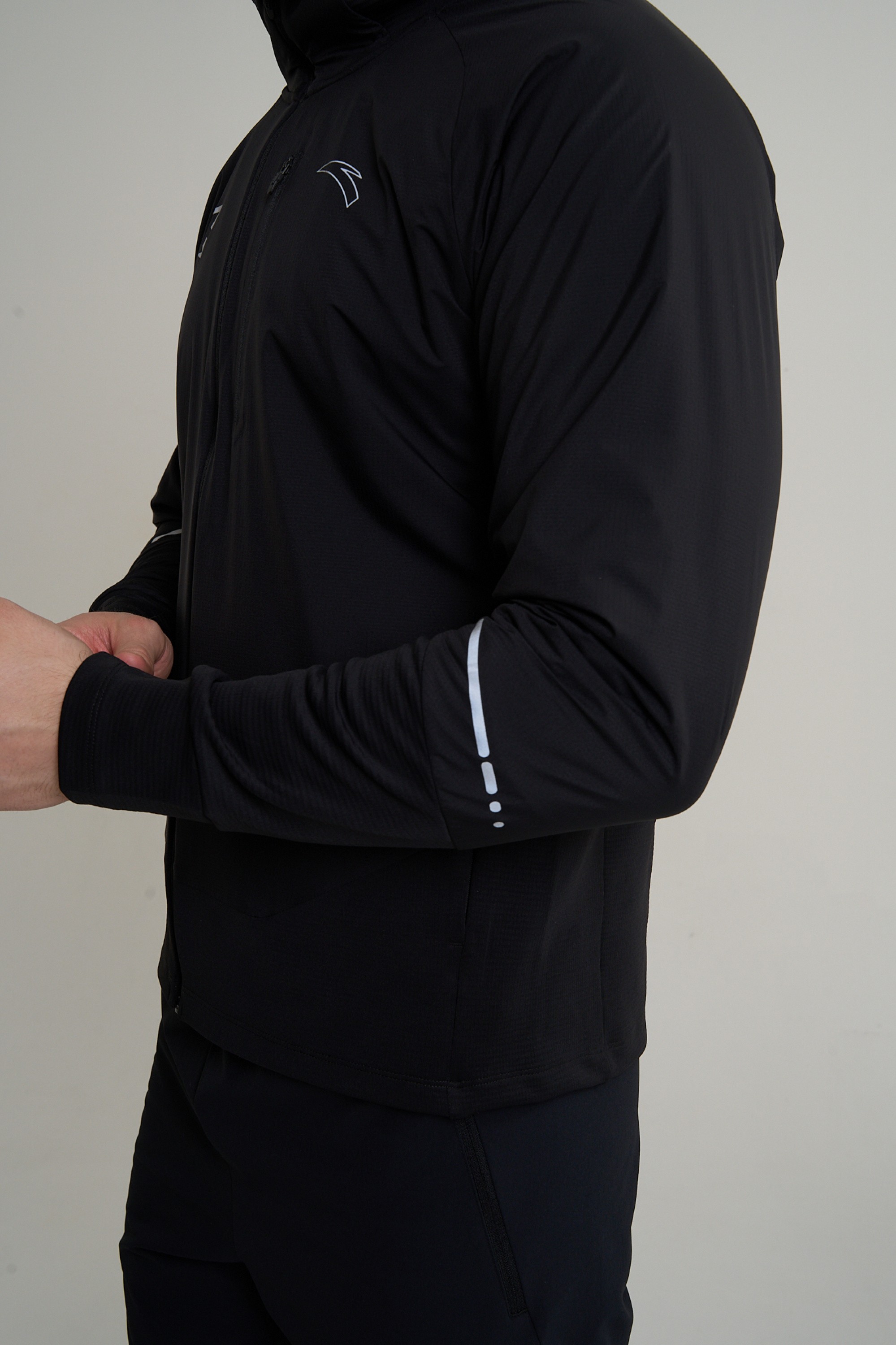 Дизайн куртки сочетает сдержанную универсальность с важными функциональными деталями. На груди расположены световозвращающие логотипы ANTA и KB (знак многолетнего сотрудничества ANTA с многократным чемпионом мира Кененисой Бекеле), которые обеспечивают заметность в сумерках и ночью. Всегда актуальный черный цвет легко интегрируется в любой тренировочный комплект, становясь его стильной и технологичной основой.