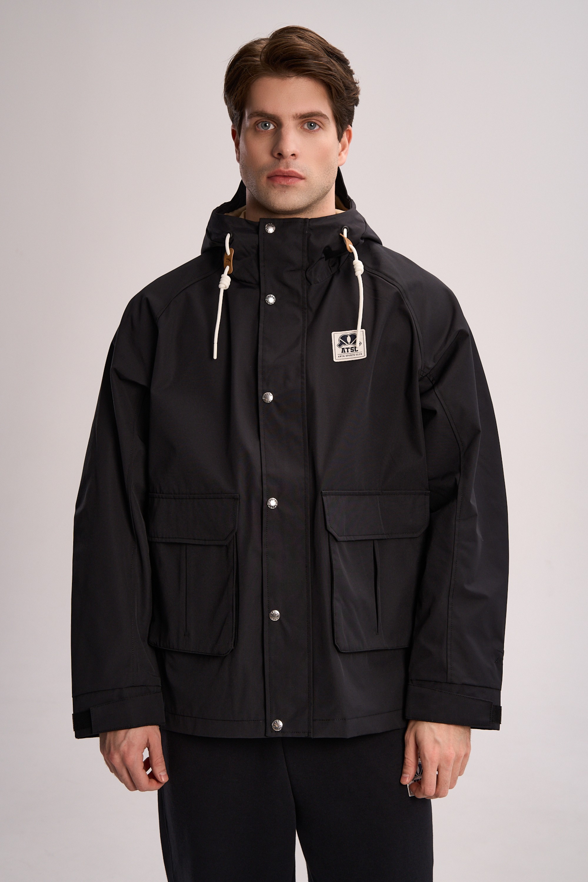 Свободная посадка подойдет для любого типа телосложения. Объемный крой локтей обеспечивают полную свободу движений, не сковывая даже широкие взмахи рук. Глубокий капюшон с регулировочным шнурком и стопорами надежно защищает от ветра. Молния с ветрозащитной планкой на пуговицах-кнопках и регулируемые манжеты на липучках работают вместе, замыкая тепловой контур и позволяя управлять микроклиматом. Два вместительных боковых кармана с клапанами надежно сохранят личные вещи.
