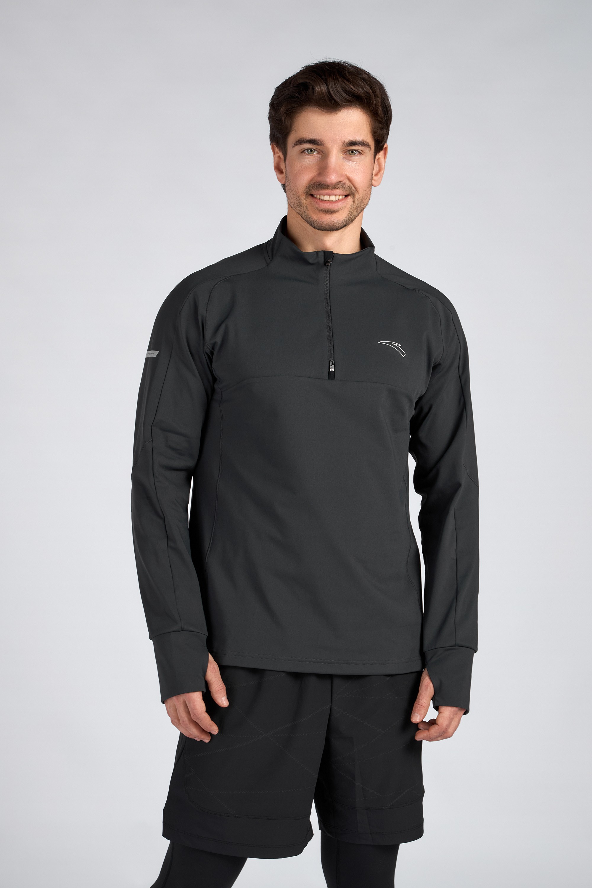 Мужской лонгслив с воротником-стойкой на молнии из коллекции ANTA RUNNING. Модель прямого кроя подходит для забегов и тренировок в прохладную погоду. Лонгслив выполнен из прочной и эластичной смеси полиэстера и спандекса с технологией 3A ANTIBACTERIAL. Пряжа с ионами серебра обладает превосходными антибактериальными свойствами, которые не пропадут даже после 99 стирок. Модель дополнена манжетами с вырезом для большого пальца. Специальный клапан защищает подбородок от контакта с замком молнии.