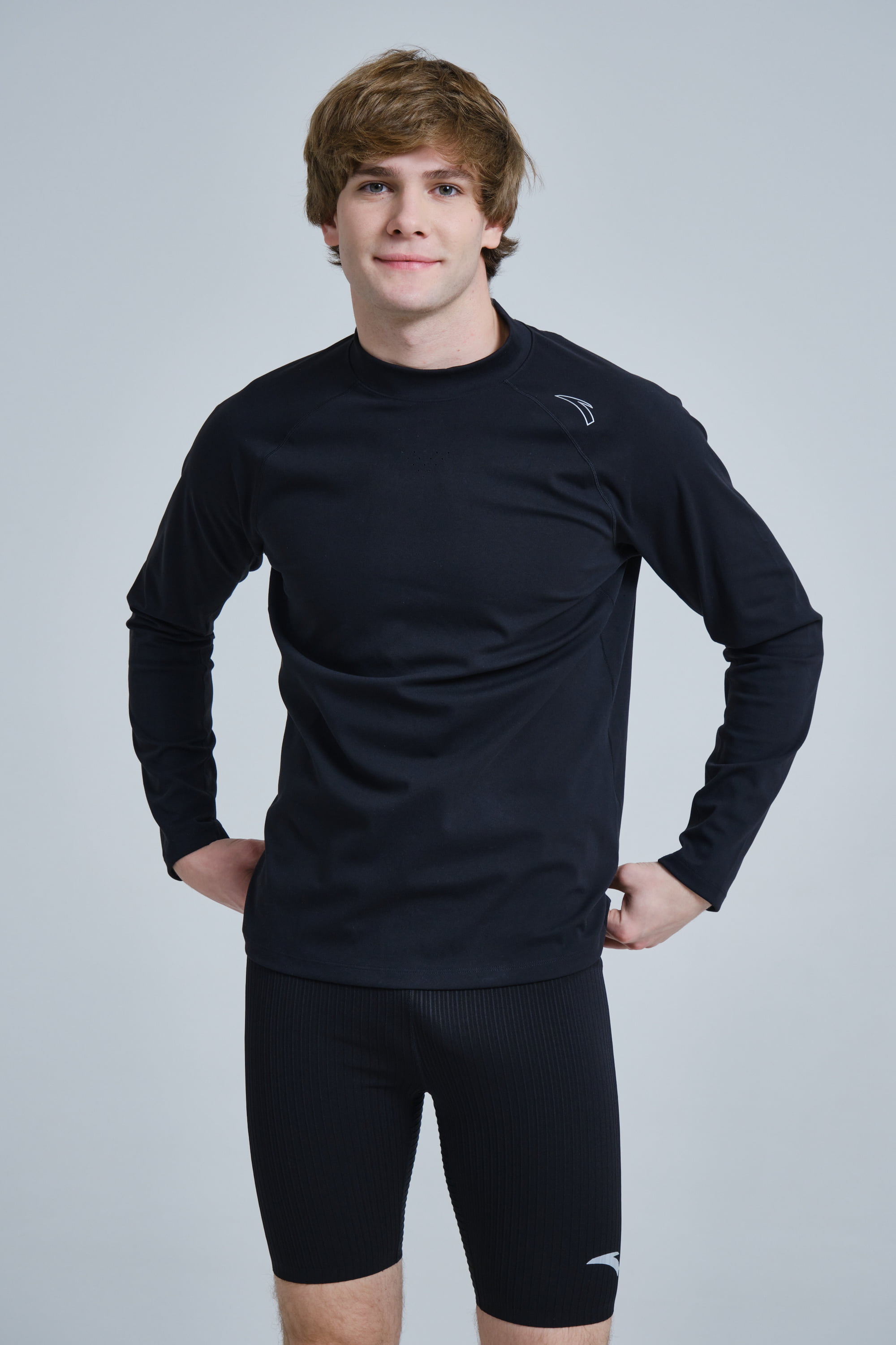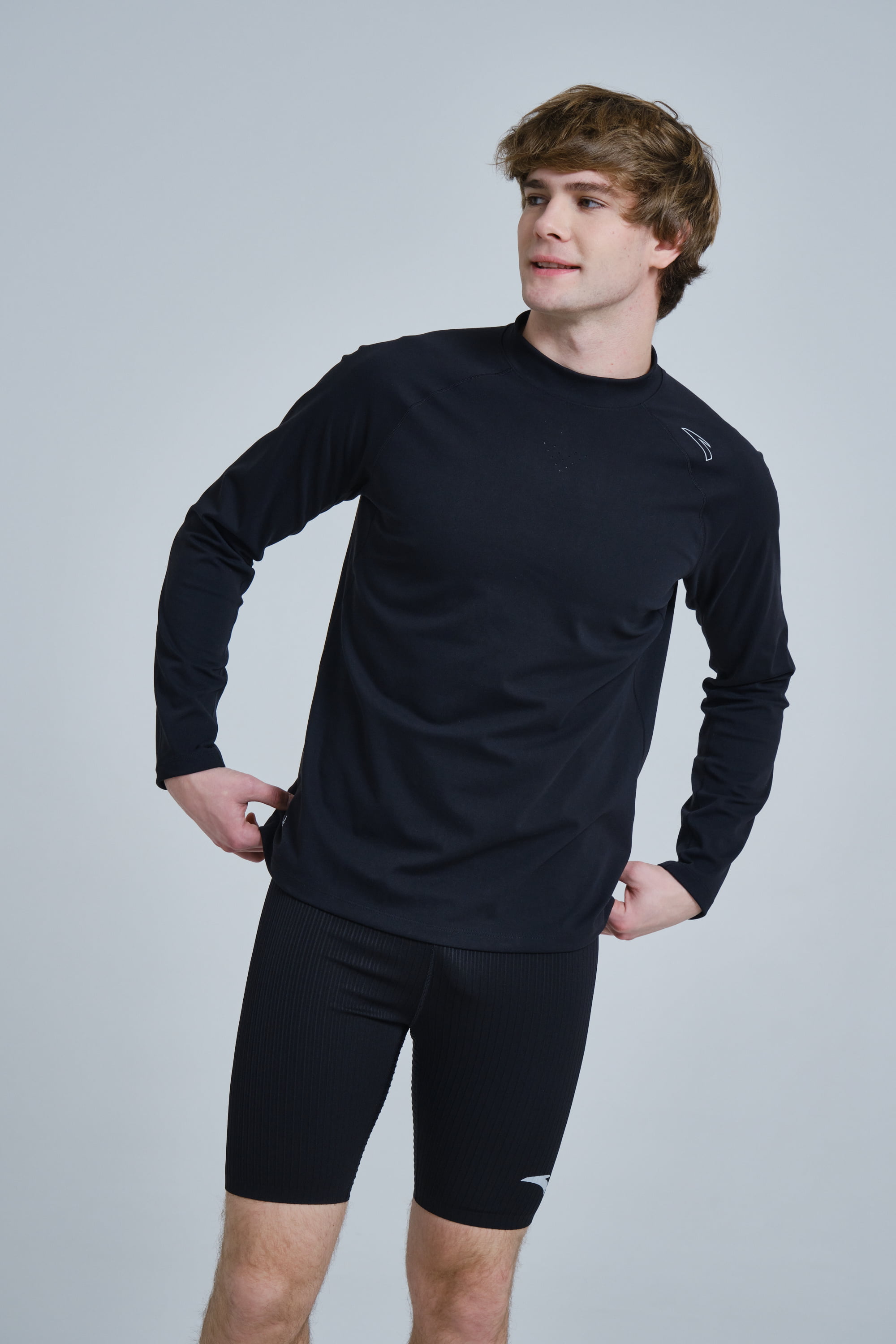 Лонгслив из коллекции одежды для бега. Модель рассчитана на пробежки на дистанции от 5 до 20 км, как любителями, так и профессионалами. Лонгслив выполнен из износостойкой и эластичной смеси полиэстера и спандекса по технологии A-WARM, обеспечивающей тепло и комфорт. Стандартный крой.