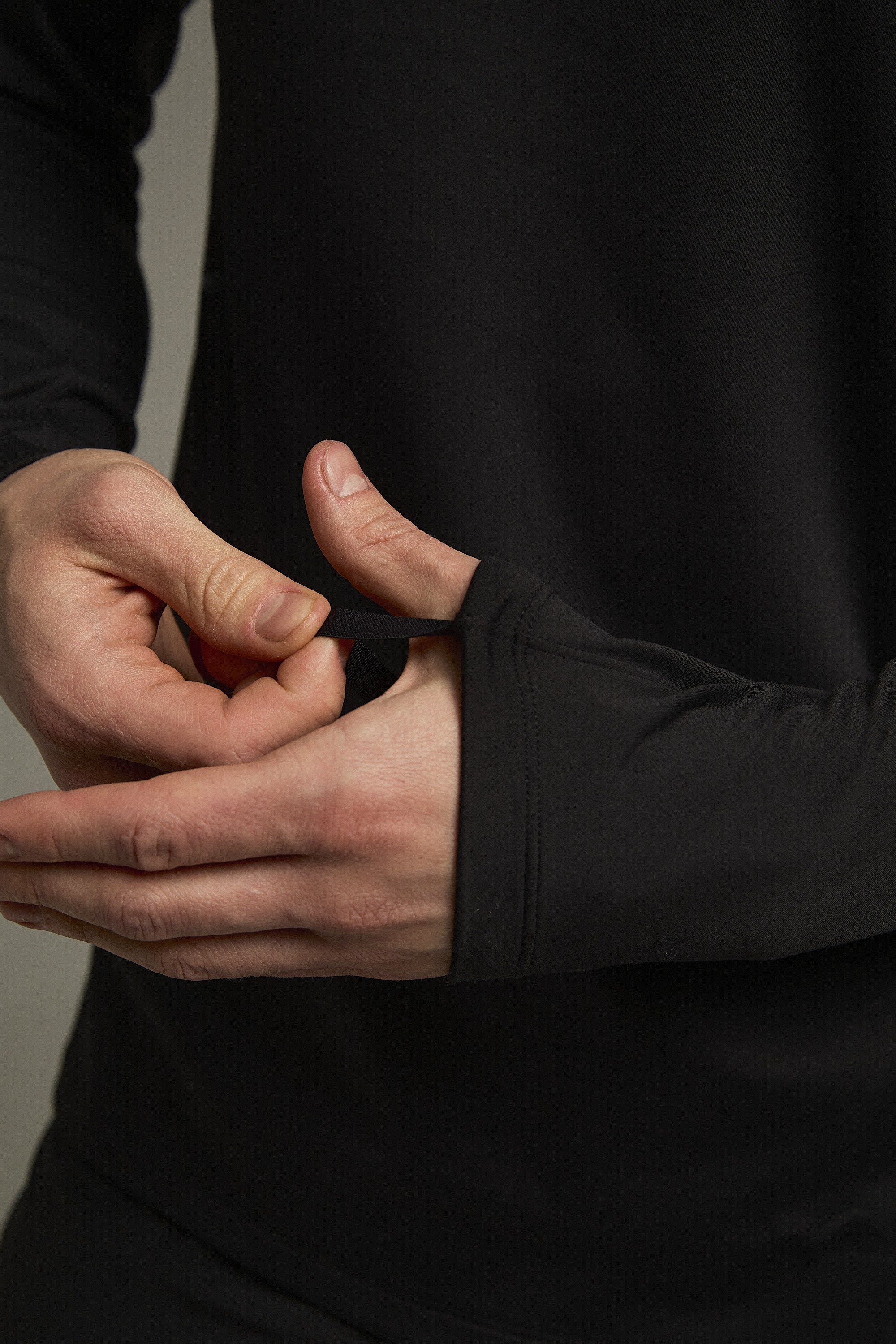 Специальный крой в зоне плеч подчеркивает атлетизм бегуна. Плоские швы предотвращают натирание. Петли для пальцев не позволяют рукаву подниматься, и это сохраняет тепло во время бега.