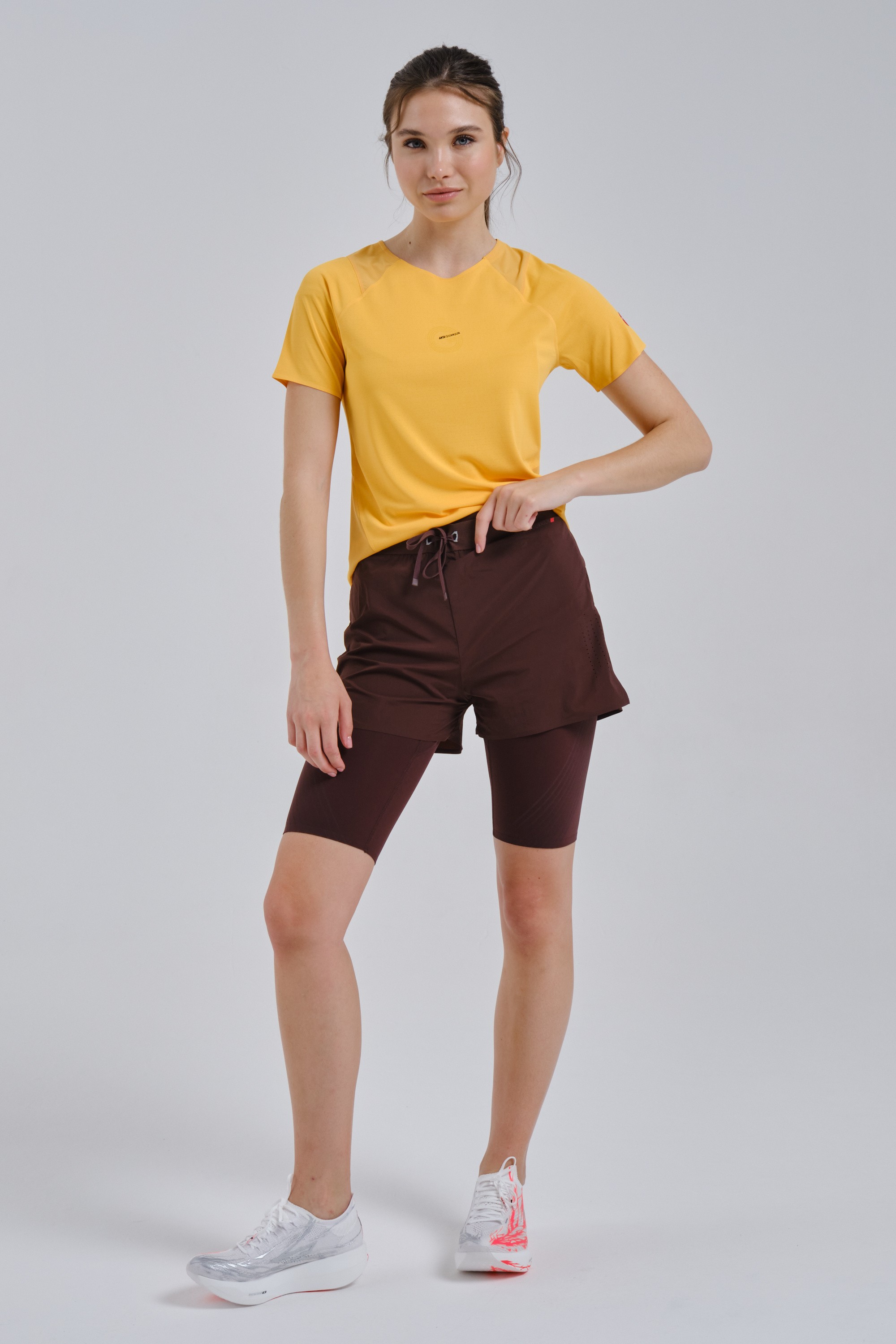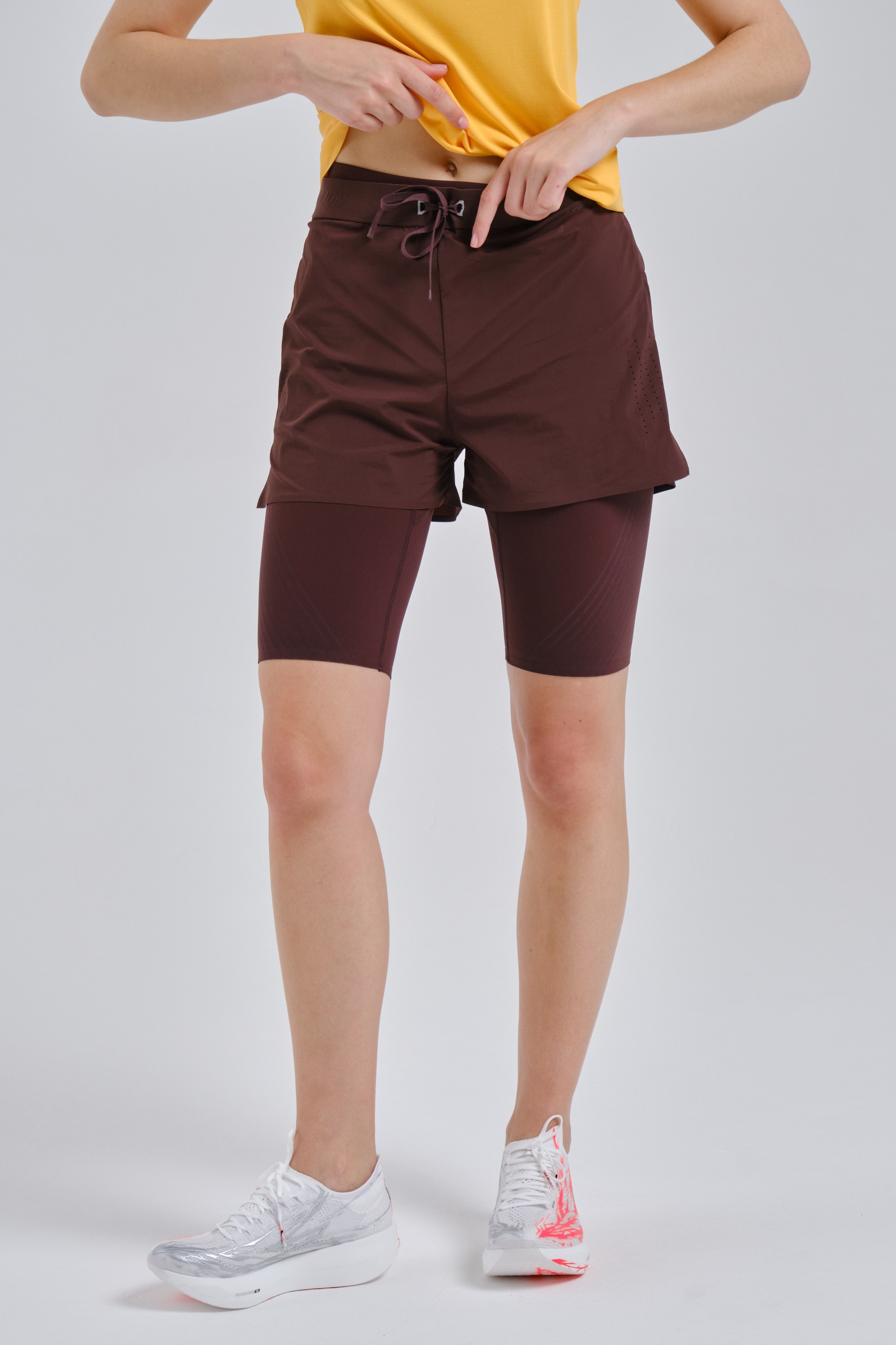 Интегрированные тайтсы с бесшовным низом и эластичный пояс со шнурком делают шорты максимально комфортными.