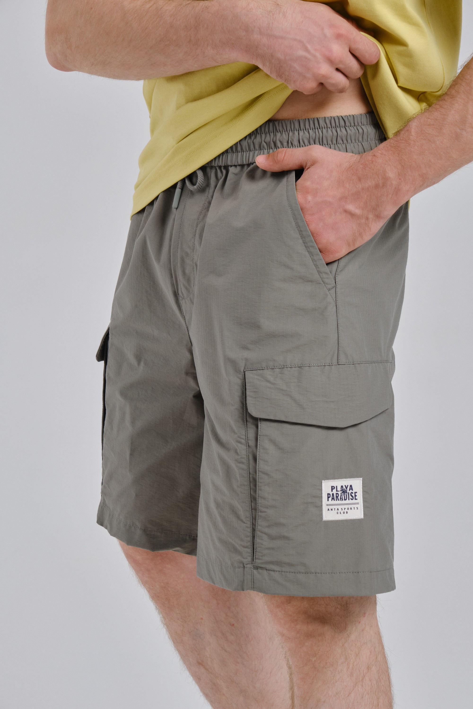 Свободный крой создает непринужденную посадку и полную свободу движений. Широкий эластичный пояс с внешним регулировочным шнурком позволяет индивидуально настроить посадку на талии. Дополнительные швы на поясе сзади сохраняют форму и делают шорты более прочными и долговечными. Два боковых кармана на молнии обеспечивают надежное хранение ценных мелочей. Два накладных кармана с клапанами, расположенные на бедрах, добавляют функциональности и подчеркивают непринужденный стиль. На левом накладном кармане расположена стильная нашивка с названием коллекции и девизом PLAYA PARADISE, которая придает шортам премиальный вид. Насыщенный оливковый цвет Olive Green добавляет образу глубины и стиля.