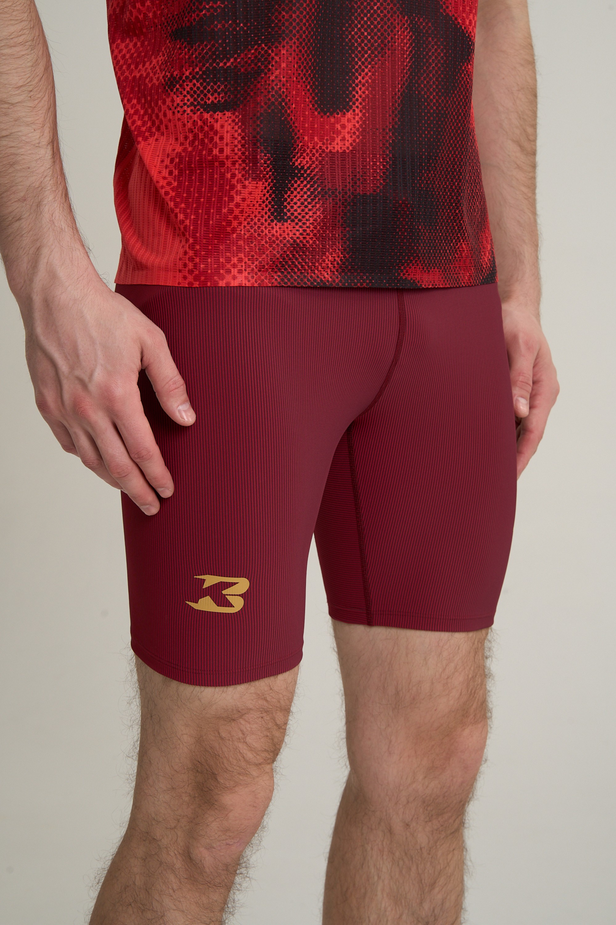 Спринтеры изготовлены из высокотехнологичного трикотажа плотностью 250 г/кв.м с уникальным составом: полиамид (61%) обеспечивает прочность и легкость, высокая доля спандекса (27%) создает необходимую степень поддержки мышц бедра, а полиэстер (12%) способствует структурной стабильности и теплообмену.