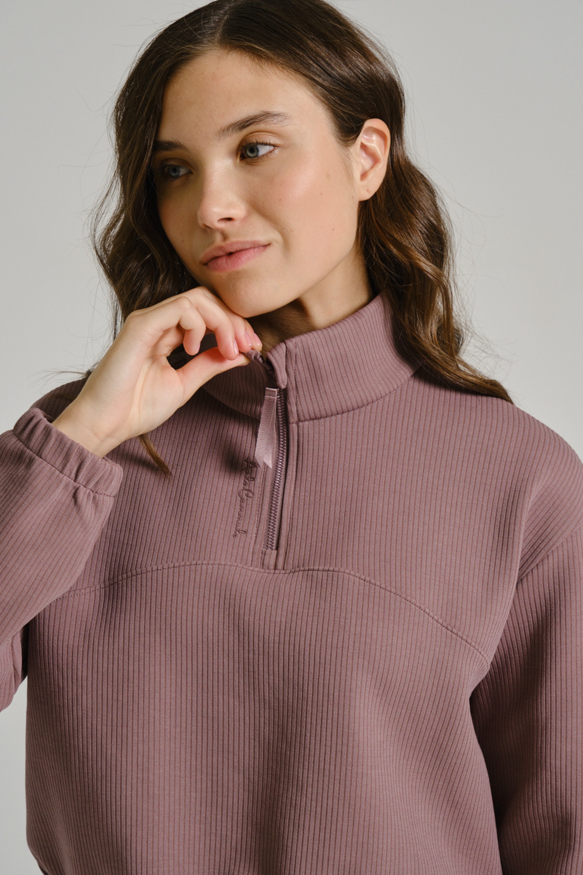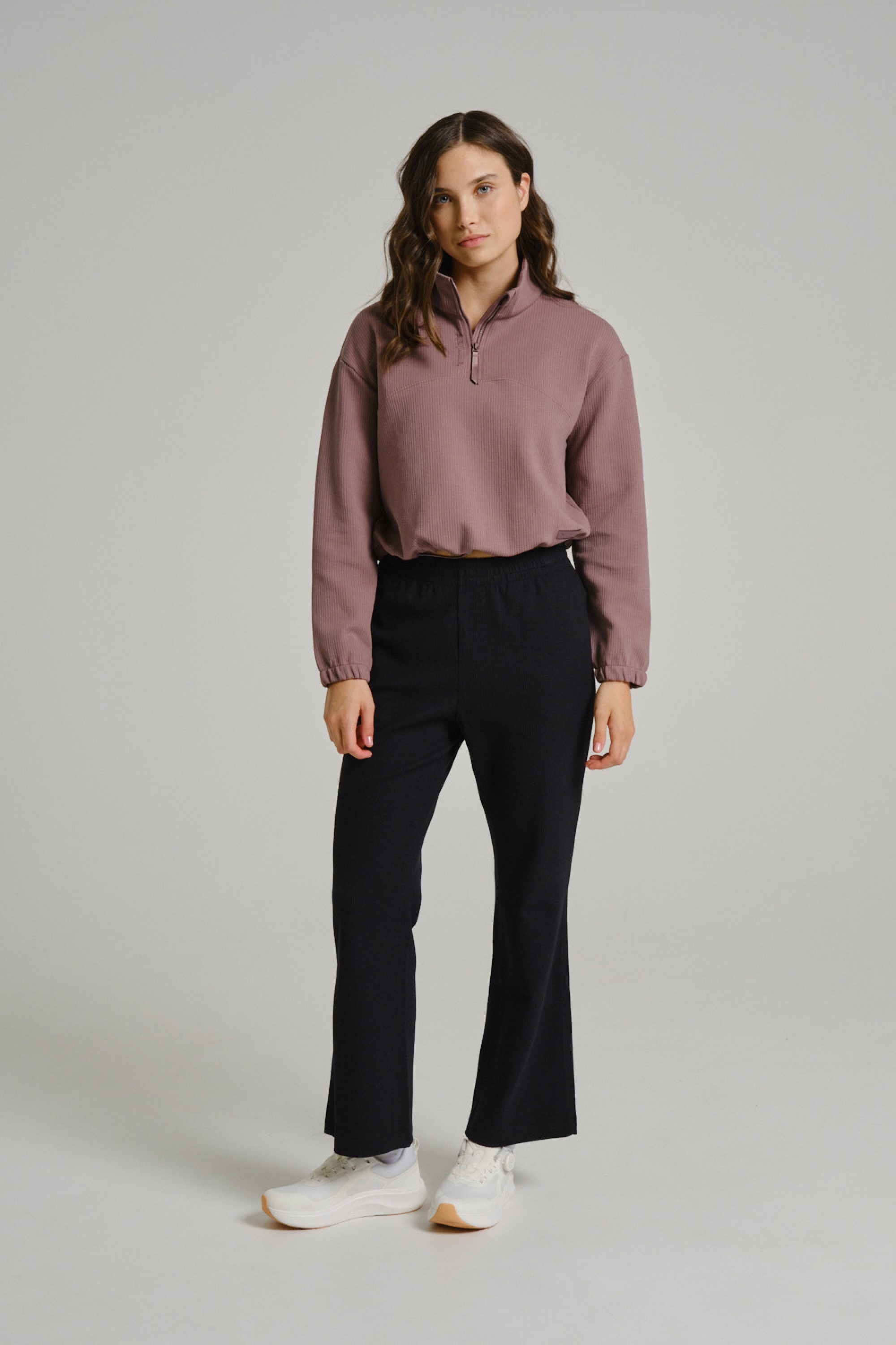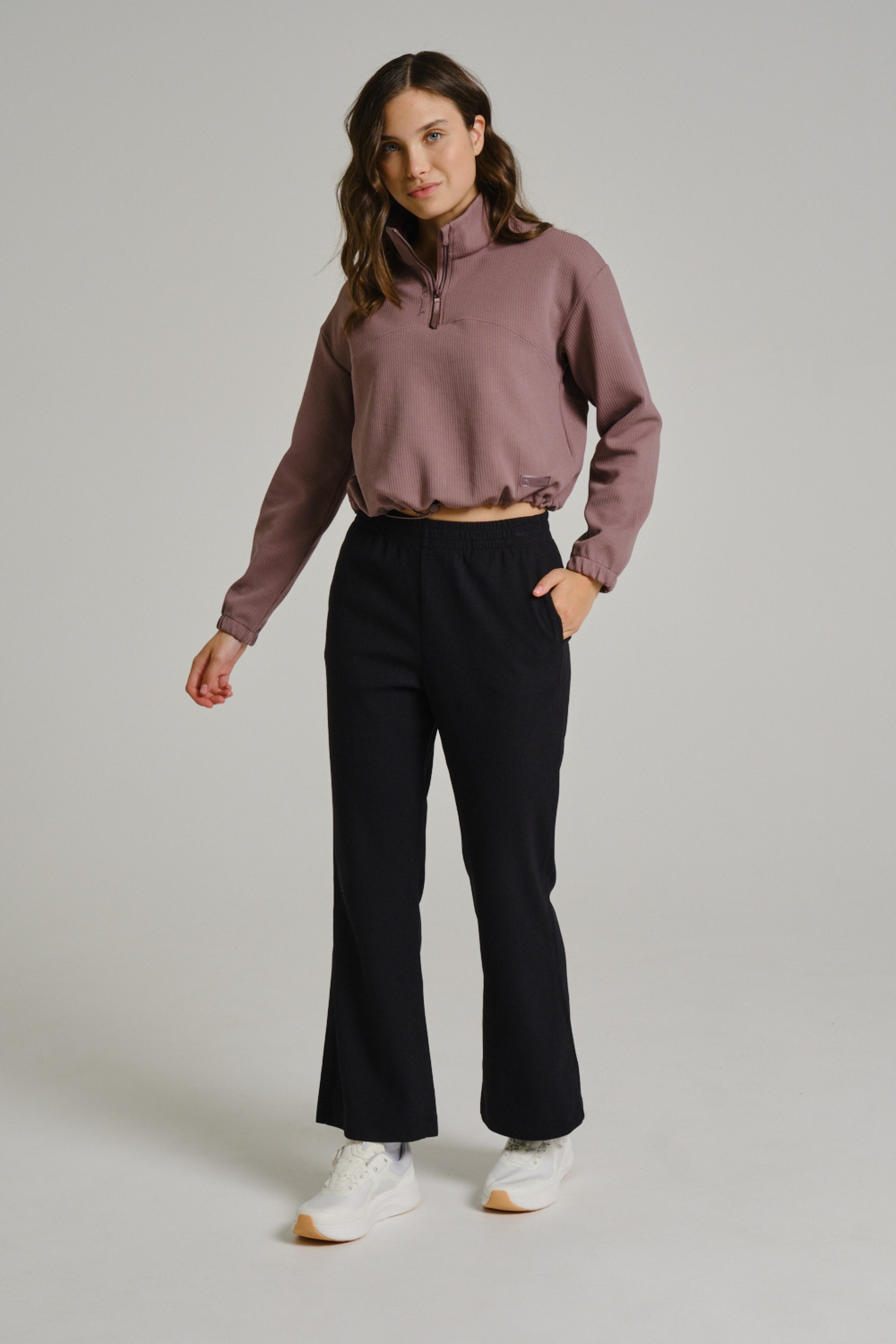 Нежный пыльно-розовый оттенок добавляет образу лаконичности, сочетаясь с базовыми цветами коллекции. Лаконичный дизайн без принтов подчеркивает современную спортивную эстетику.