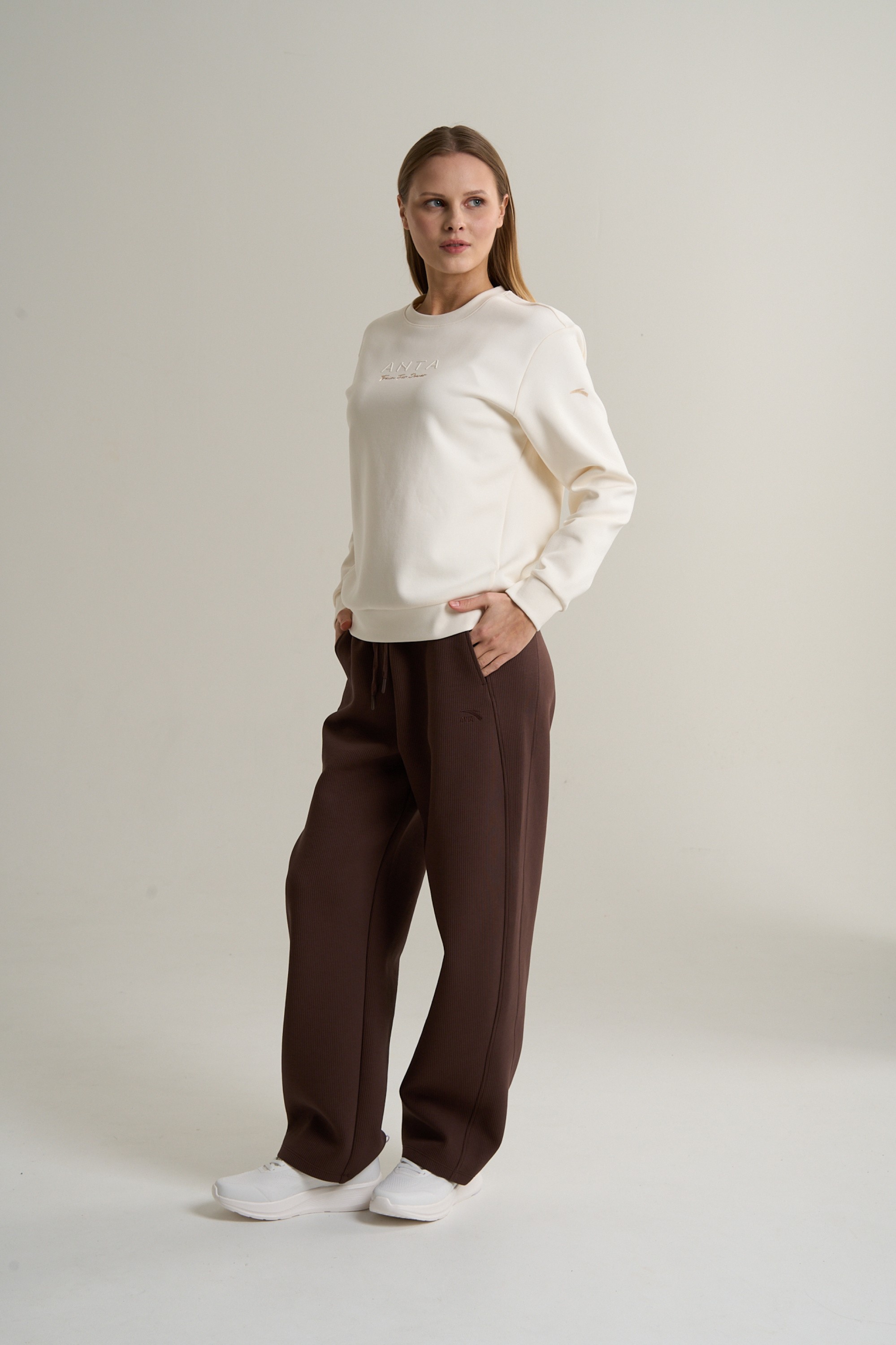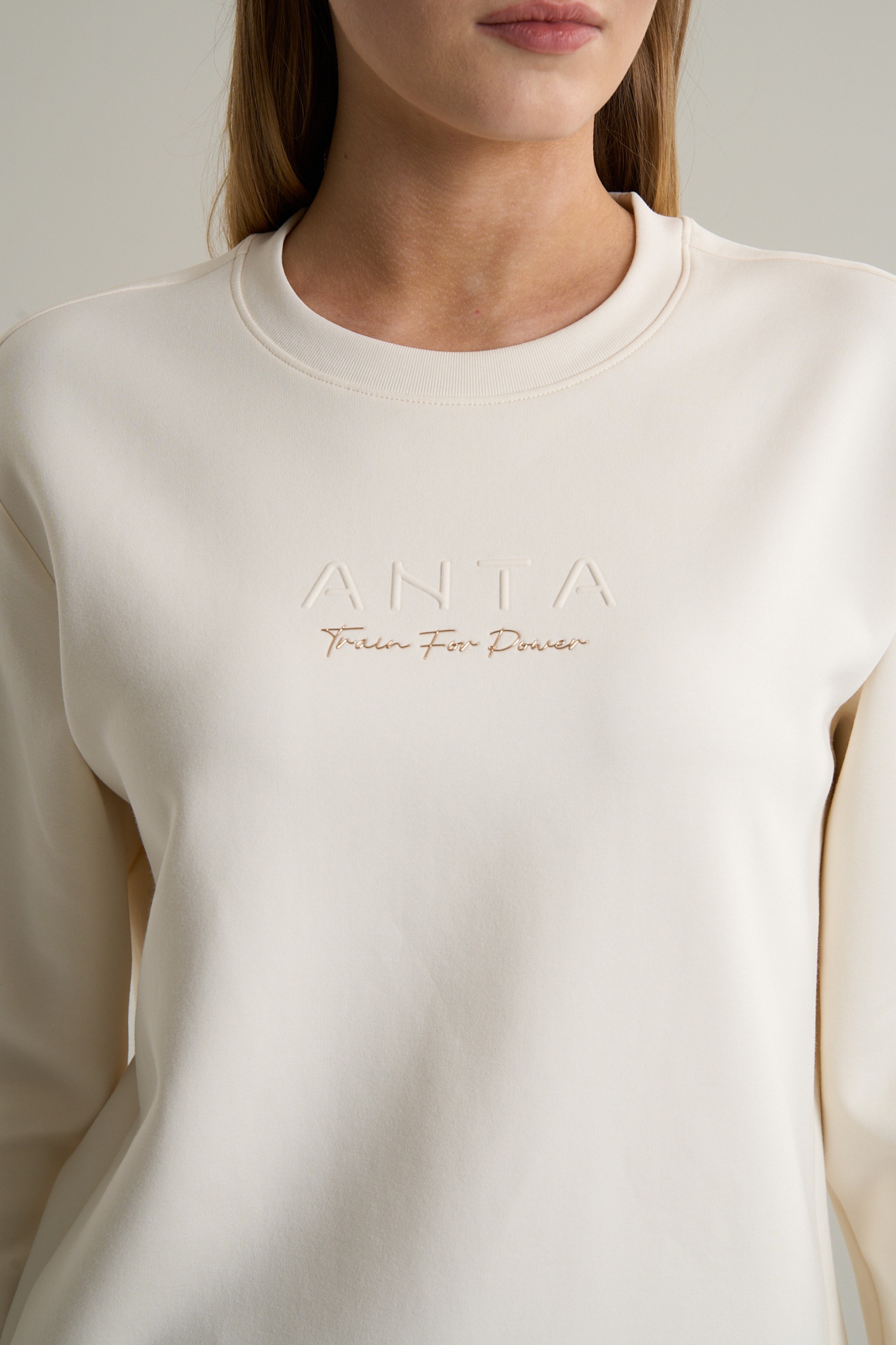 Дизайн свитшота воплощает осознанный минимализм и функциональную эстетику. На груди расположено тисненое название бренда ANTA, подчеркивающее премиальное качество. Ниже выполнено высокотехнологичное нанесение с мотивирующим девизом TRAIN FOR POWER («Тренируйся для силы»), который служит стильным акцентом и ежедневным мотивирующим напоминанием. Приятный и утилитарный светло-серый цвет универсален и создает спокойную, стильную основу, которая легко сочетается с брюками, леггинсами или джинсами для создания цельных образов на каждый день.