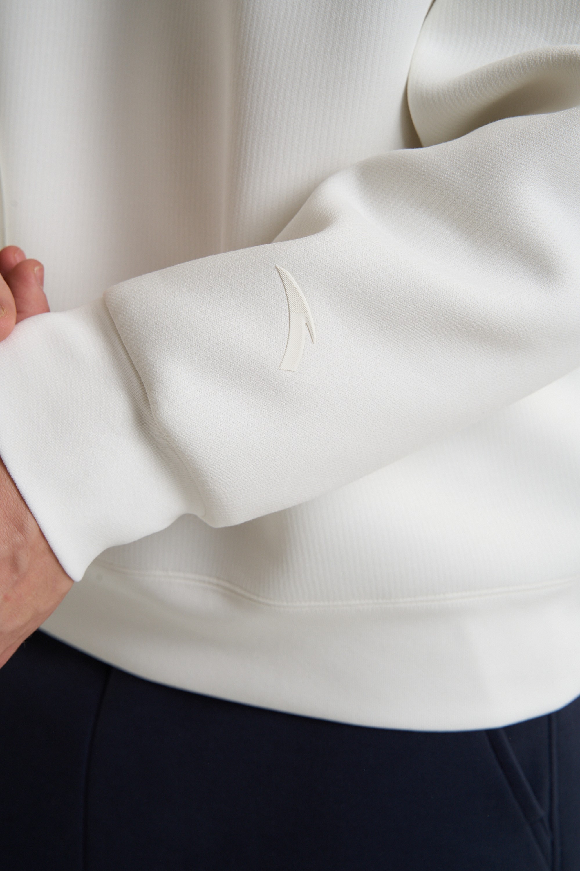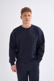 Свитшот изготовлен из высокоплотного трикотажного полотна премиального качества, где полиэстер (53%) обеспечивает прочность и сохранение формы, хлопок (37%) дарит натуральную мягкость и комфорт, а значительная доля спандекса (10%) гарантирует идеальную эластичность и полную свободу движений. Технология A-STRETCH SHAPE обеспечивает долговечность модели, позволяя трикотажу сохранять свой первоначальный крой и не деформироваться даже после множества стирок.