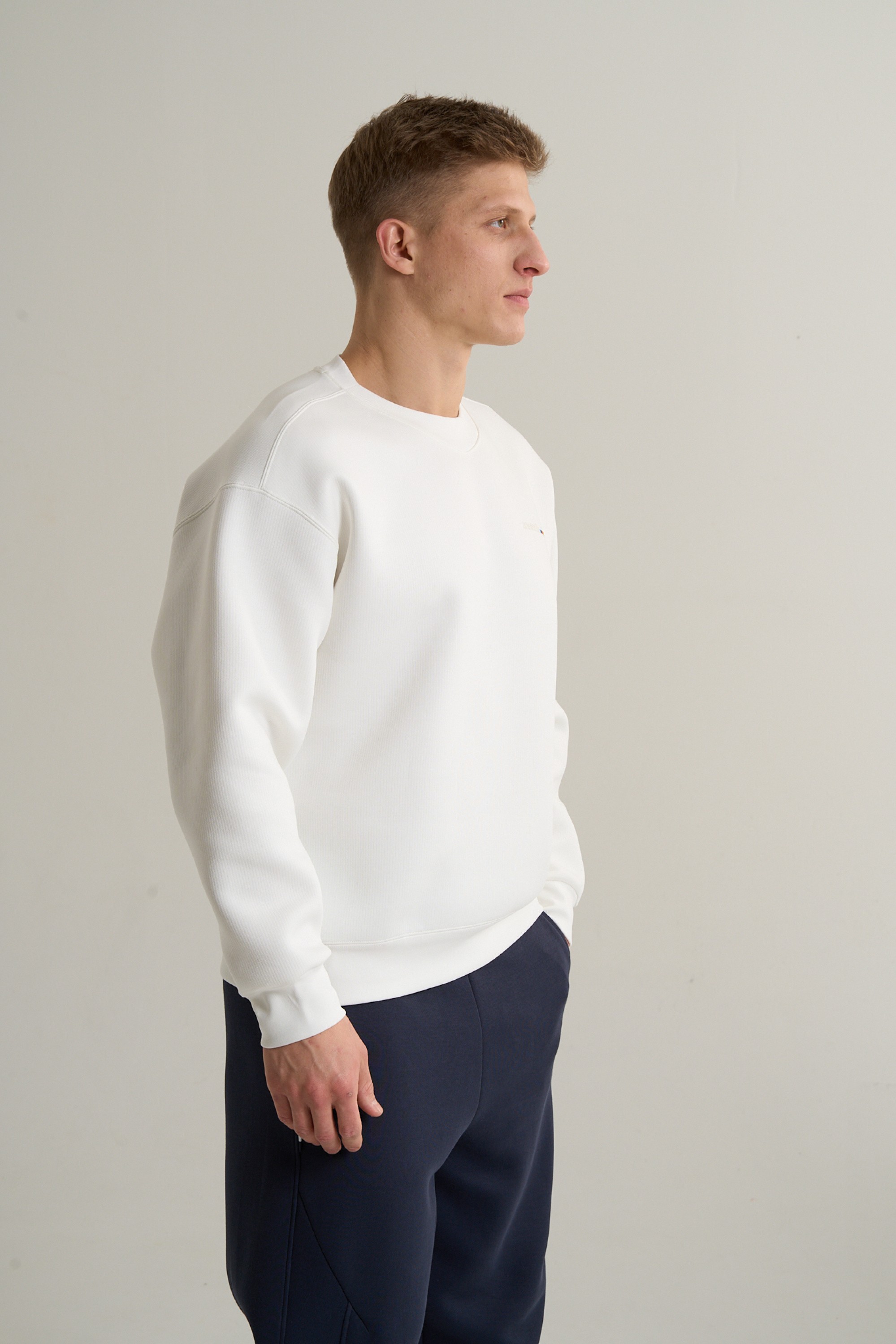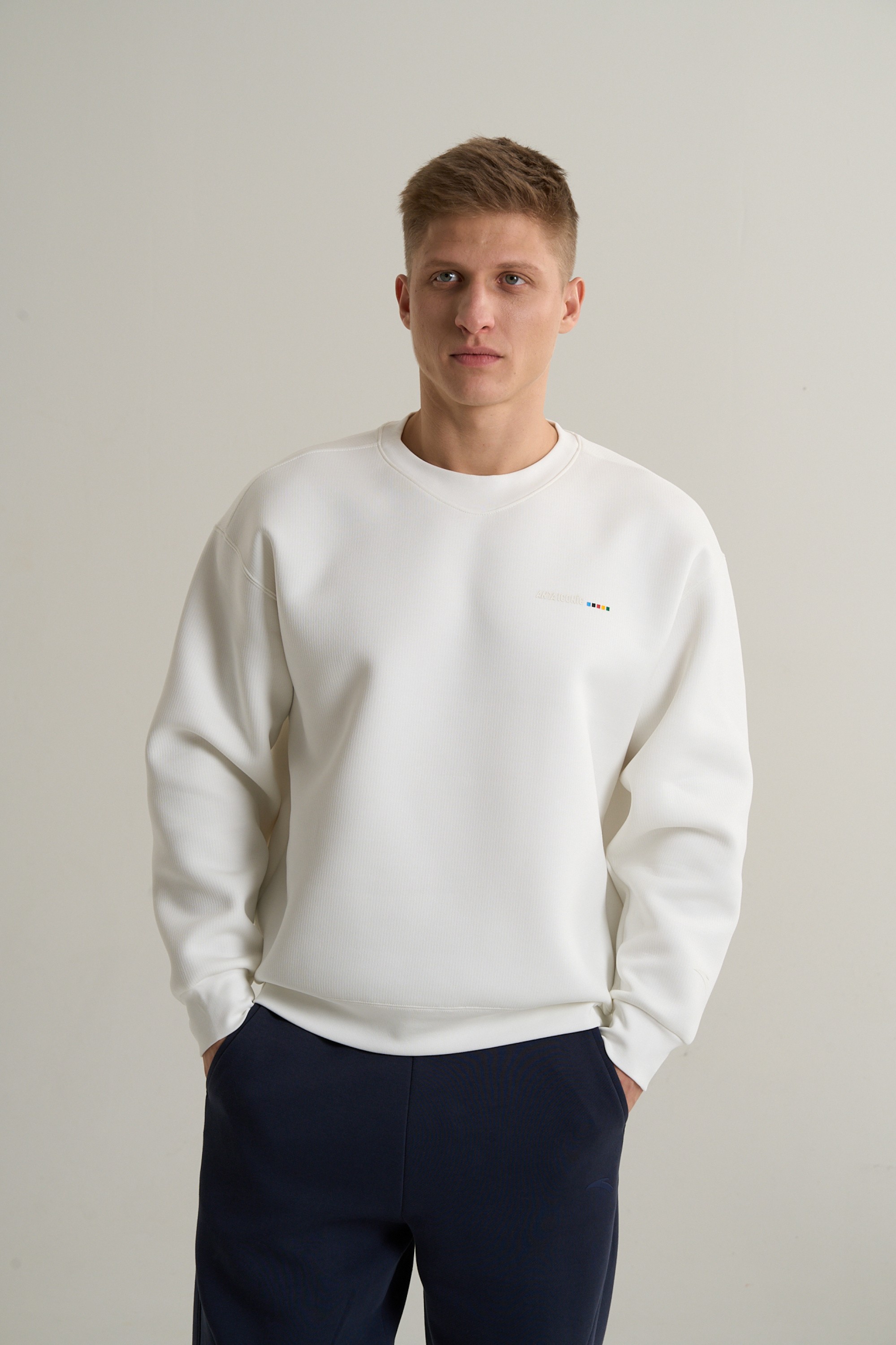 Мужской свитшот FEARLESS TRIP из коллекции ANTA ICONIC – это премиальное решение повседневного стиля, в котором расслабленная эстетика встречается с вдохновляющим олимпийским посылом. Модель свободного кроя Relaxed Fit из плотного и мягкого трикотажа цвета слоновой кости создает выразительный образ, напоминающей о красоте зимних видов спорта.
