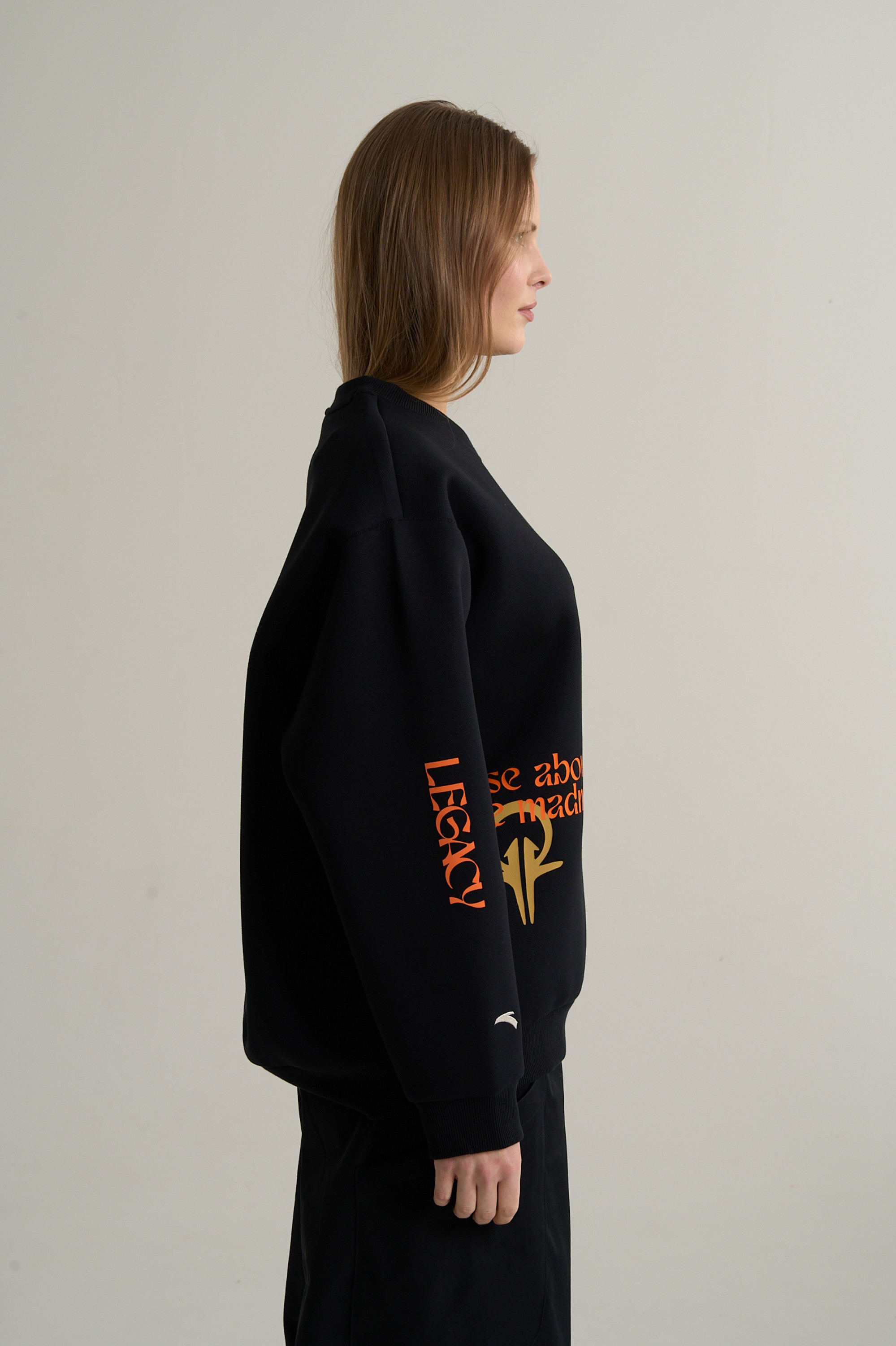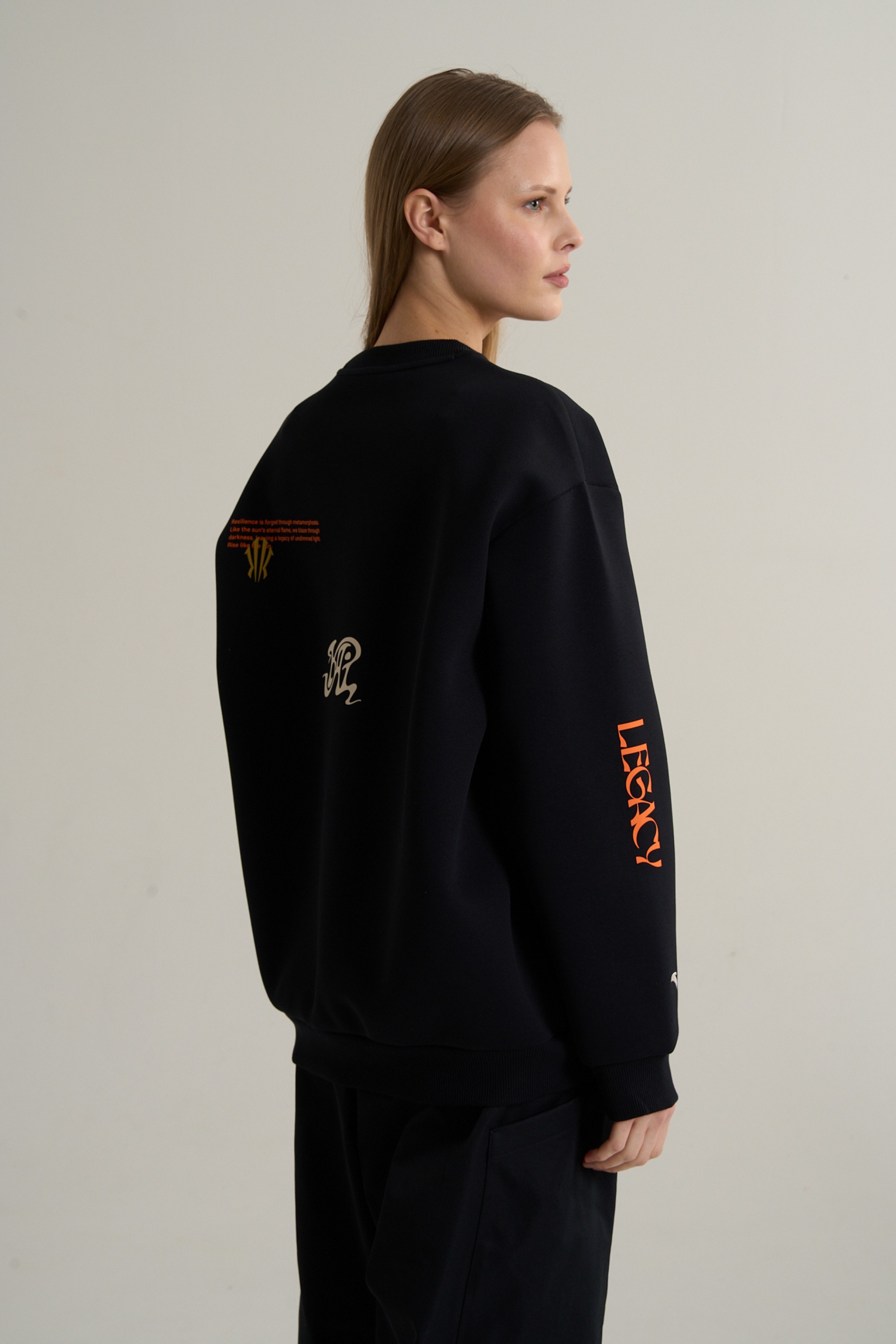 Унисекс свитшот Legacy из коллекции KAI – это стильное и интеллектуальное воплощение современного баскетбольного стиля. Модель свободного кроя Relaxed Fit из черного трикотажа предлагает комфорт и визуальное повествование, вдохновленное игрой и философией Кайри Ирвинга.