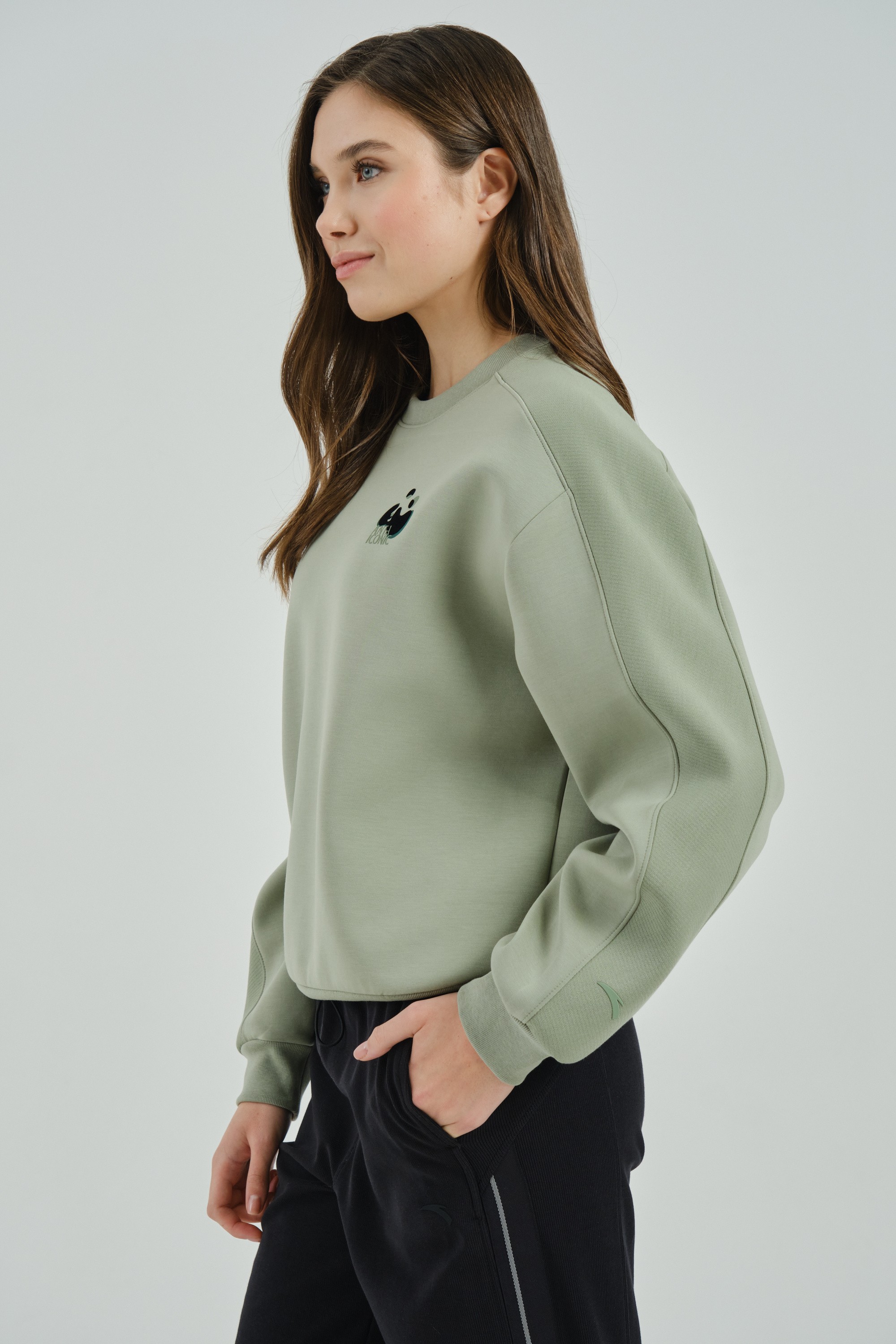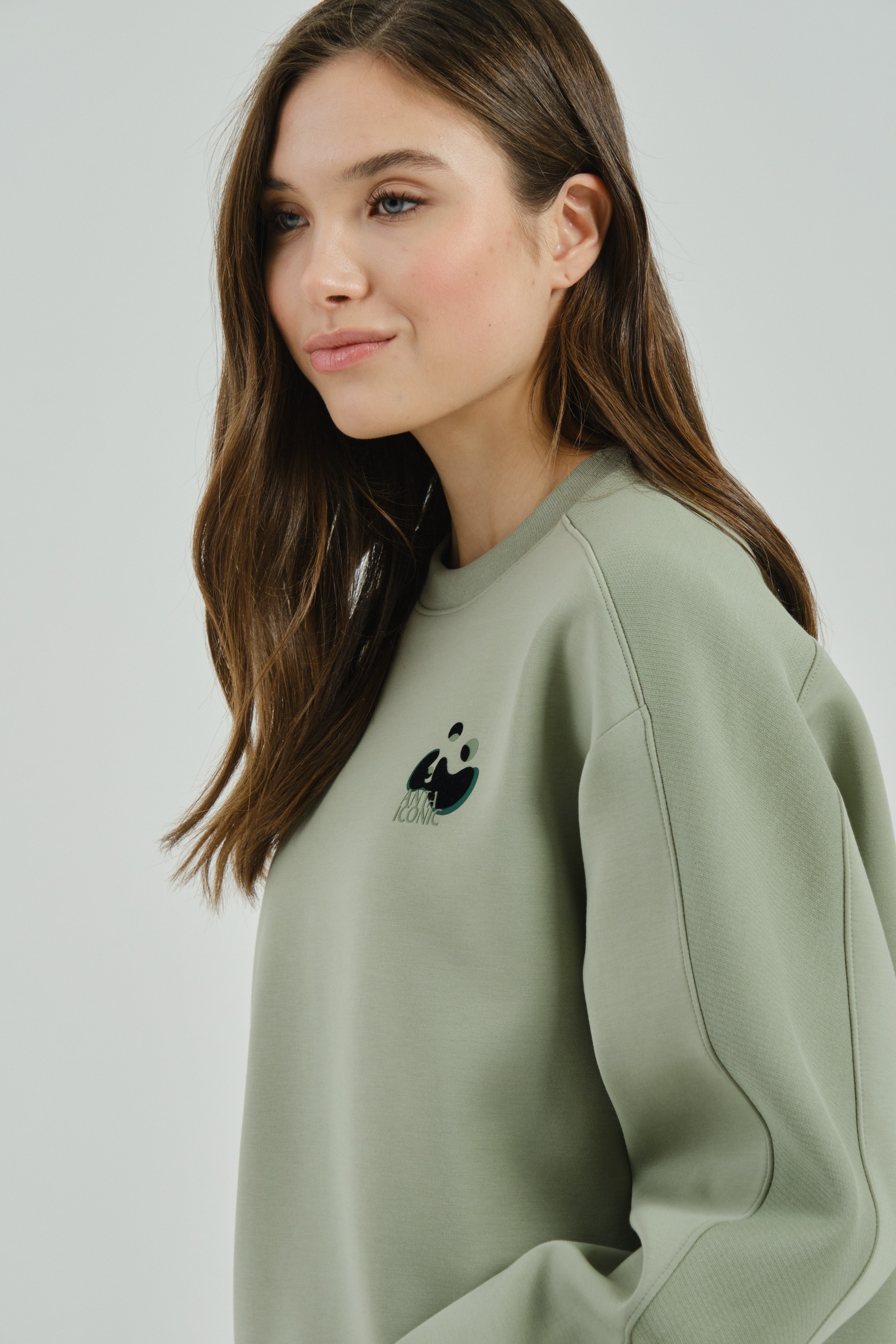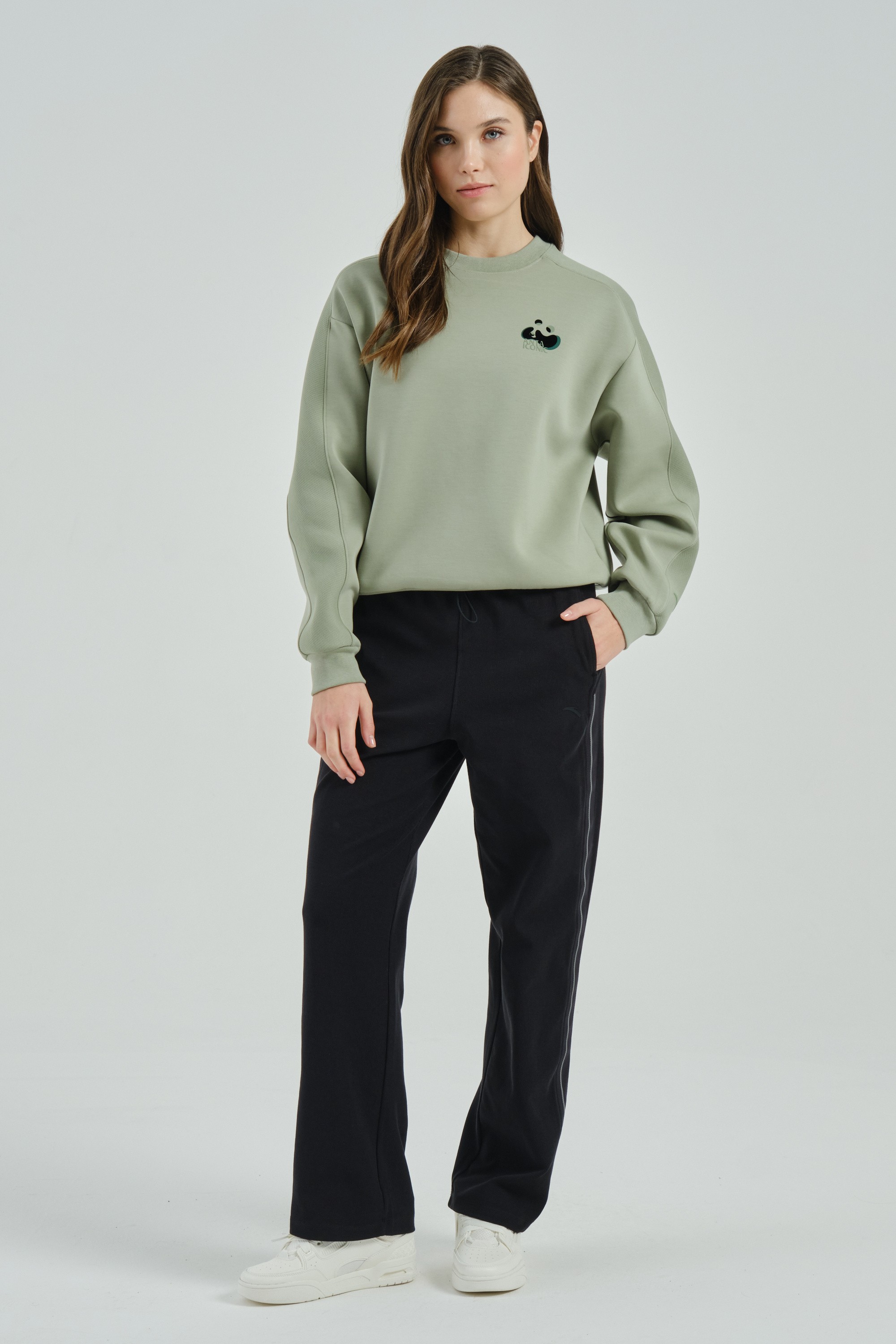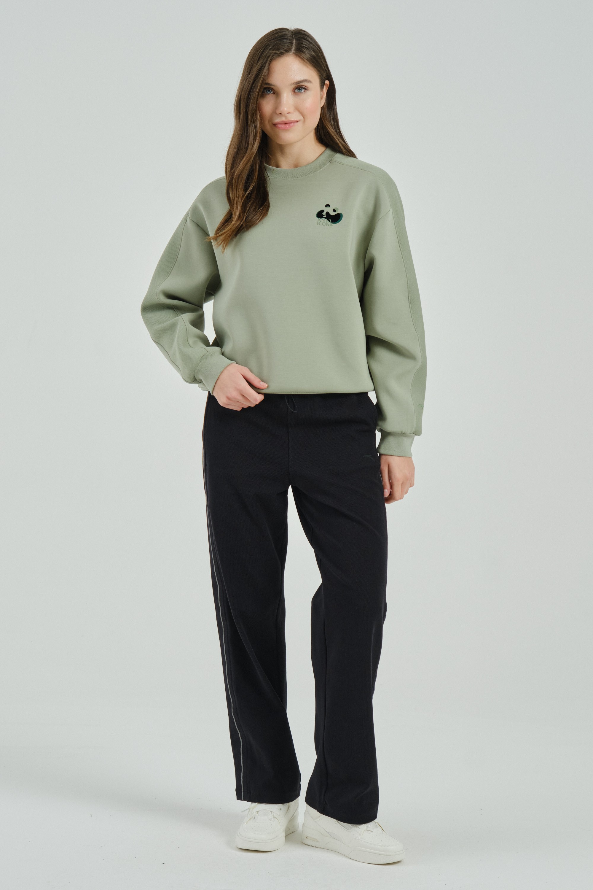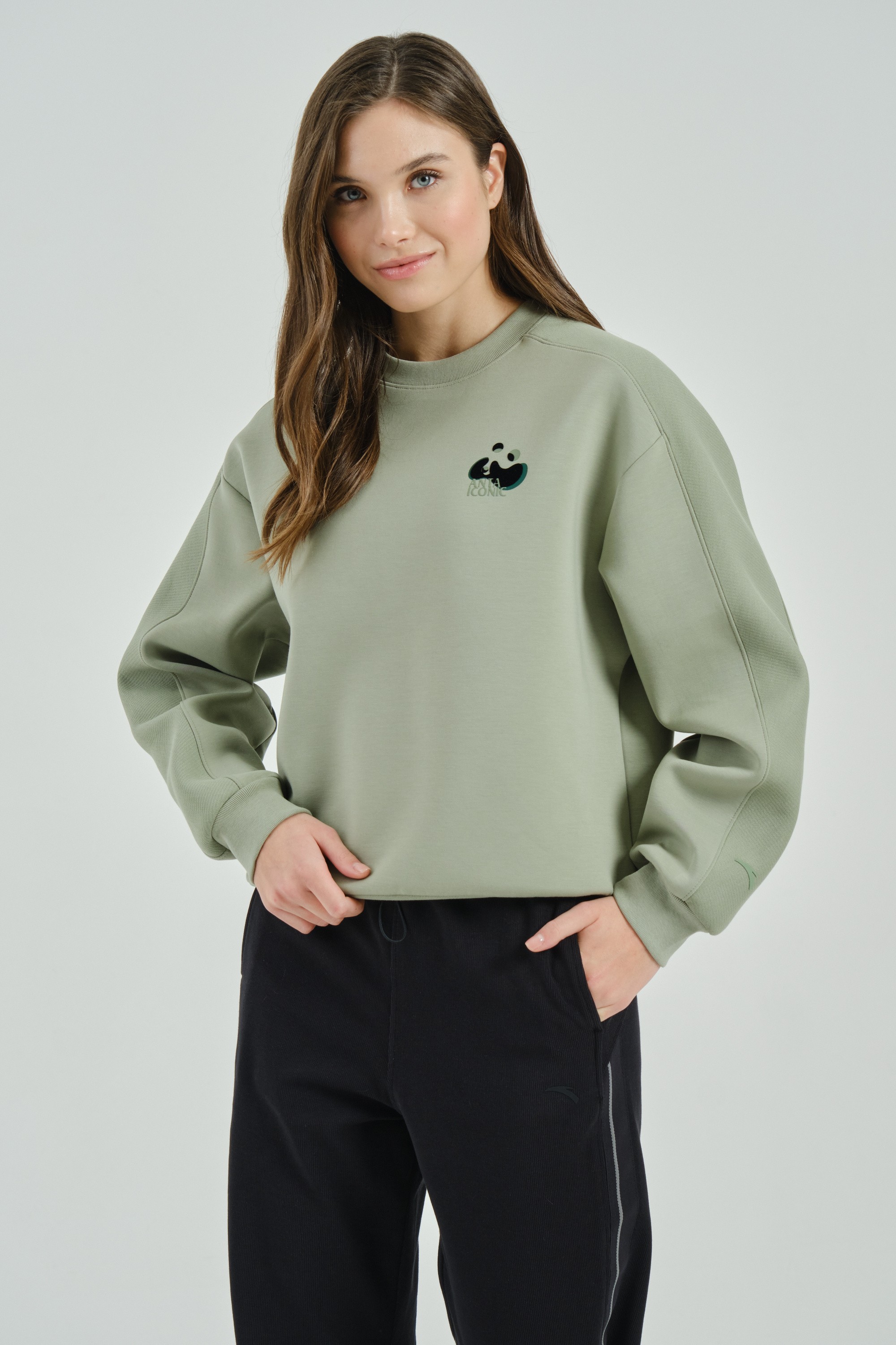Женский свитшот свободного кроя из премиальной коллекции ANTA ICONIC, сочетающий в себе удобство и стиль.
