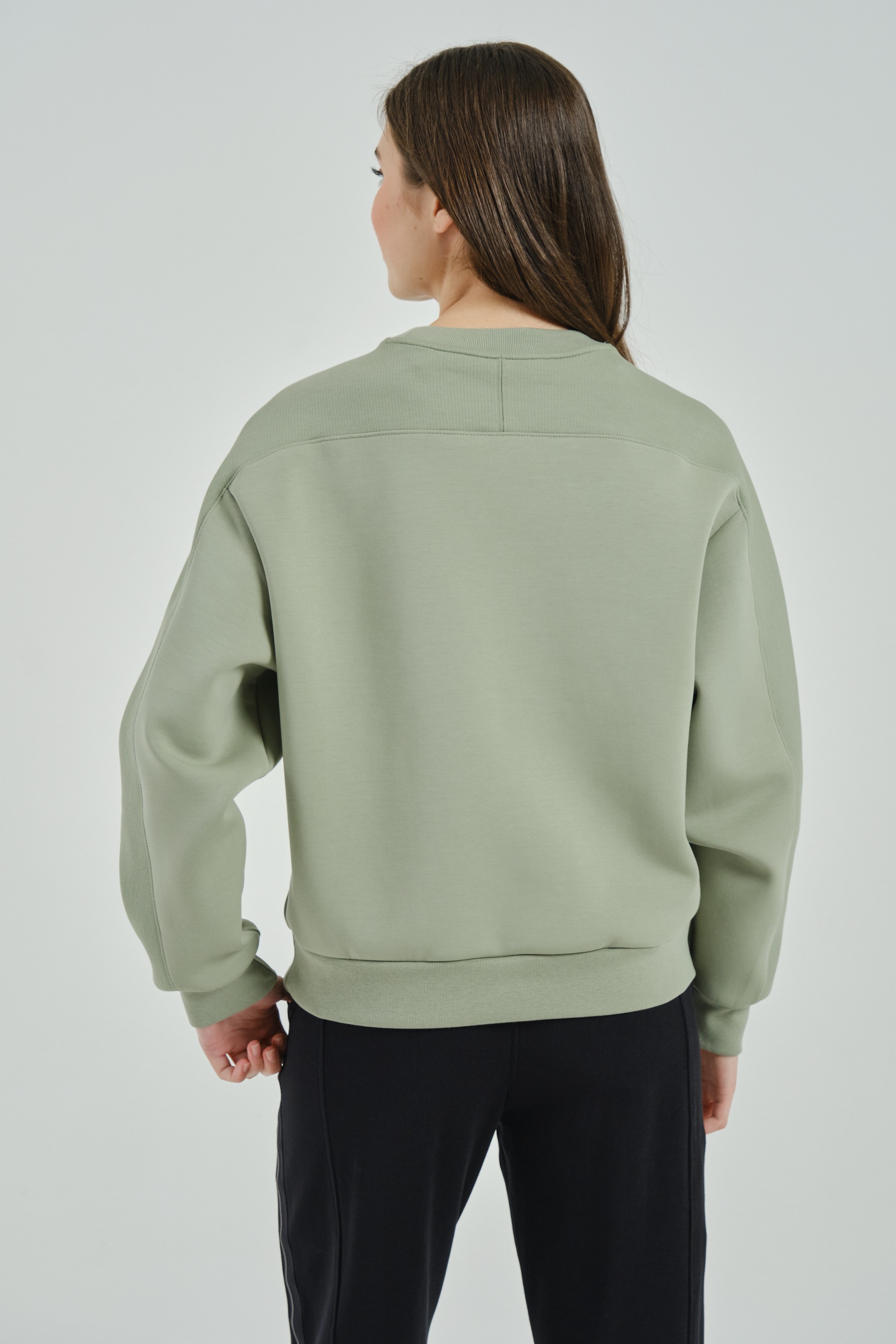 Широкие эластичные манжеты и подол делают свитшот более комфортным.